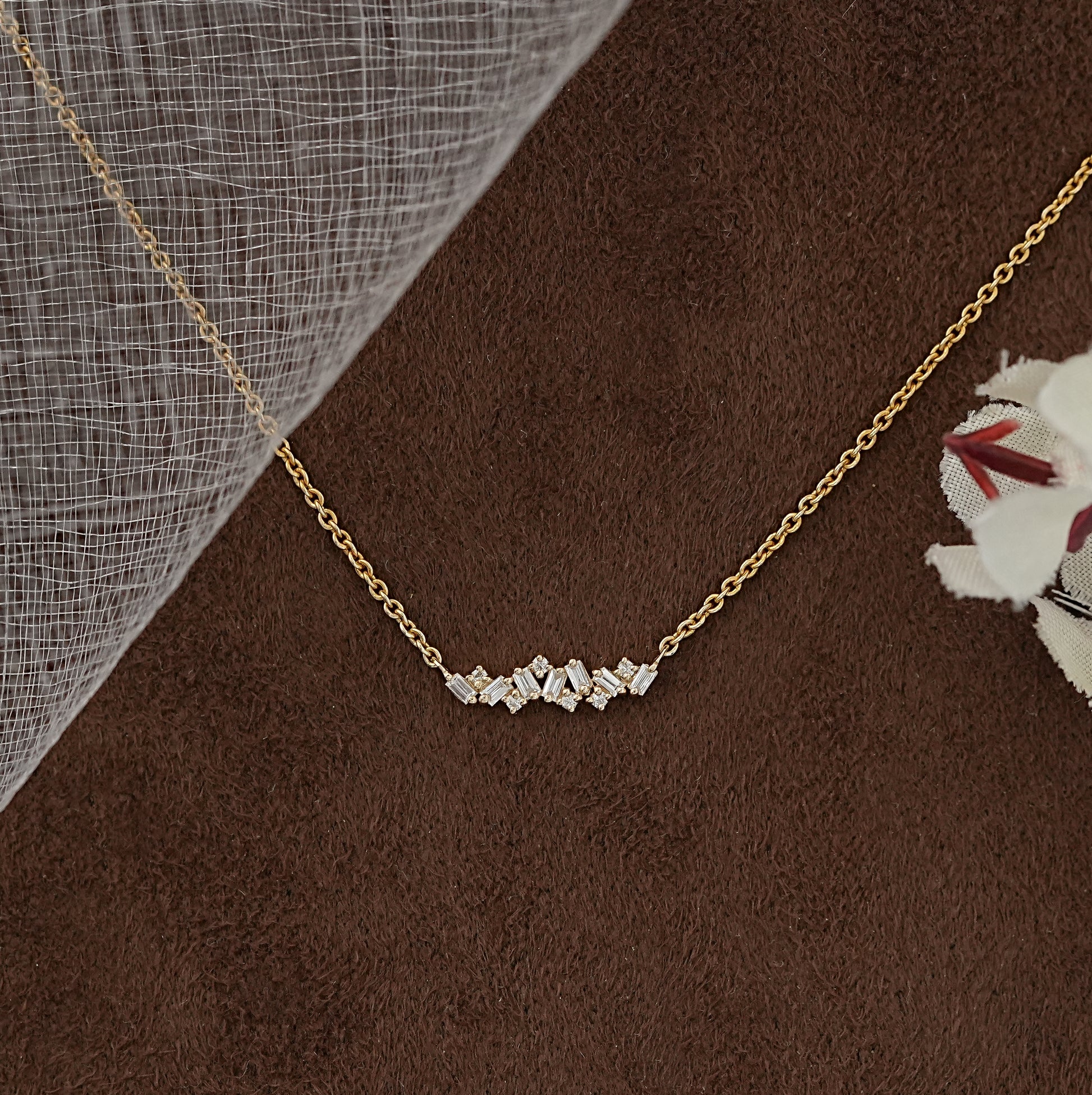 Baguette And Round Cut Lab Diamond Cluster Necklace