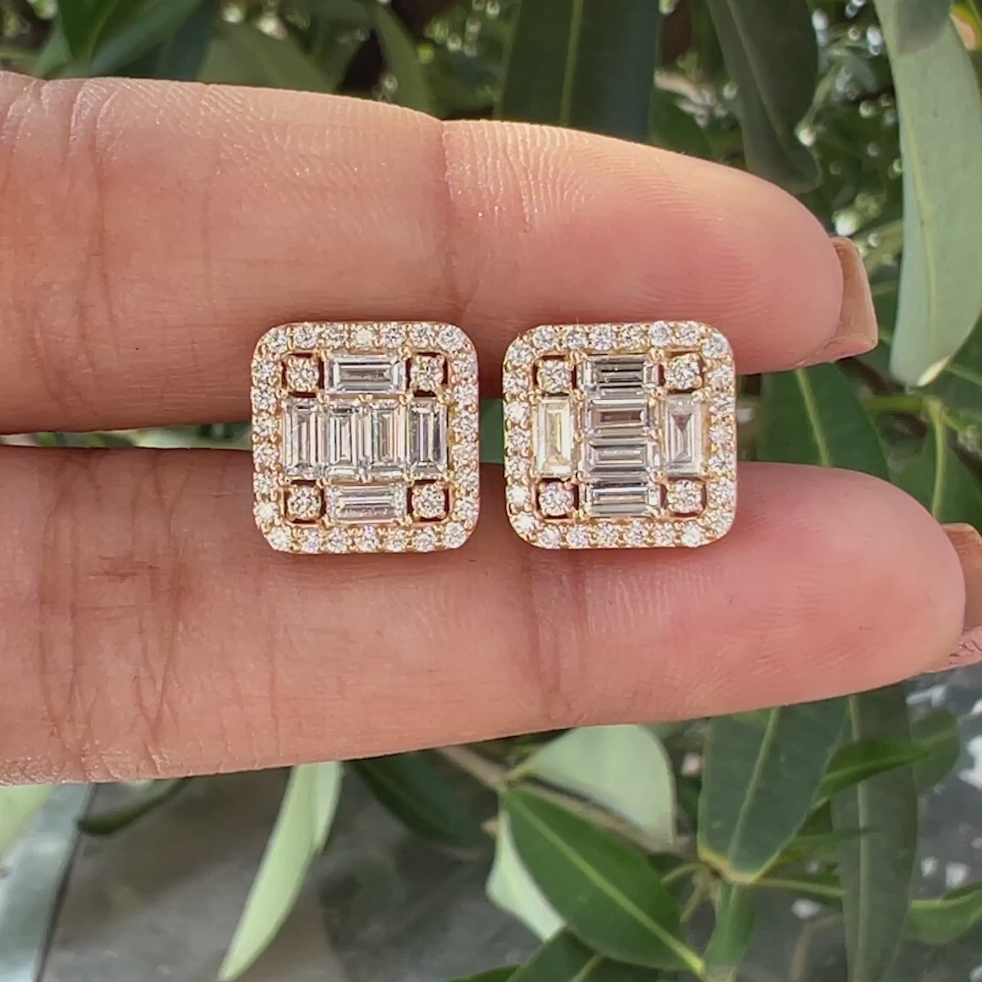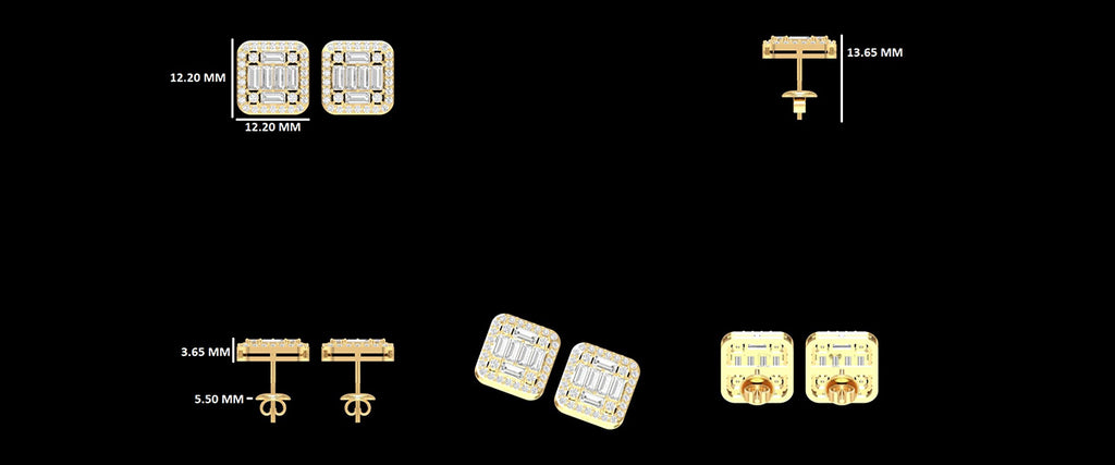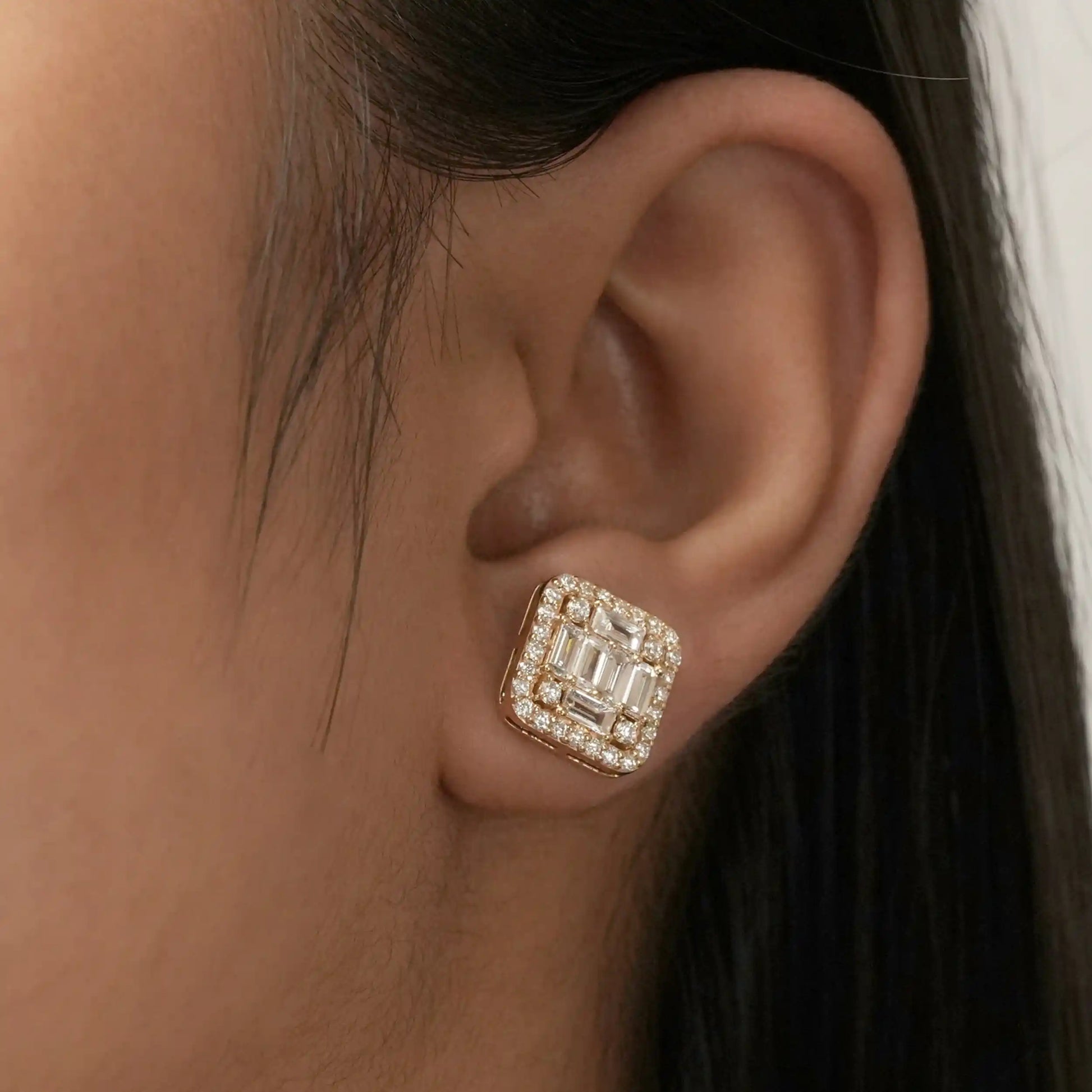 Baguette And Round Cut Lab Grown Diamond Earrings