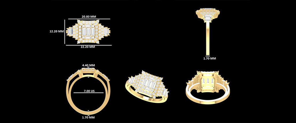 Baguette And Round Cut Lab Grown Diamond Engagement Ring