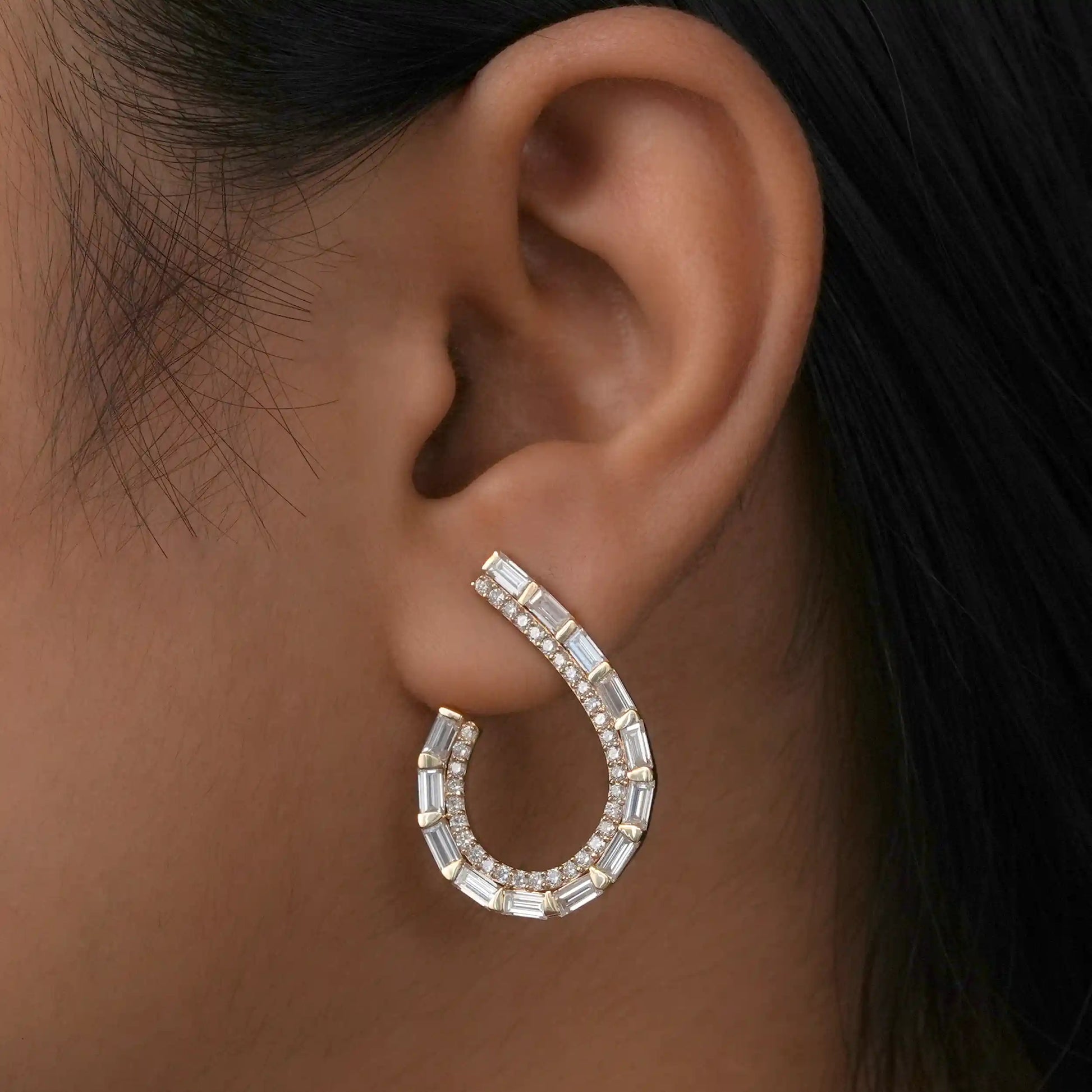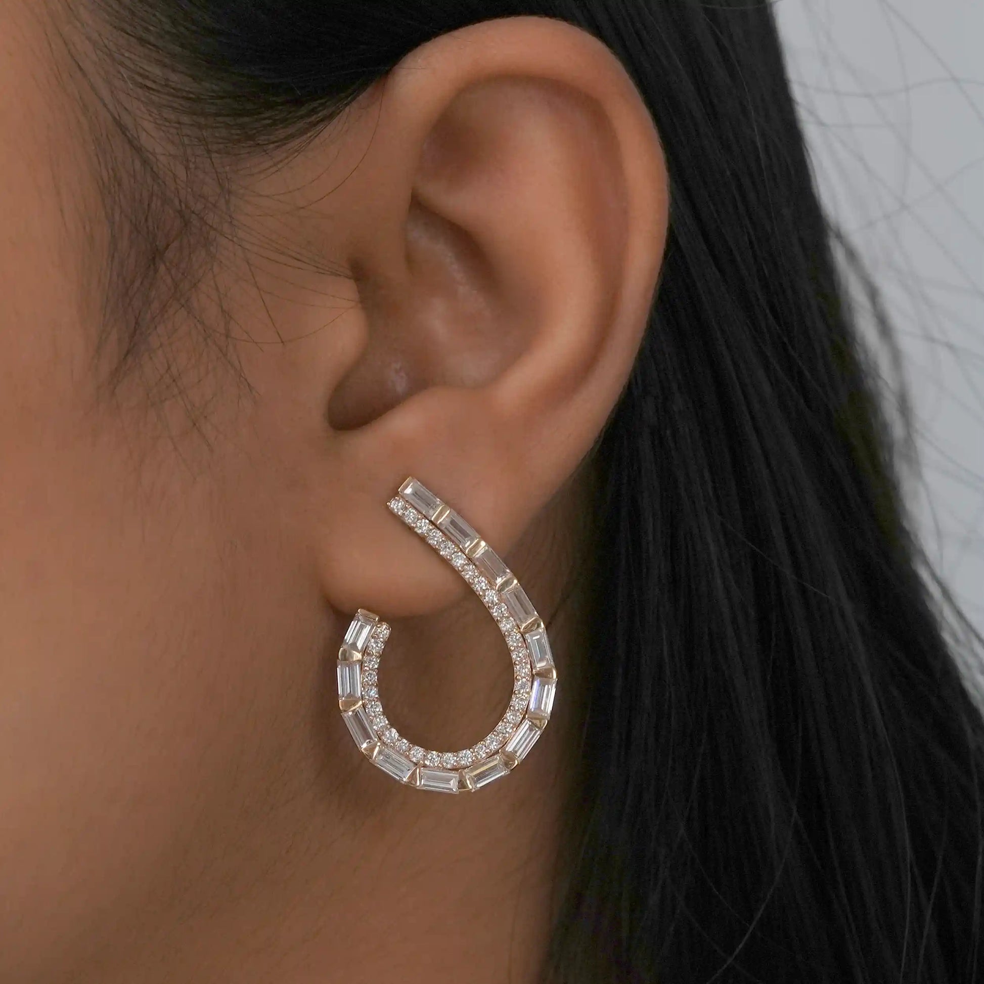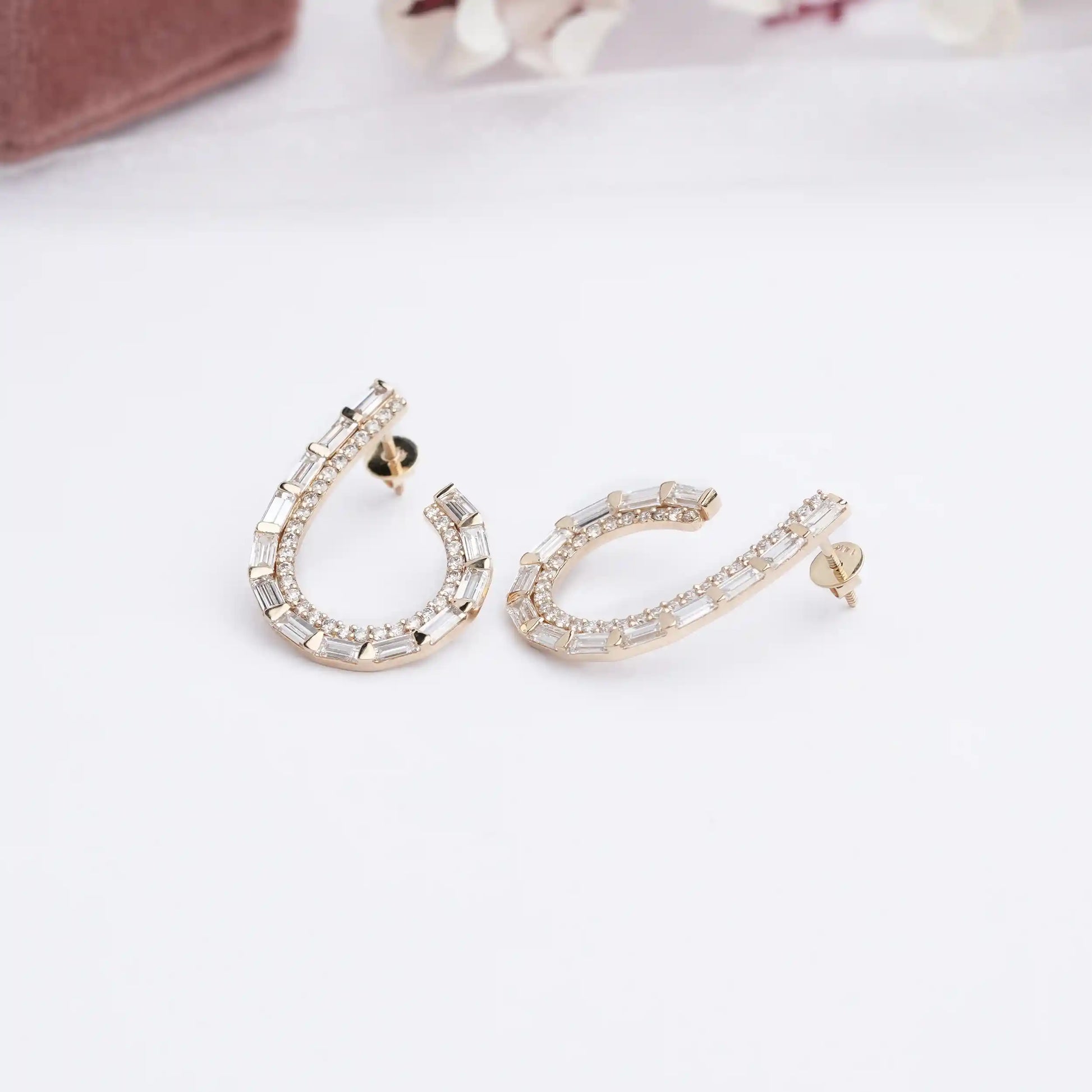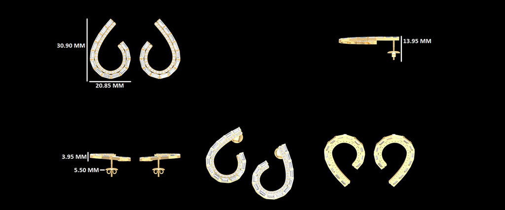Baguette Cut Lab Grown Diamond Screw Back Earrings