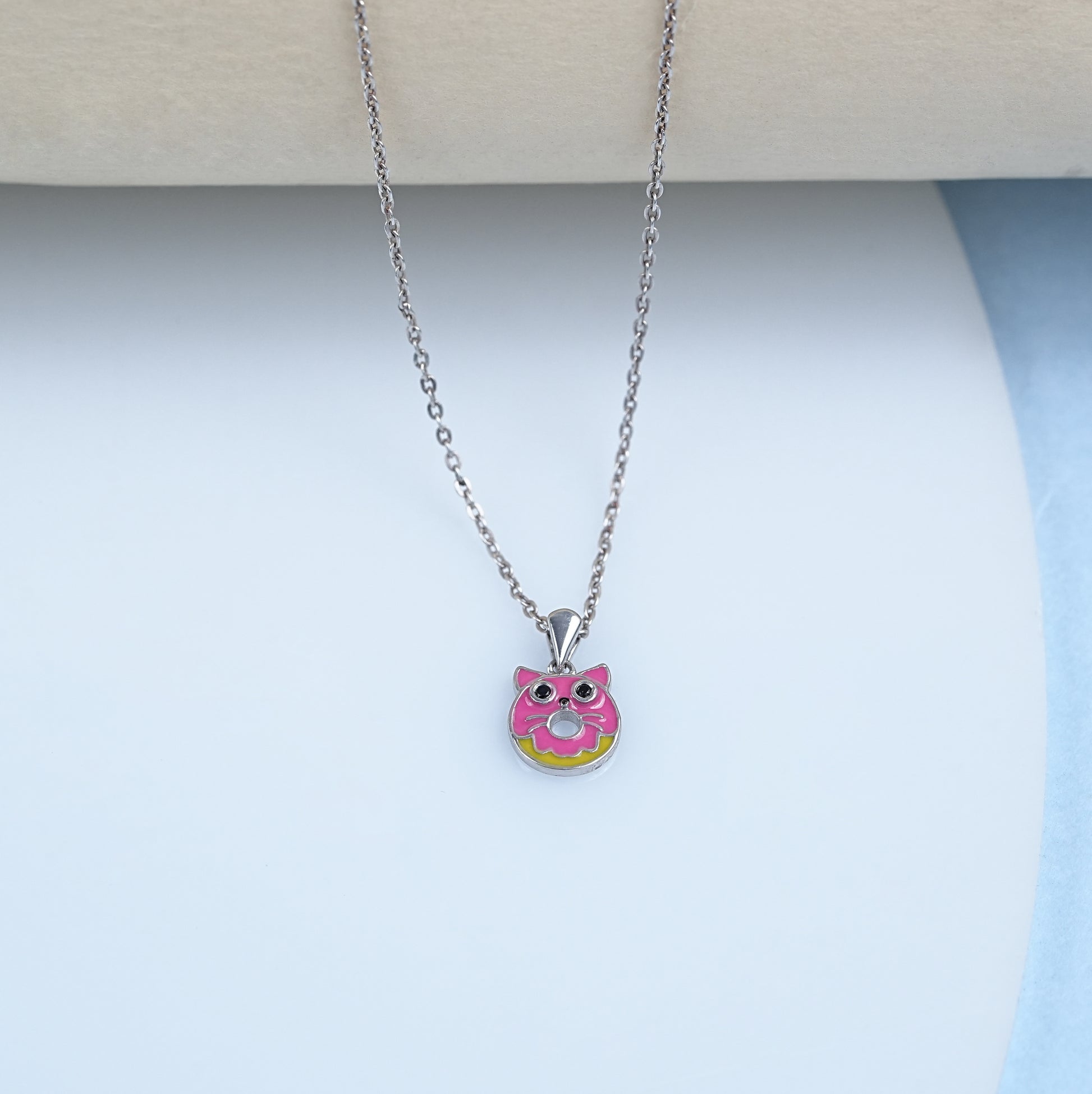Black Round Diamond Cat Face Shape Pendant
