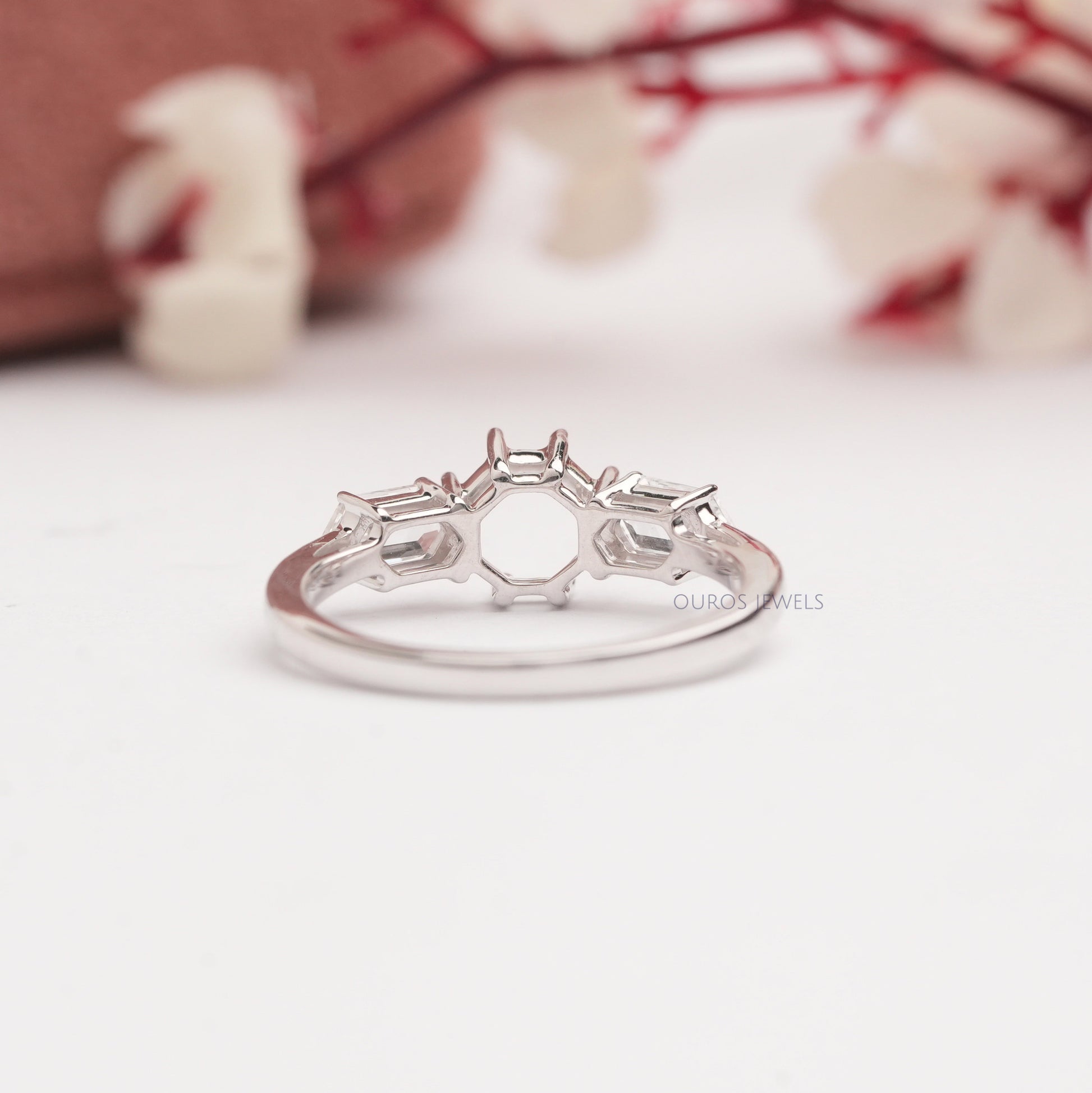 Elongated Hexagon Three Stone Mount Ring