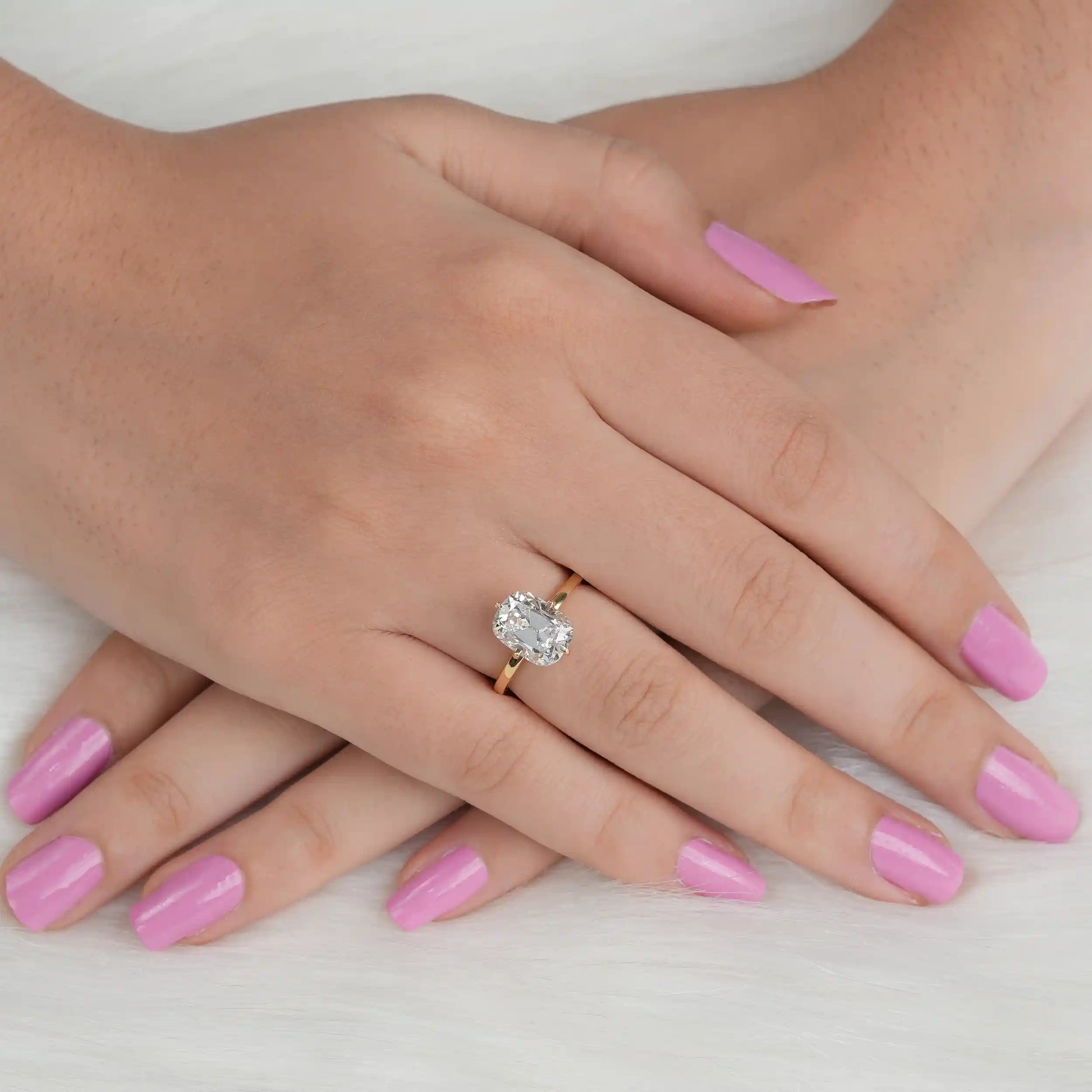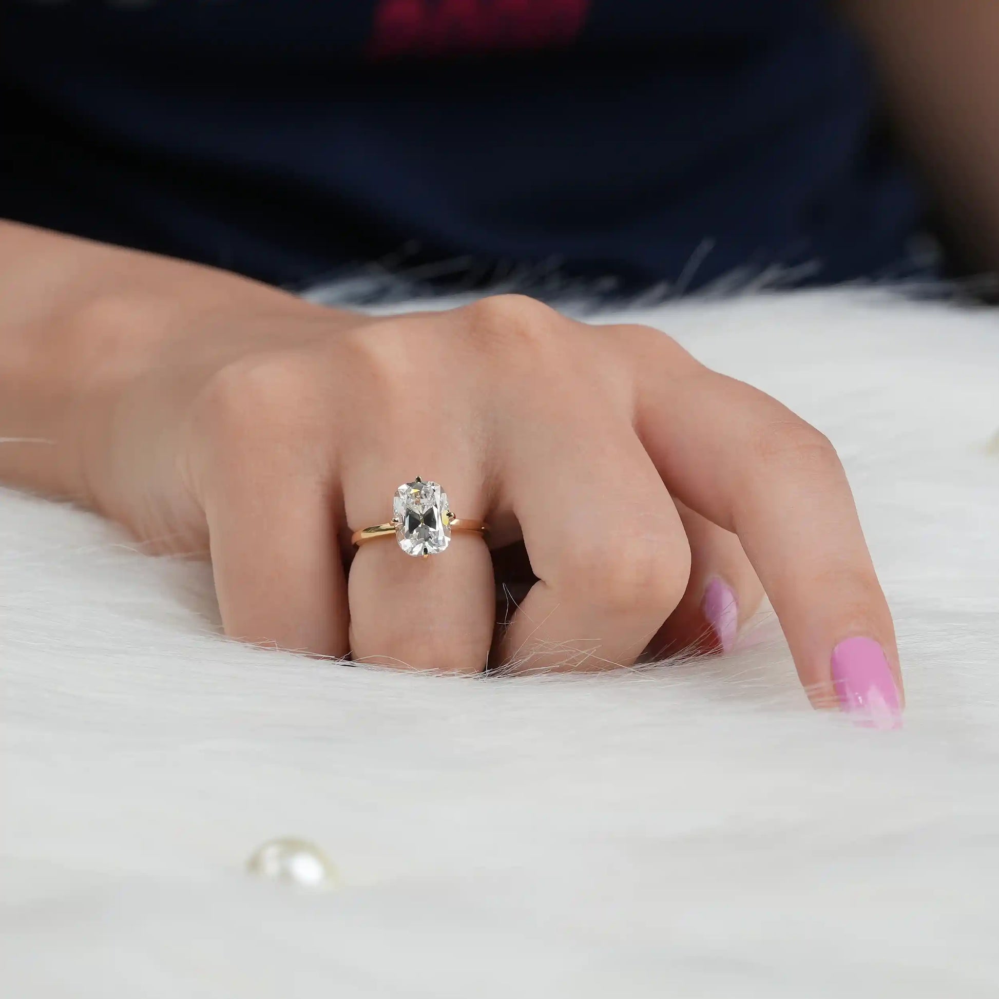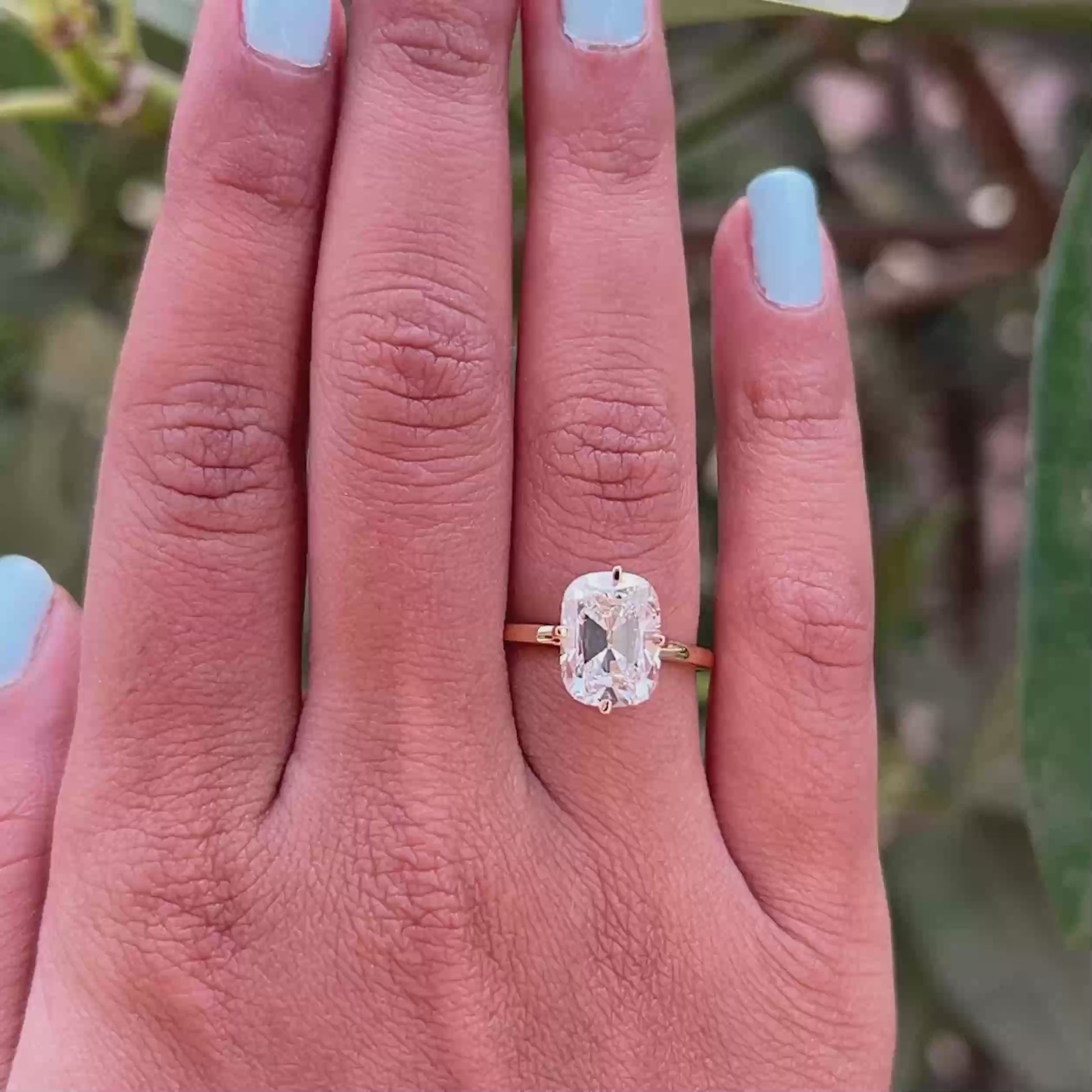 Elongated Old Mine Cushion Cut Solitaire Engagement Ring