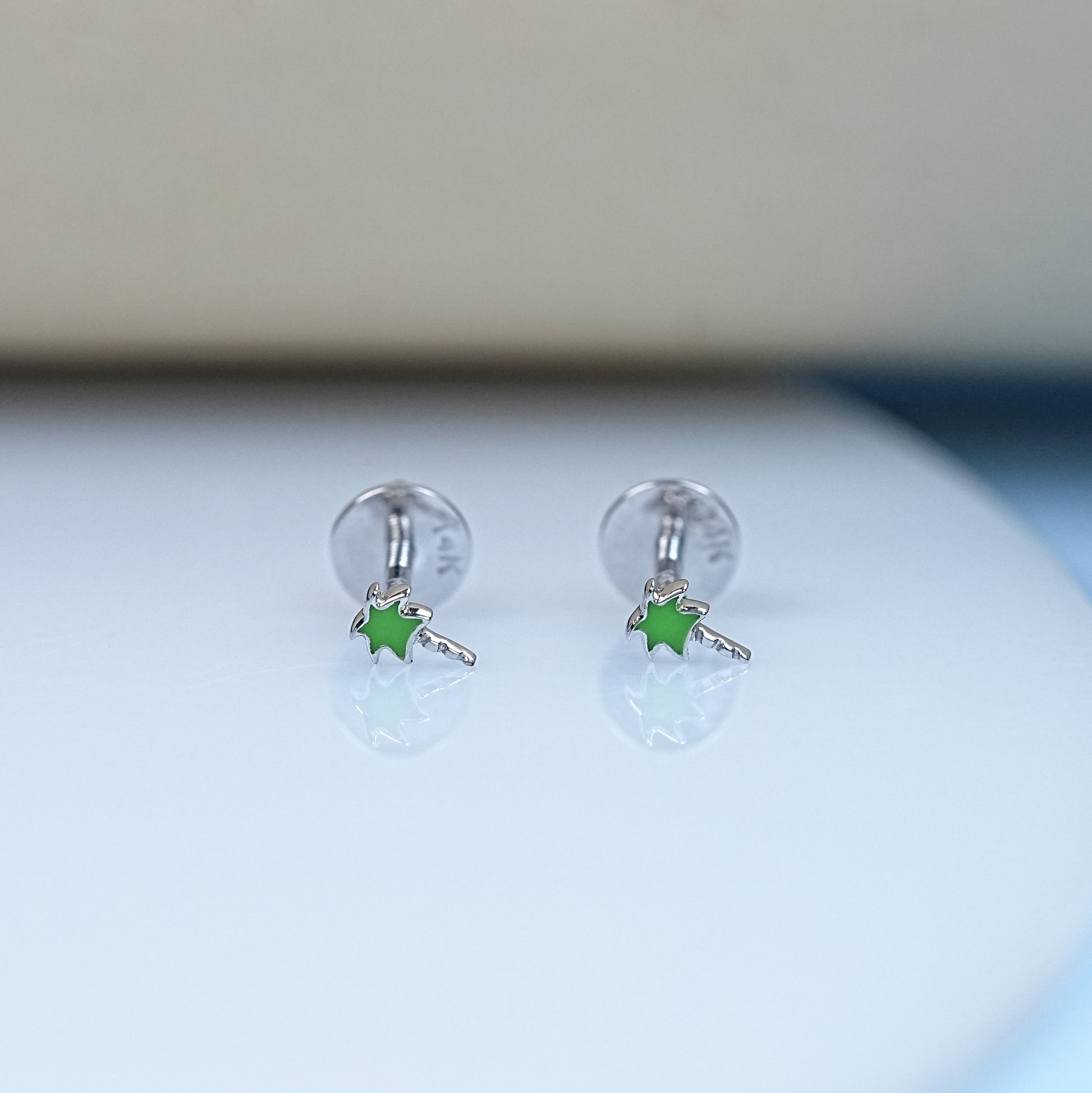 Enamel Tree Shape Cut Lab Grown Stud Earring