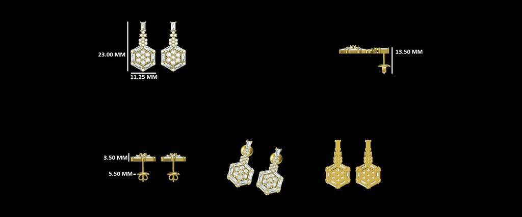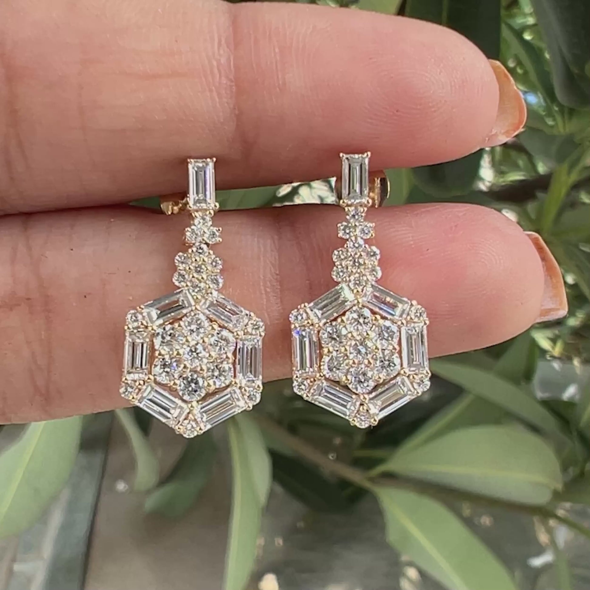 Flower Round Cut Halo Baguette Lab Diamond Earring