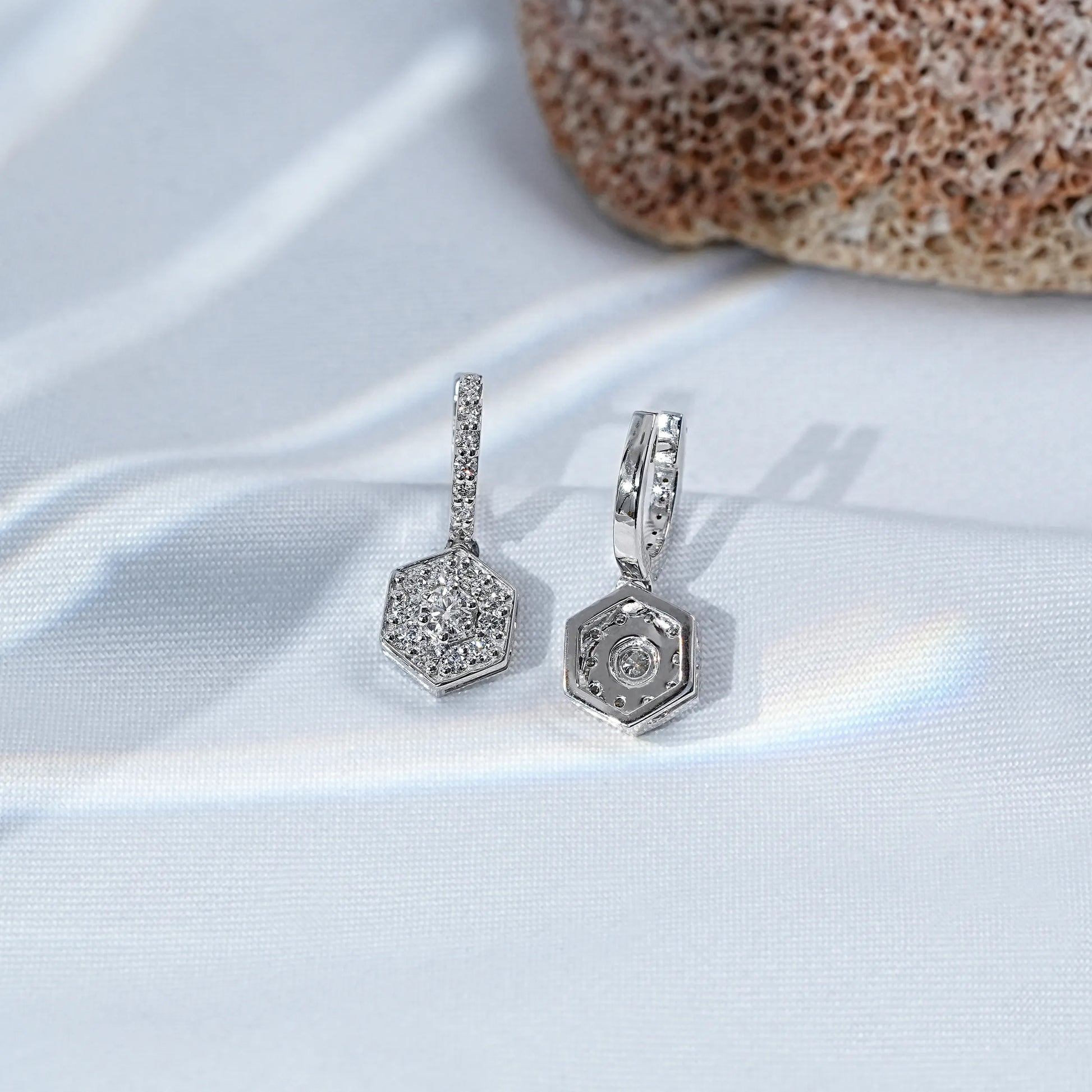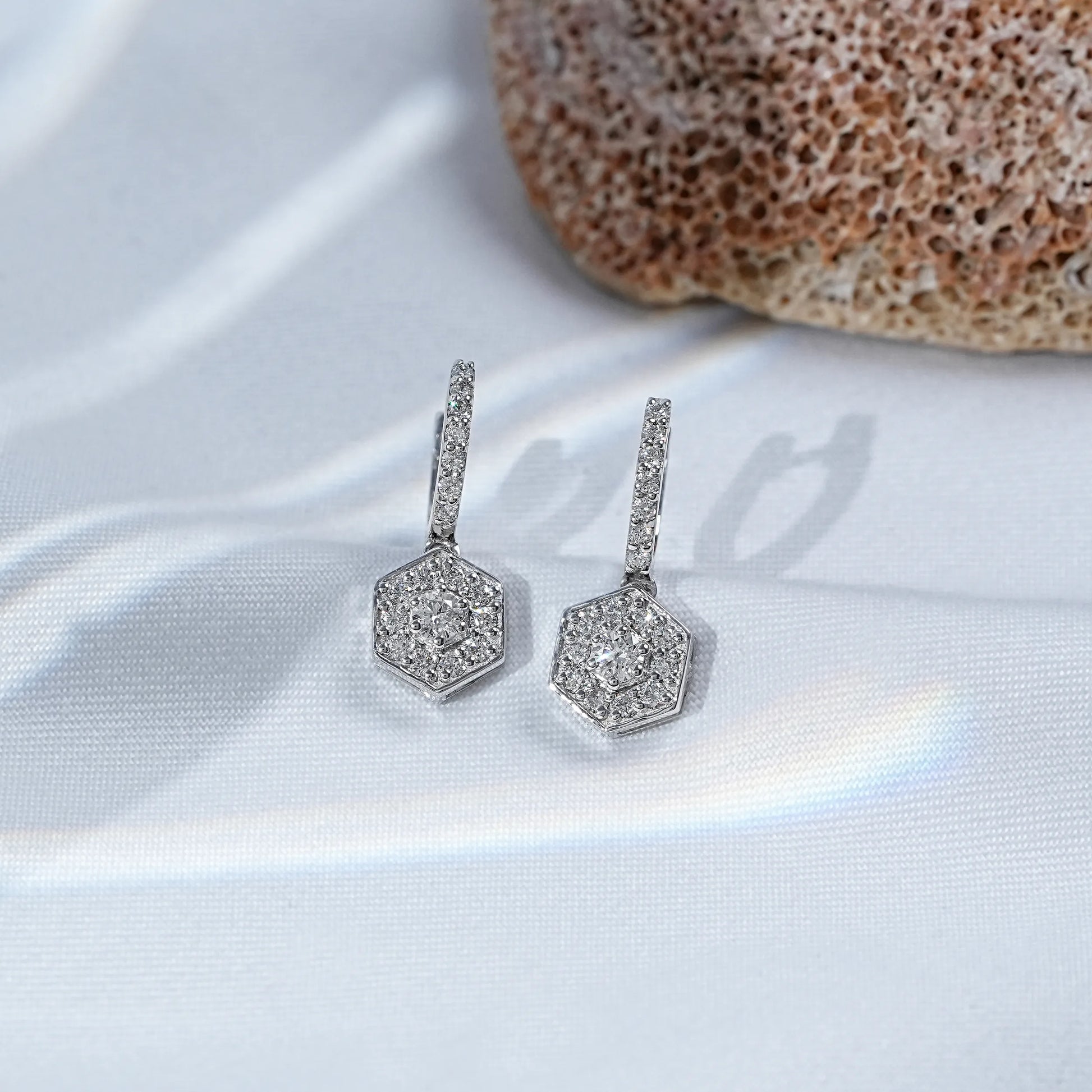 Hexagon Shape Round Diamond Drop Earrings