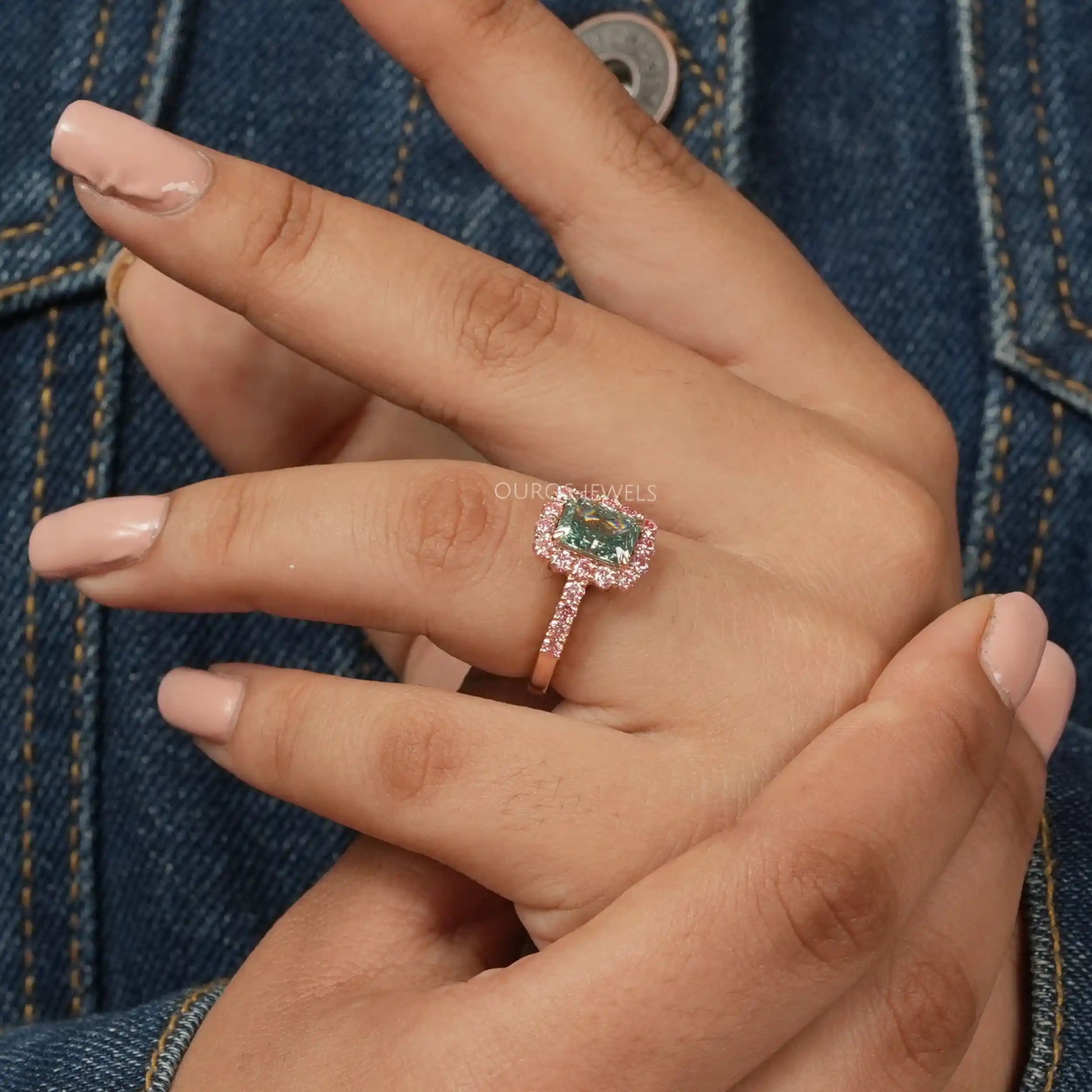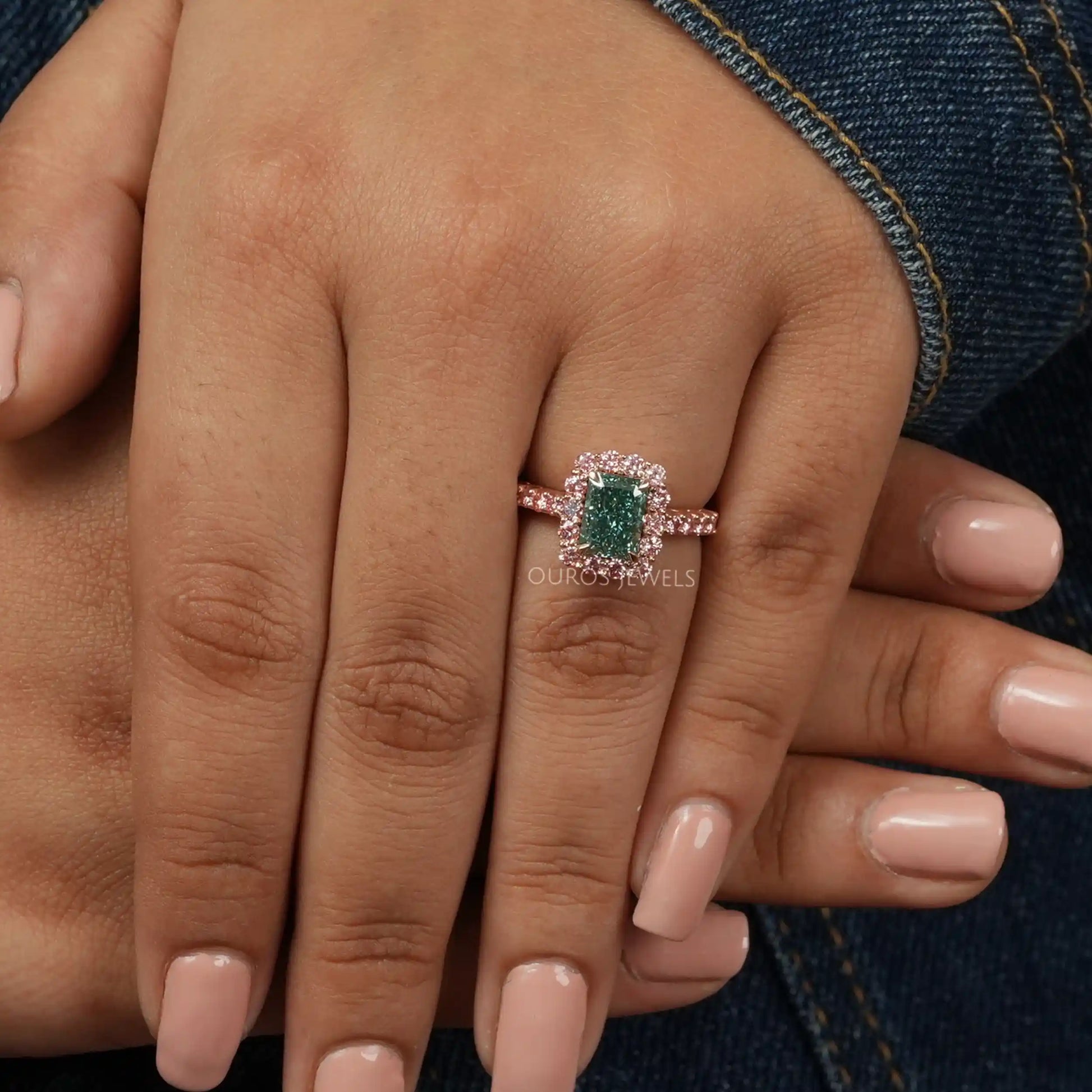 IGI Certified Green Radiant Cut Engagement Ring