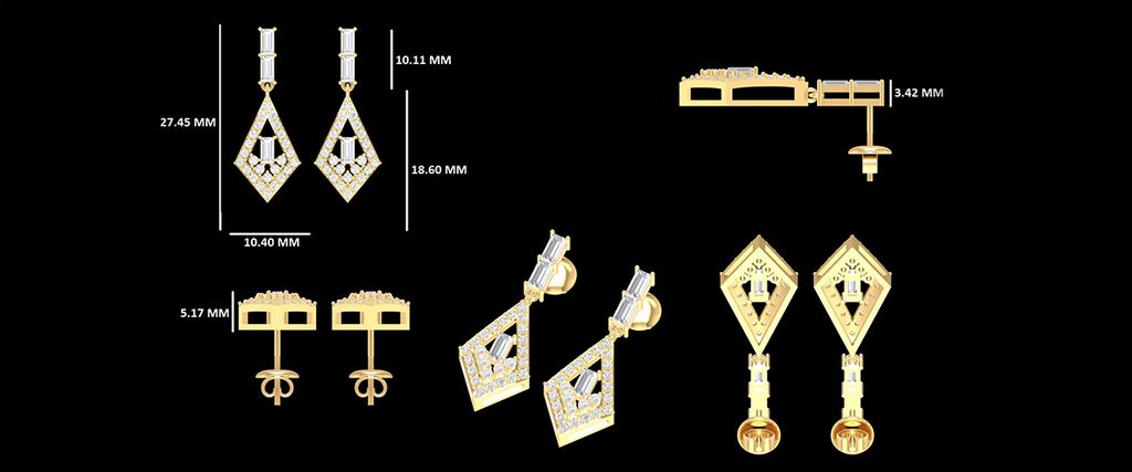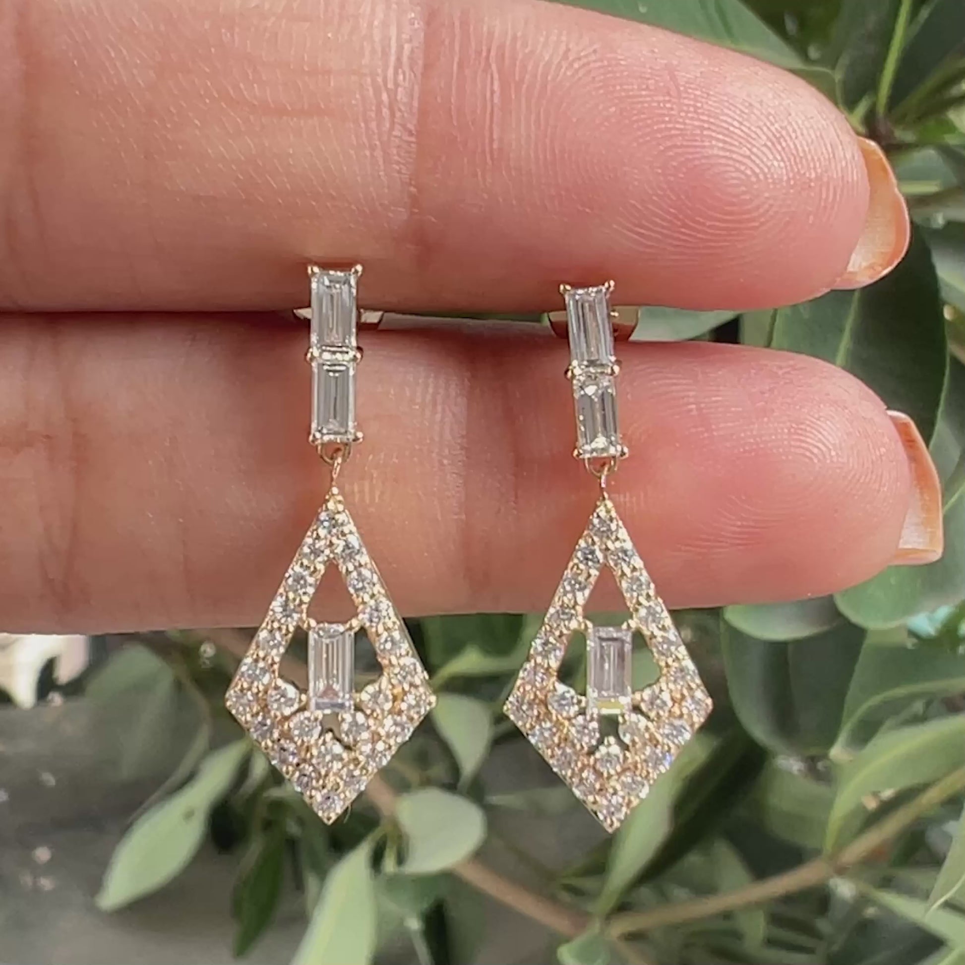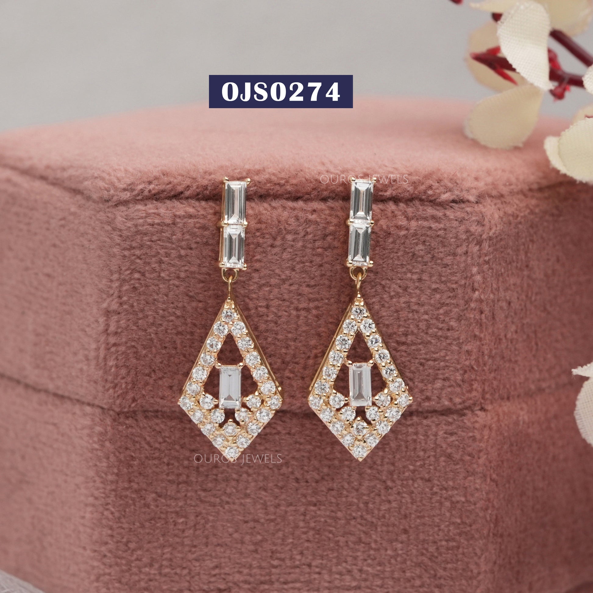 Kite Shape Baguette and Round Halo Teardrop Earrings