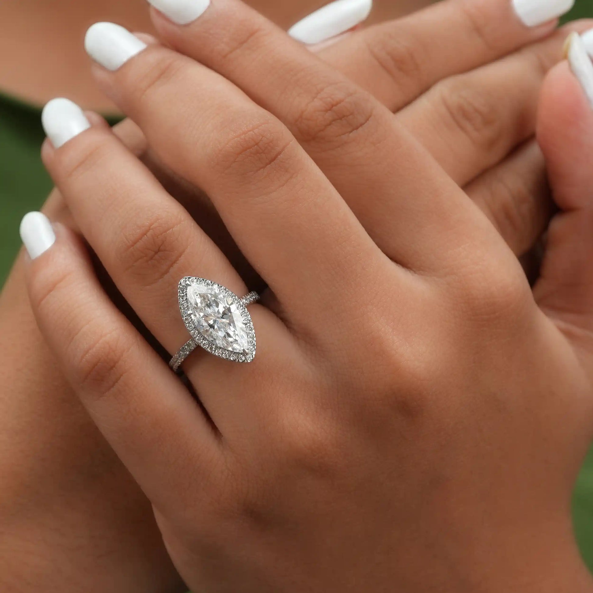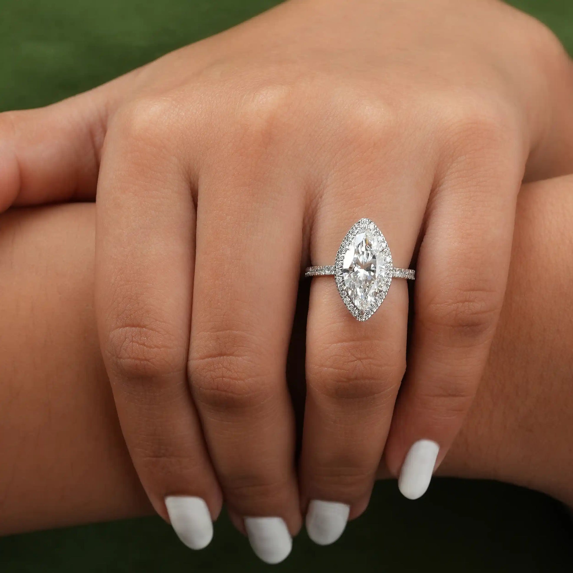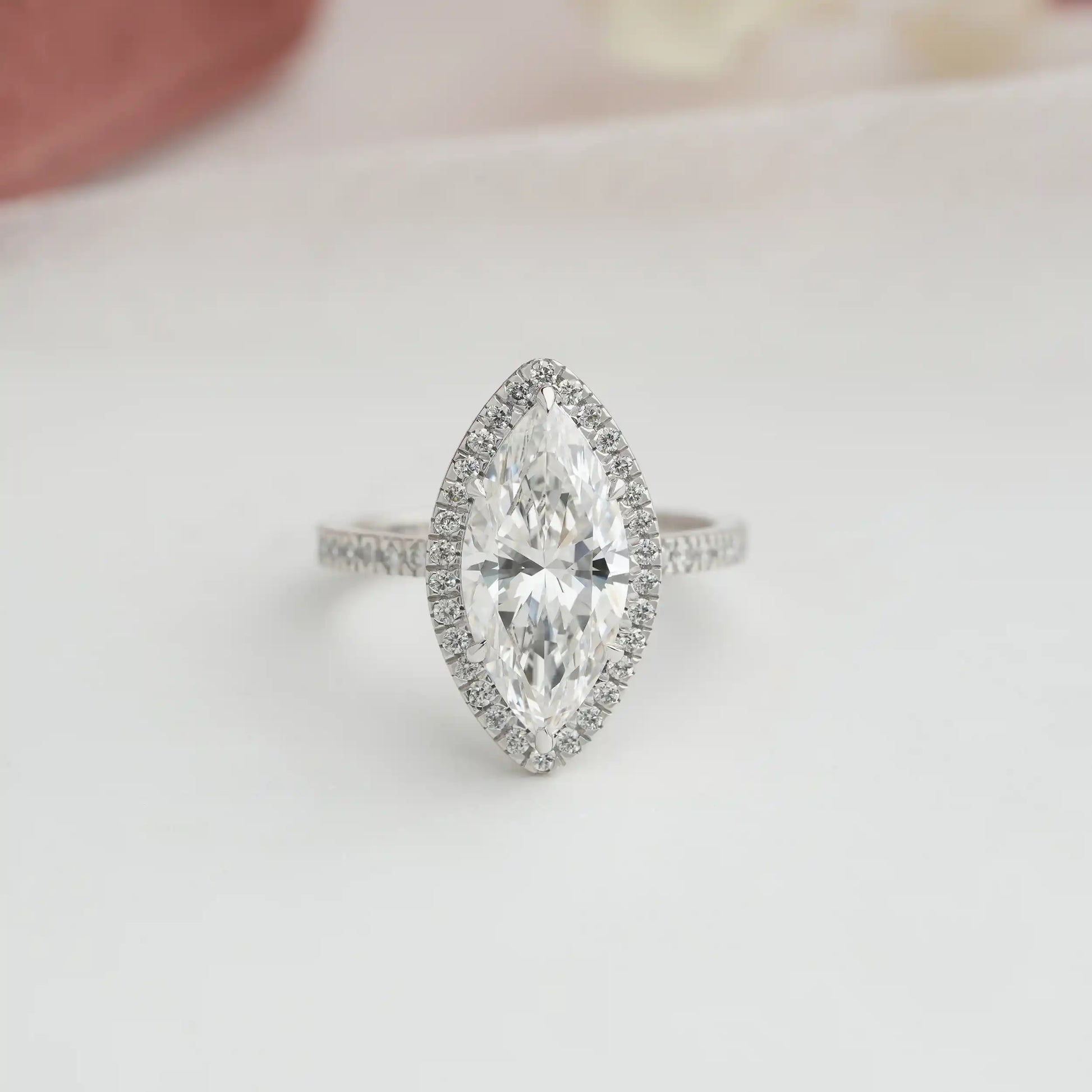 Marquise Cut Halo Lab Grown Diamond Engagement Ring