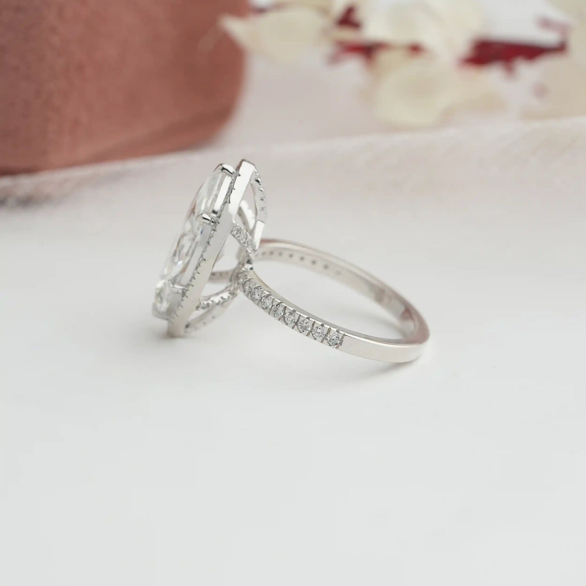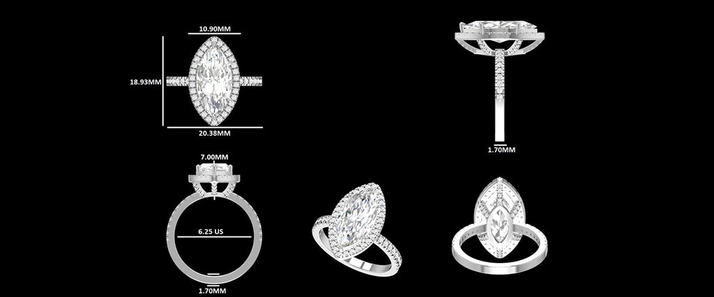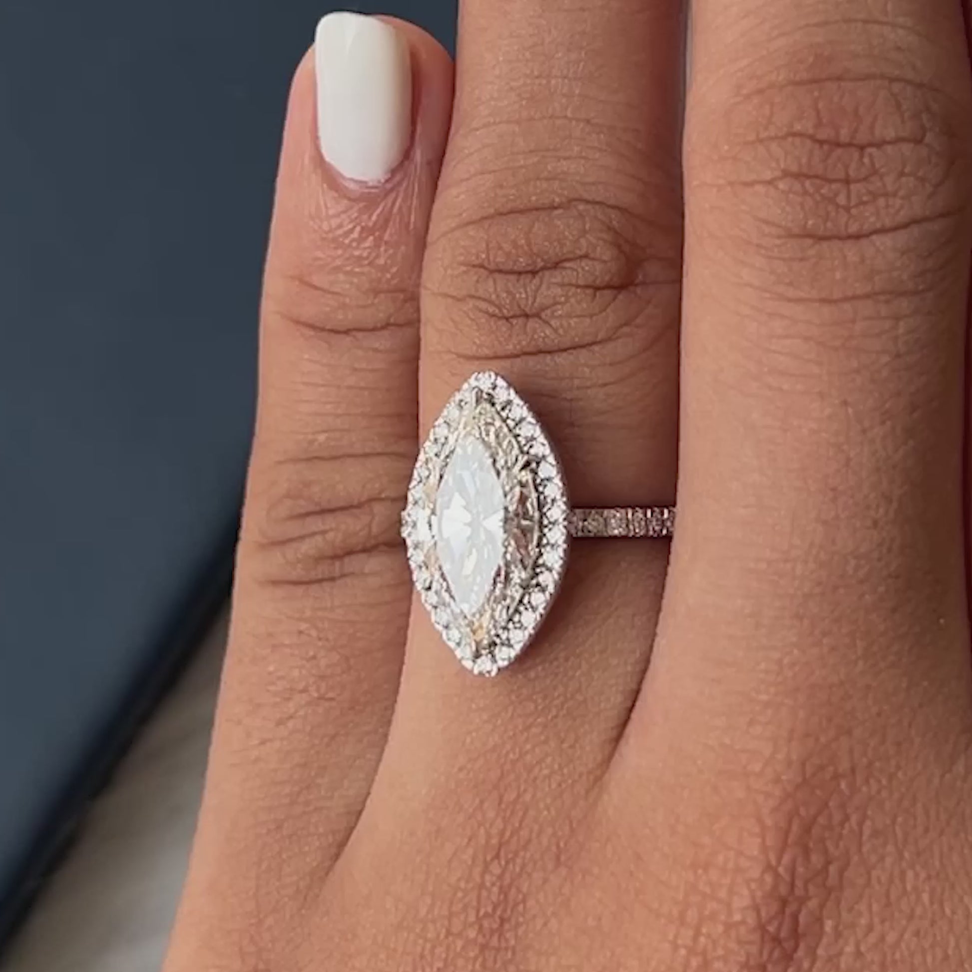 Marquise Cut Halo Lab Grown Diamond Engagement Ring