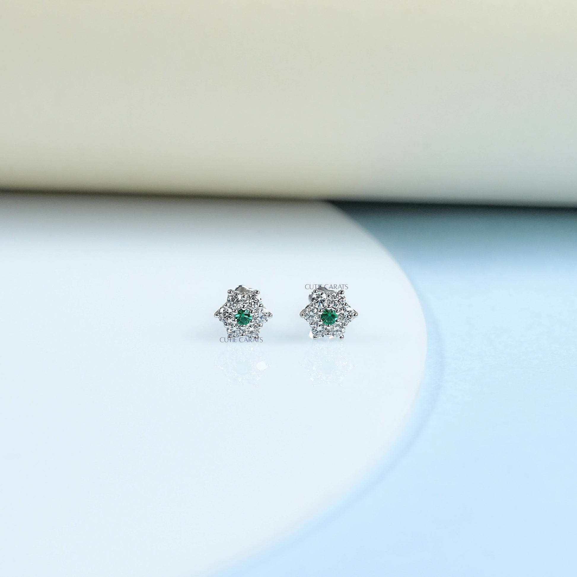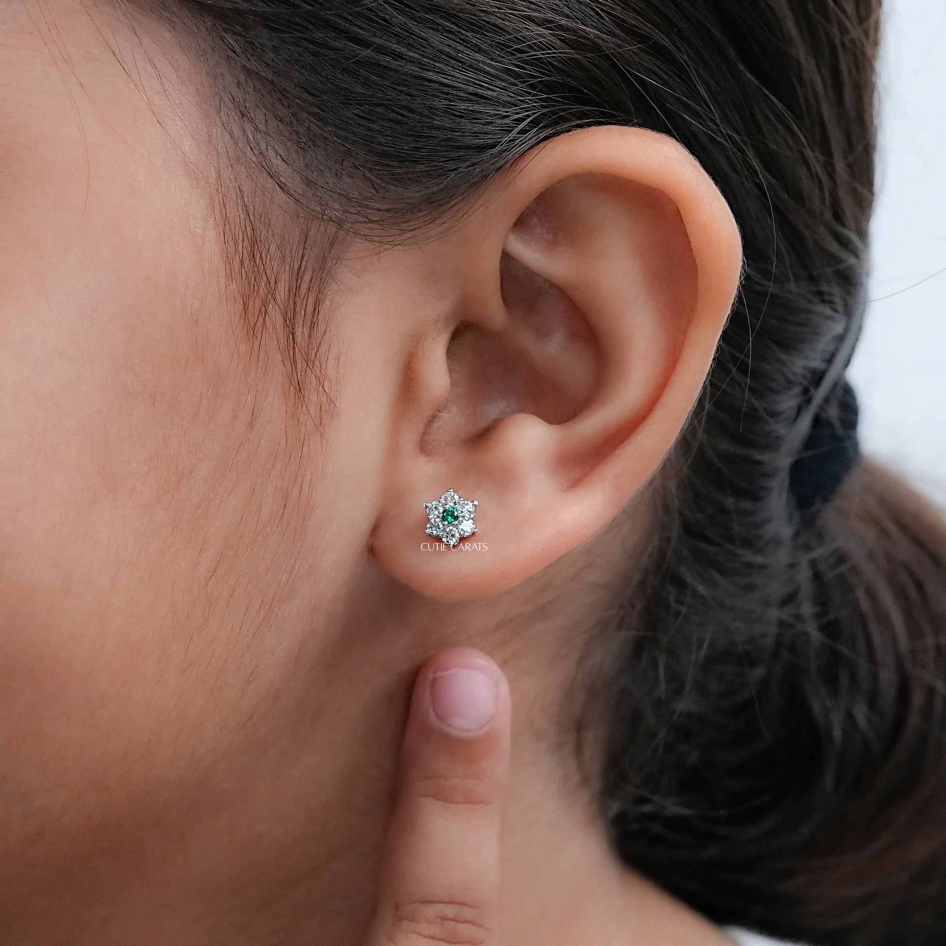 Minimalist Gemstone And Diamond Flower Stud Earring