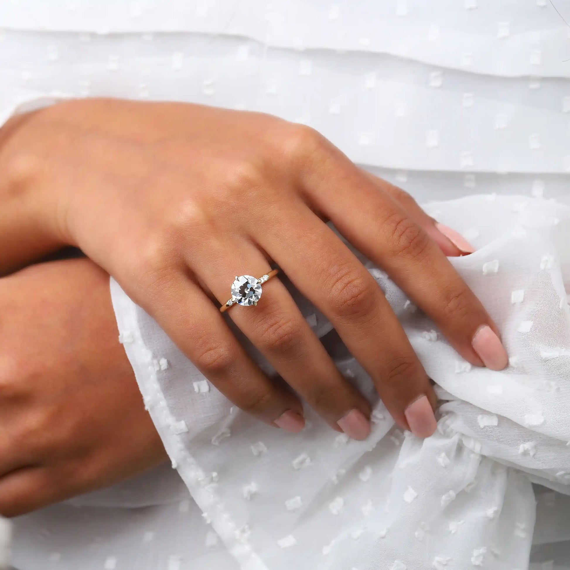 OEC Round Cut Solitaire With Accent Lab Grown Diamond Ring