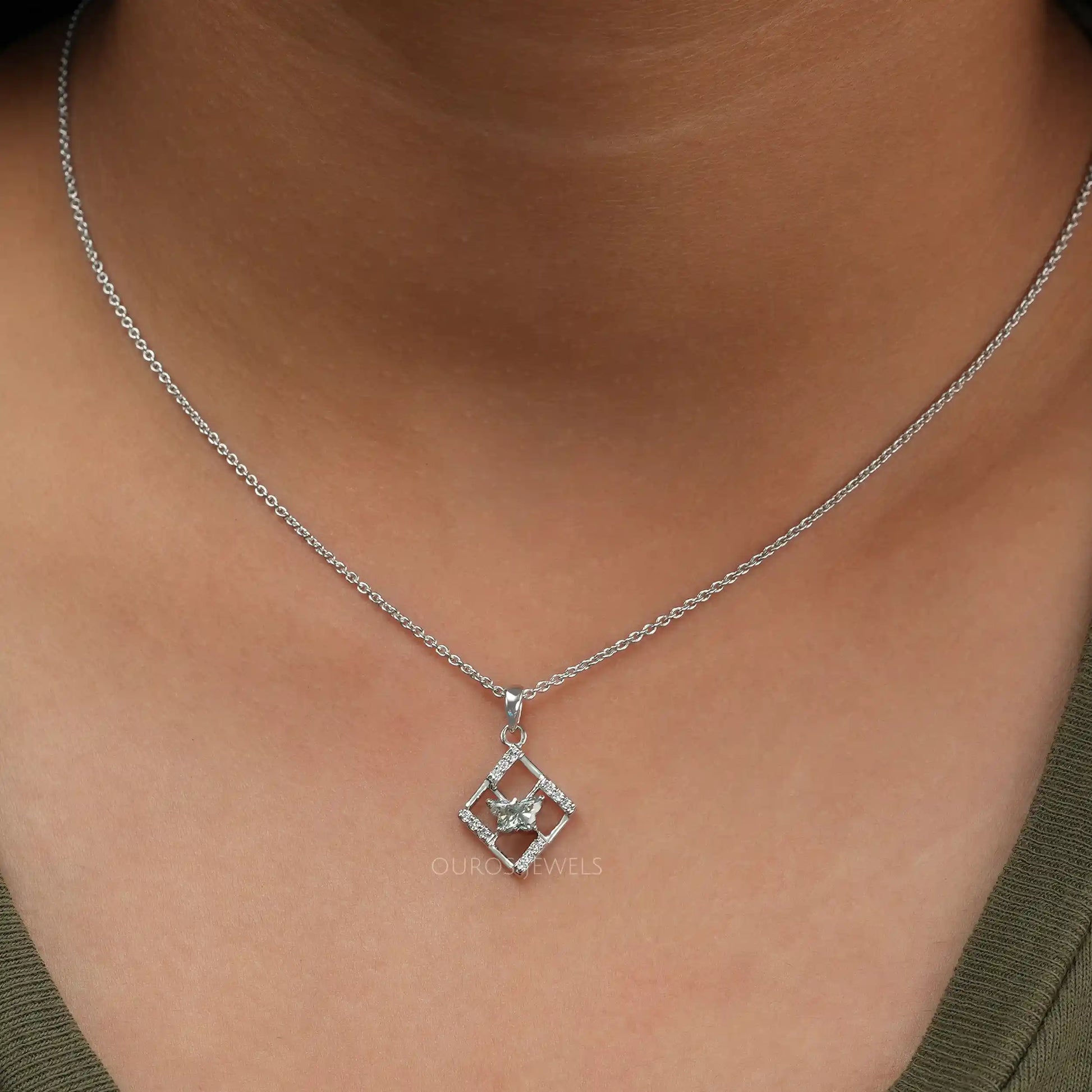 Olive Butterfly Cut Cluster Necklace