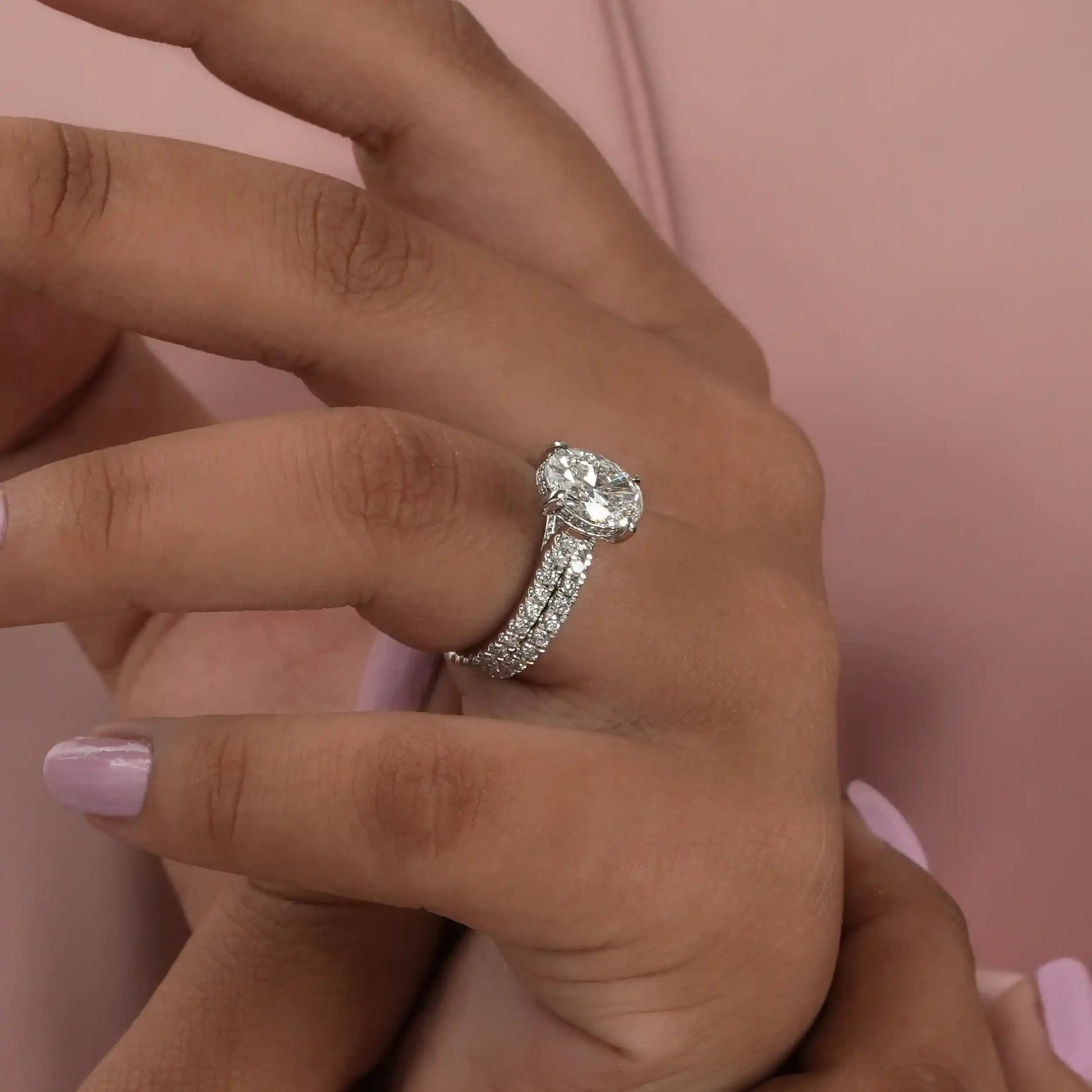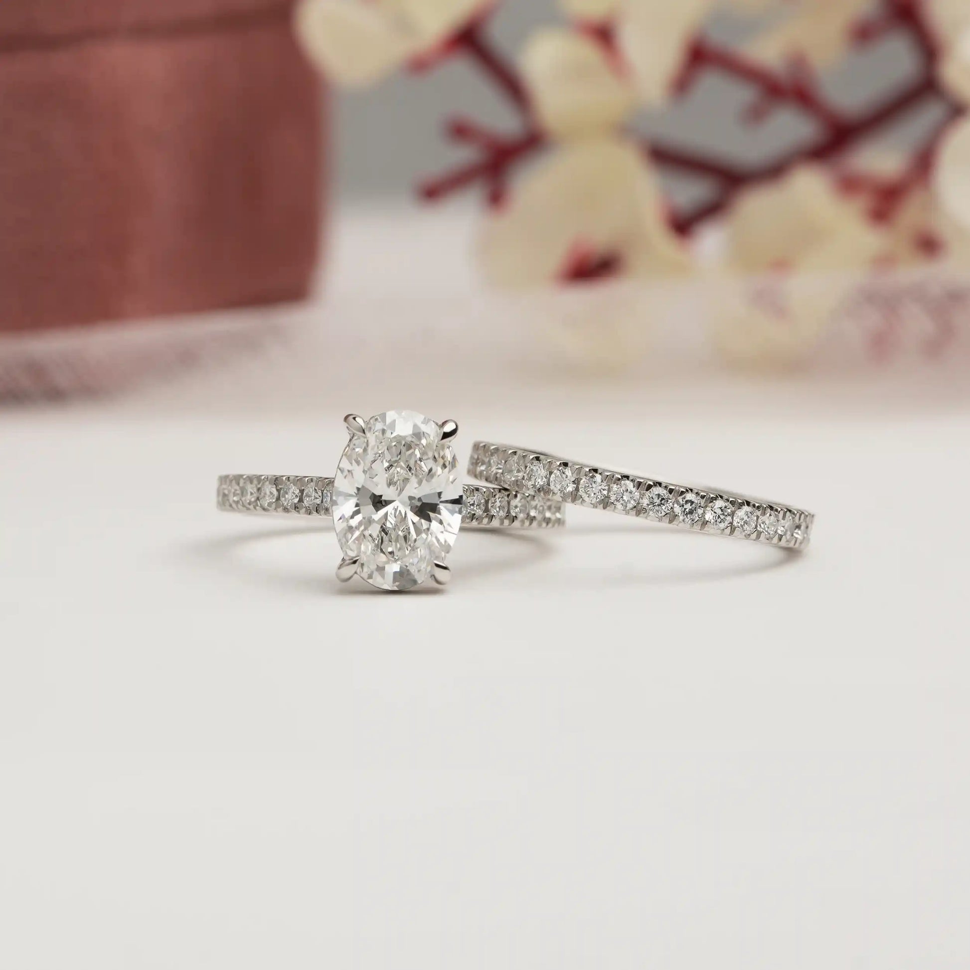 Oval Cut Solitaire With Accent Lab Diamond Bridal Ring Set