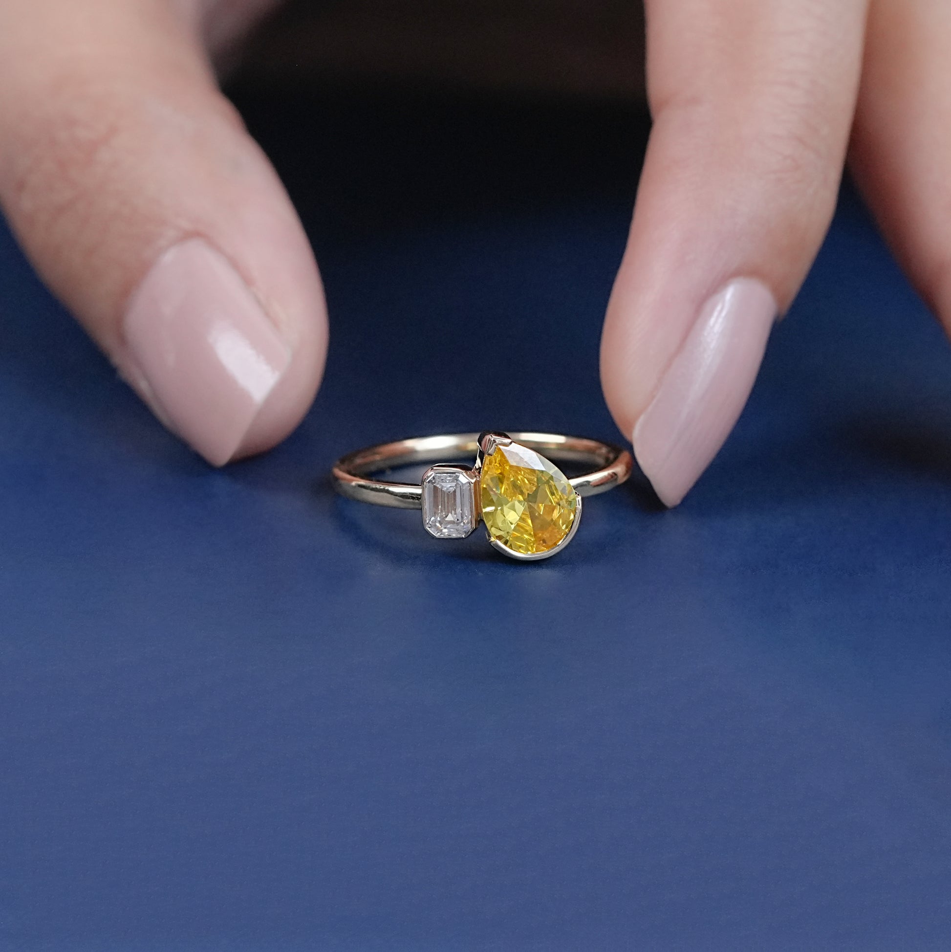 Pear And Emerald Cur Lab Grown Diamond Ring