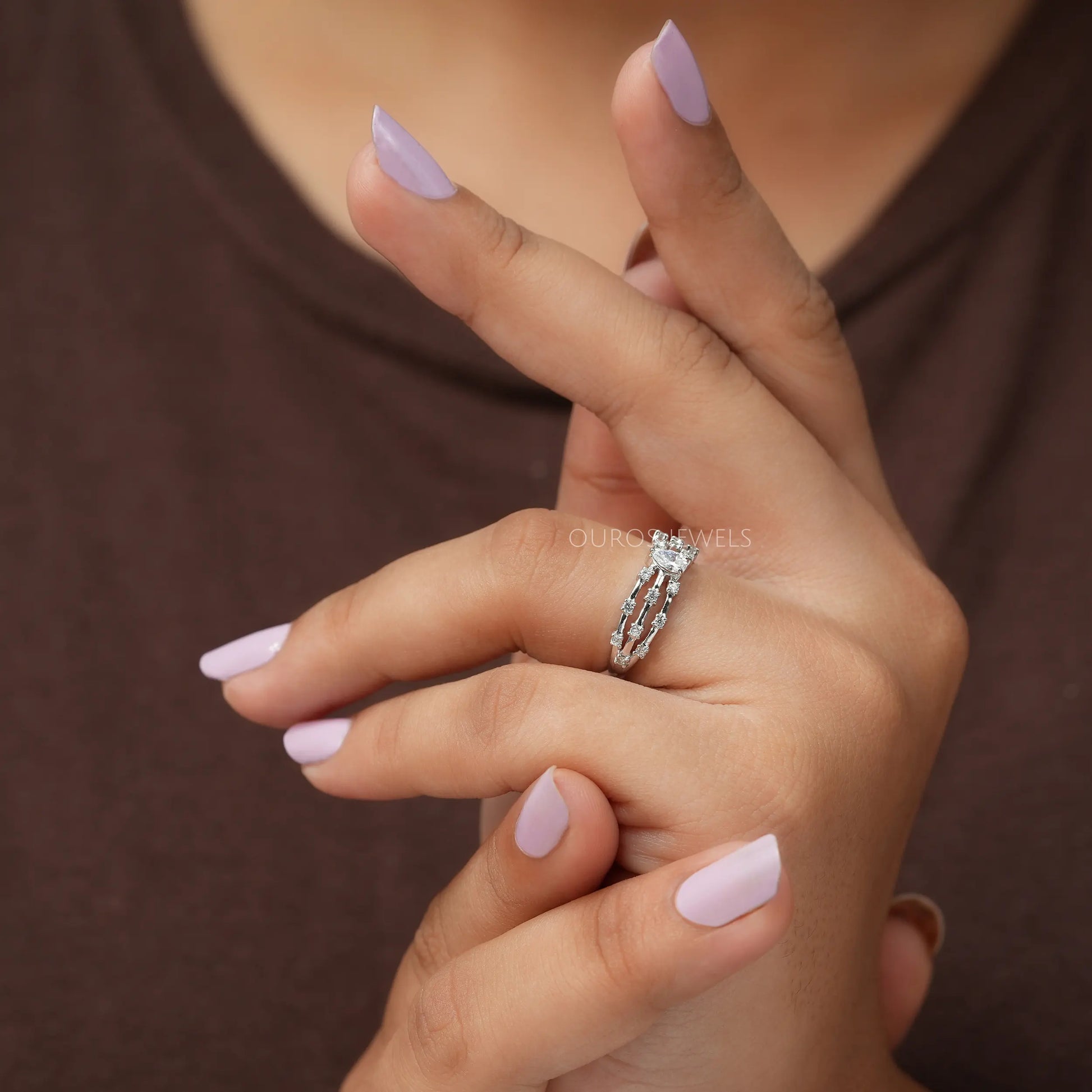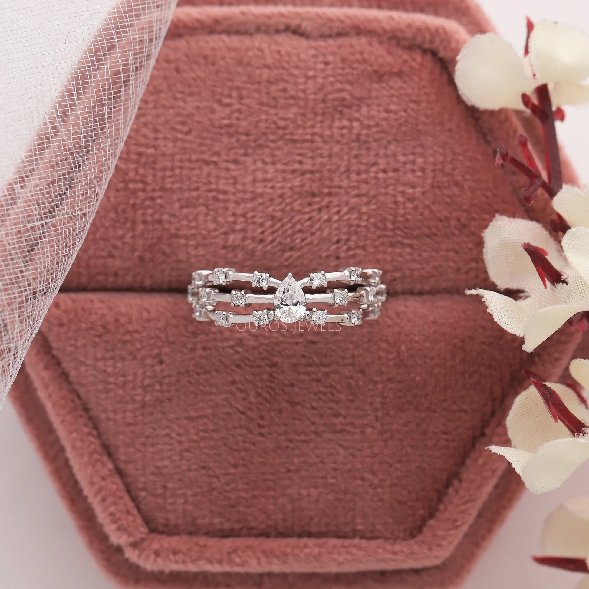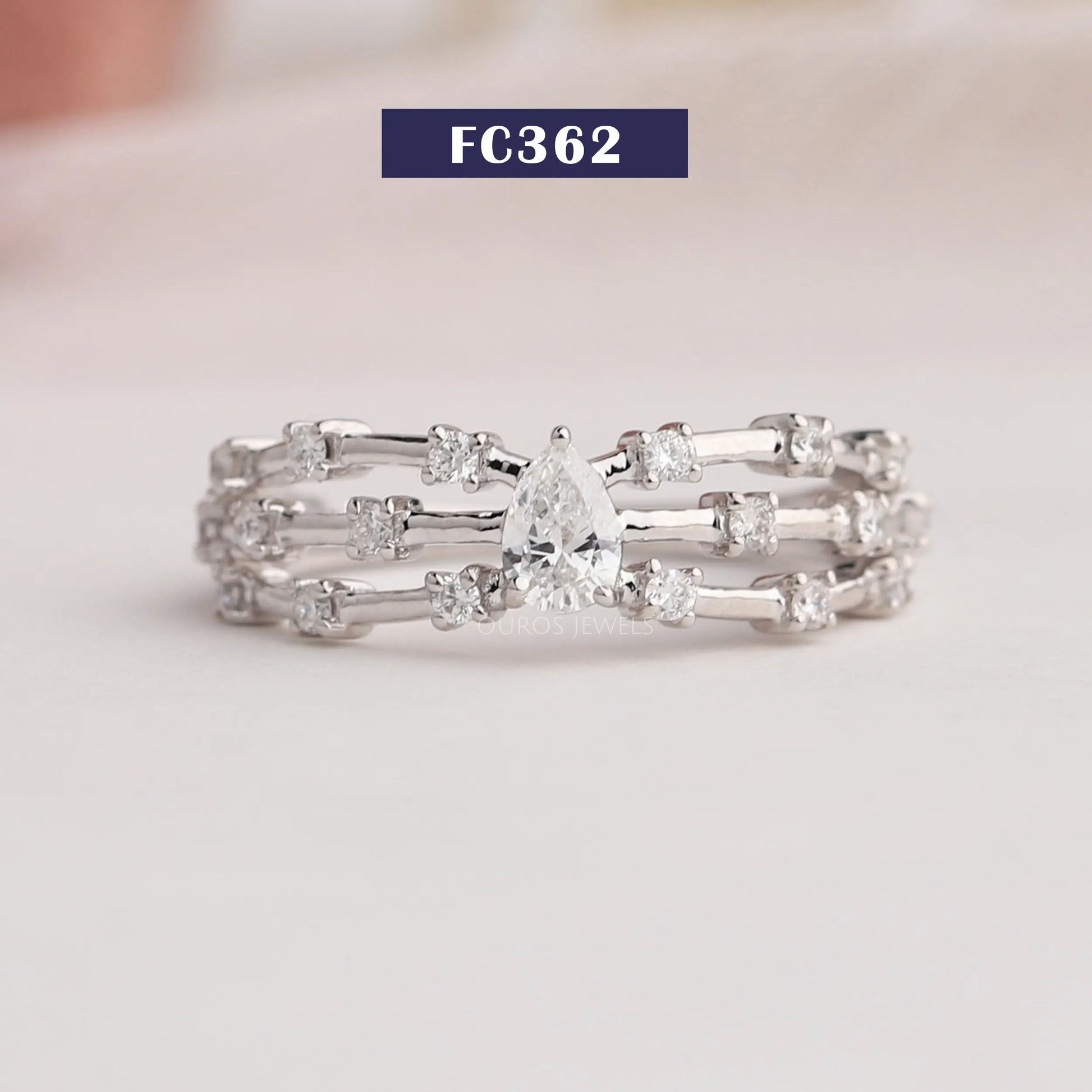 Pear Cut Diamond Triple Row Ring