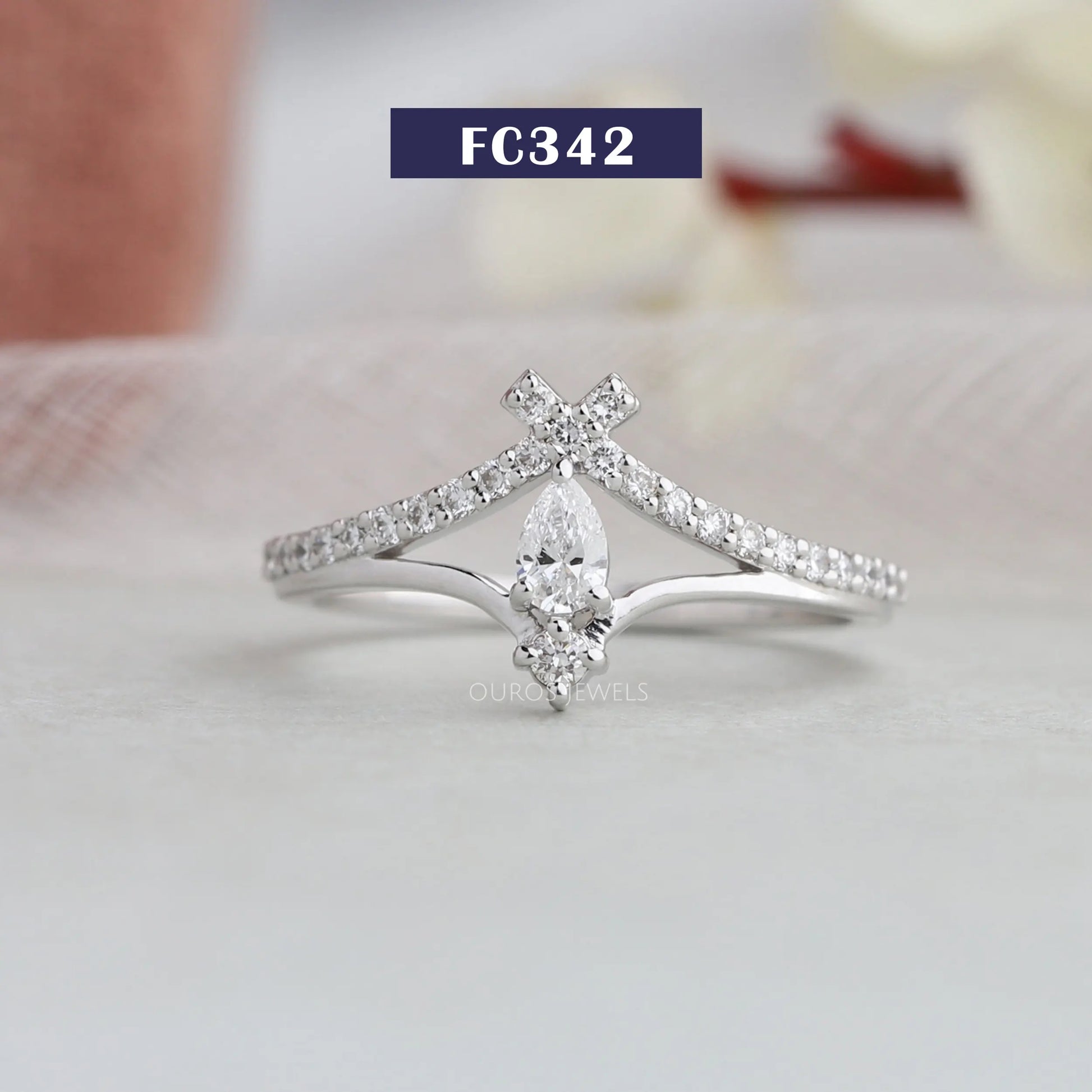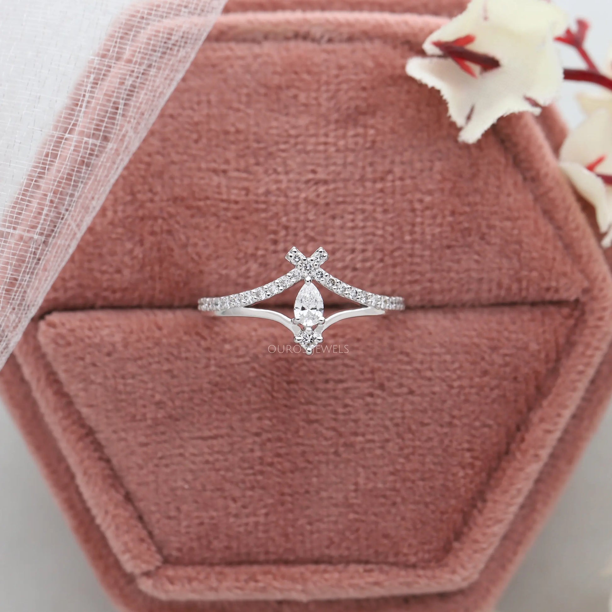 Pear Cut Lab Diamond Accent Diamond Ring