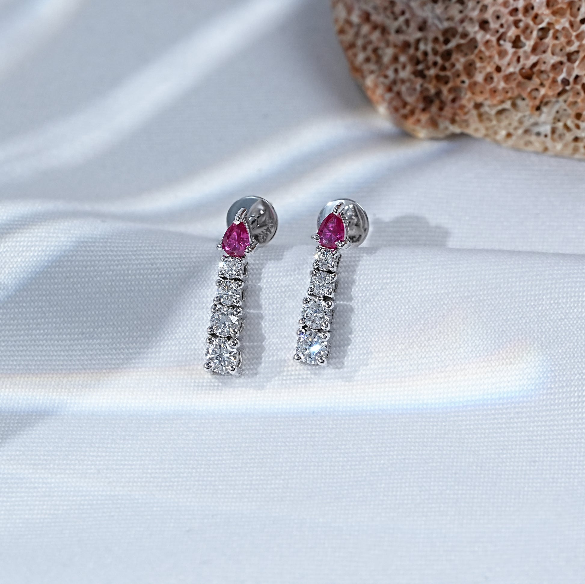 Pear Gemstone And Round Lab Diamond Drop Earrings