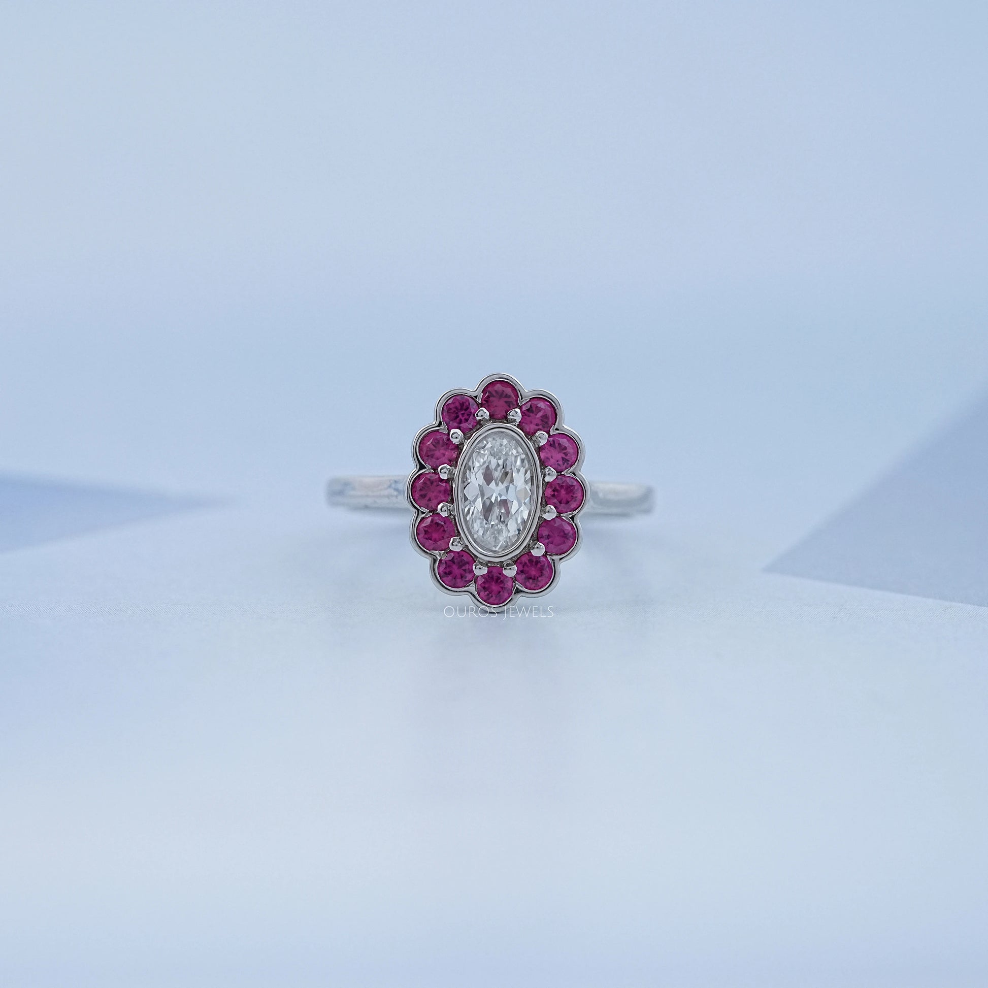 Pink Gemstone Halo Diamond Engagement Ring