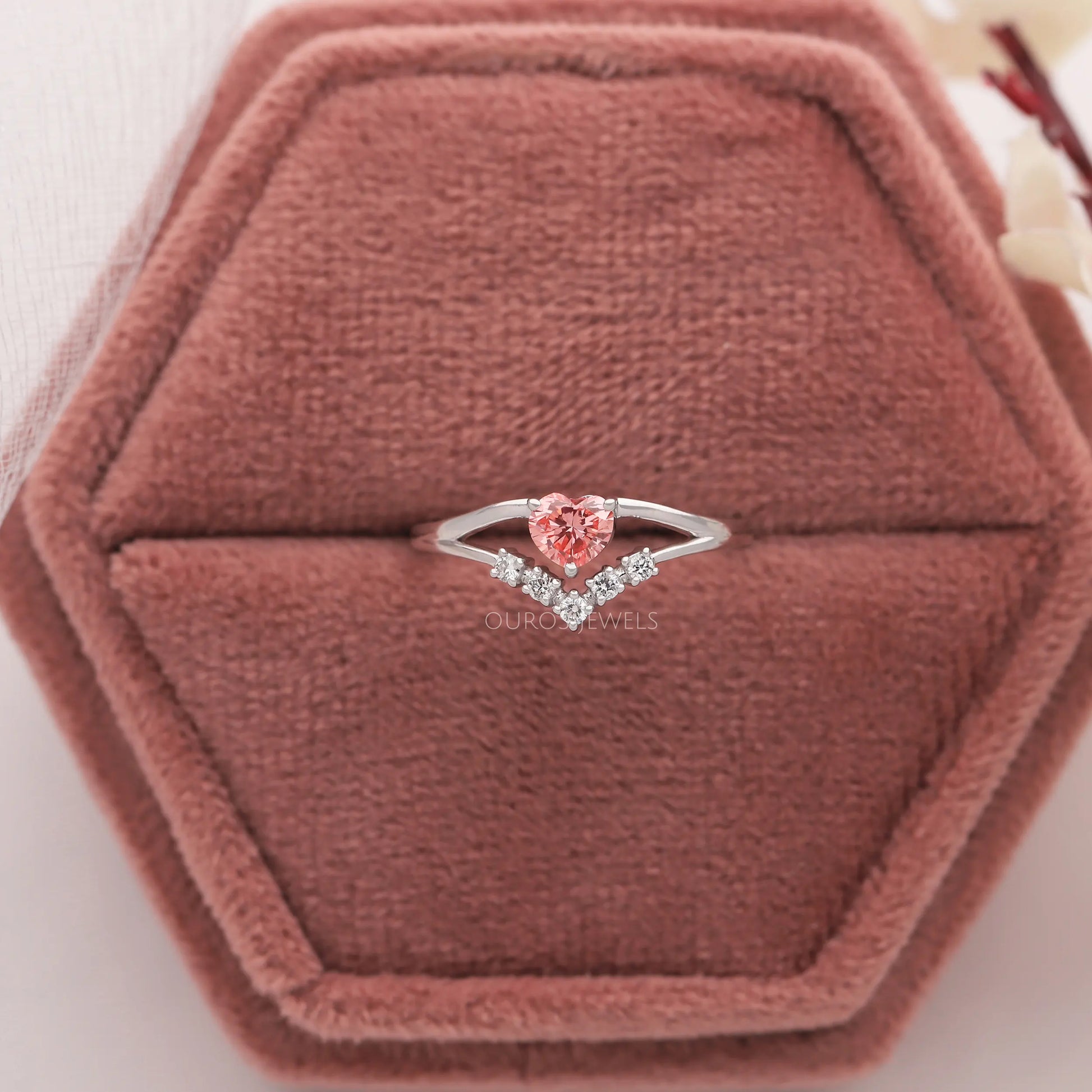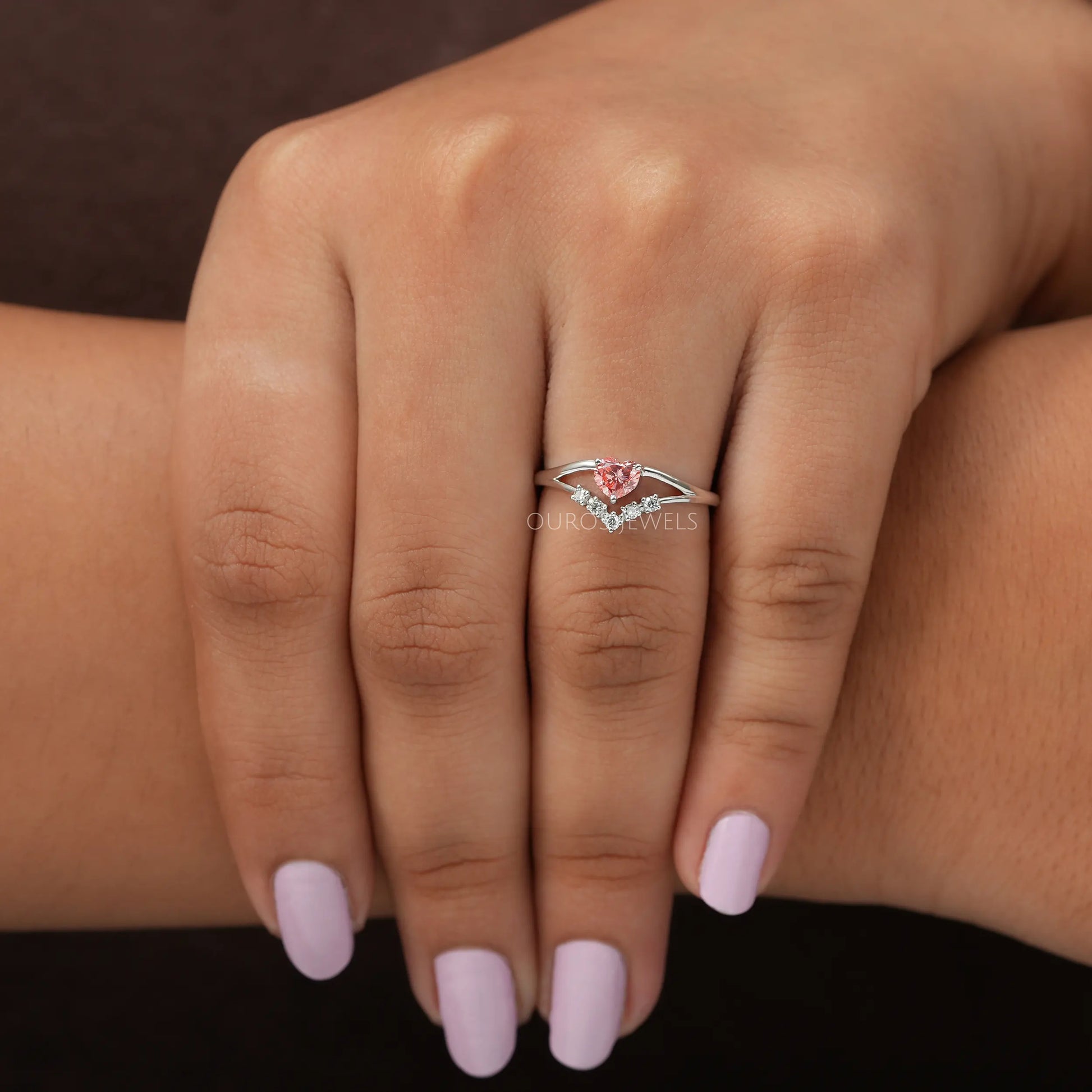 Pink Heart Curved Cluster Diamond Dainty Ring
