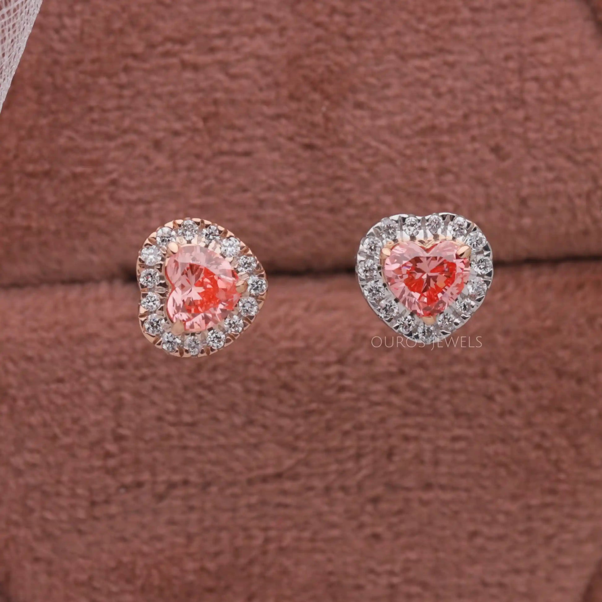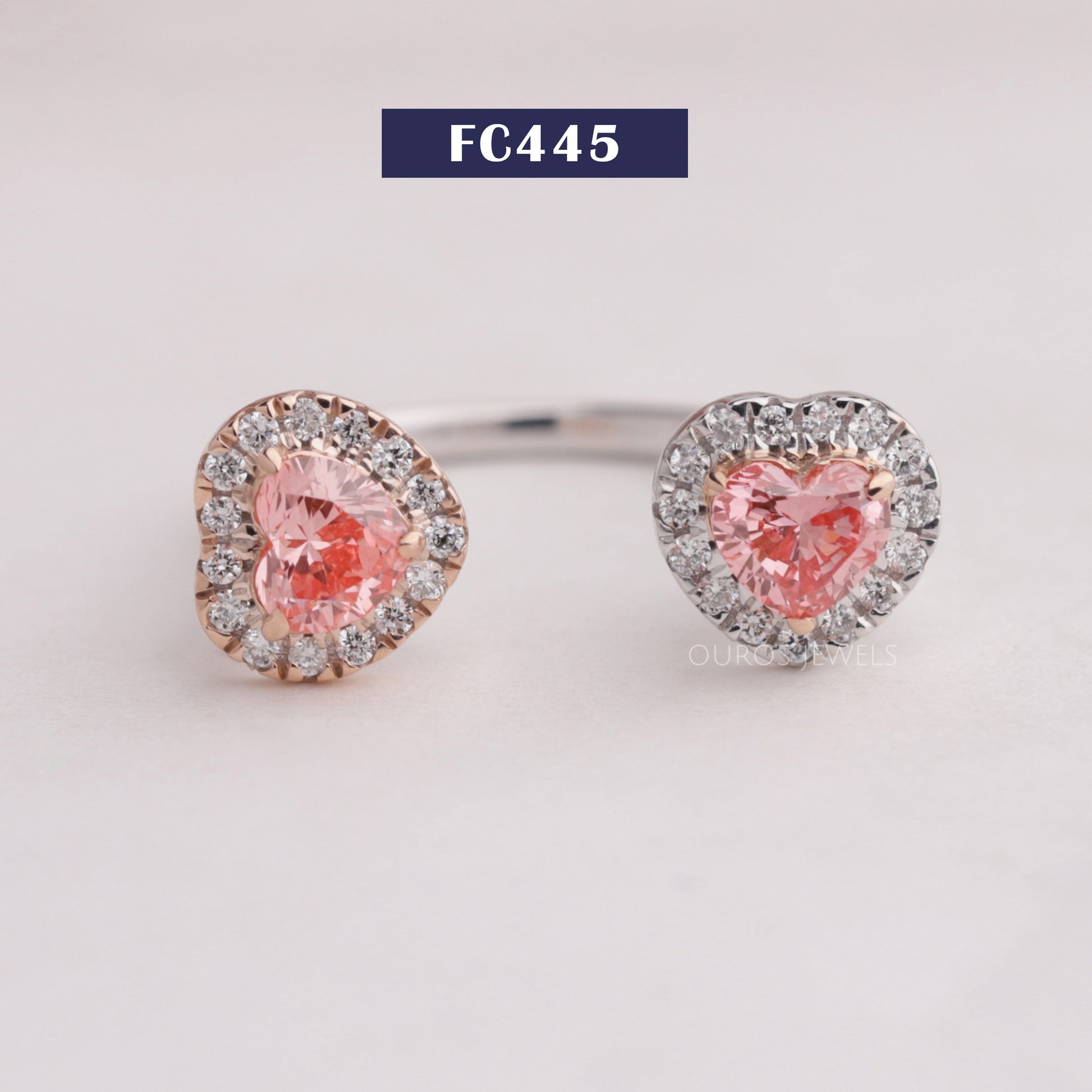 Pink Heart Cut Halo Diamond Open Cuff Ring