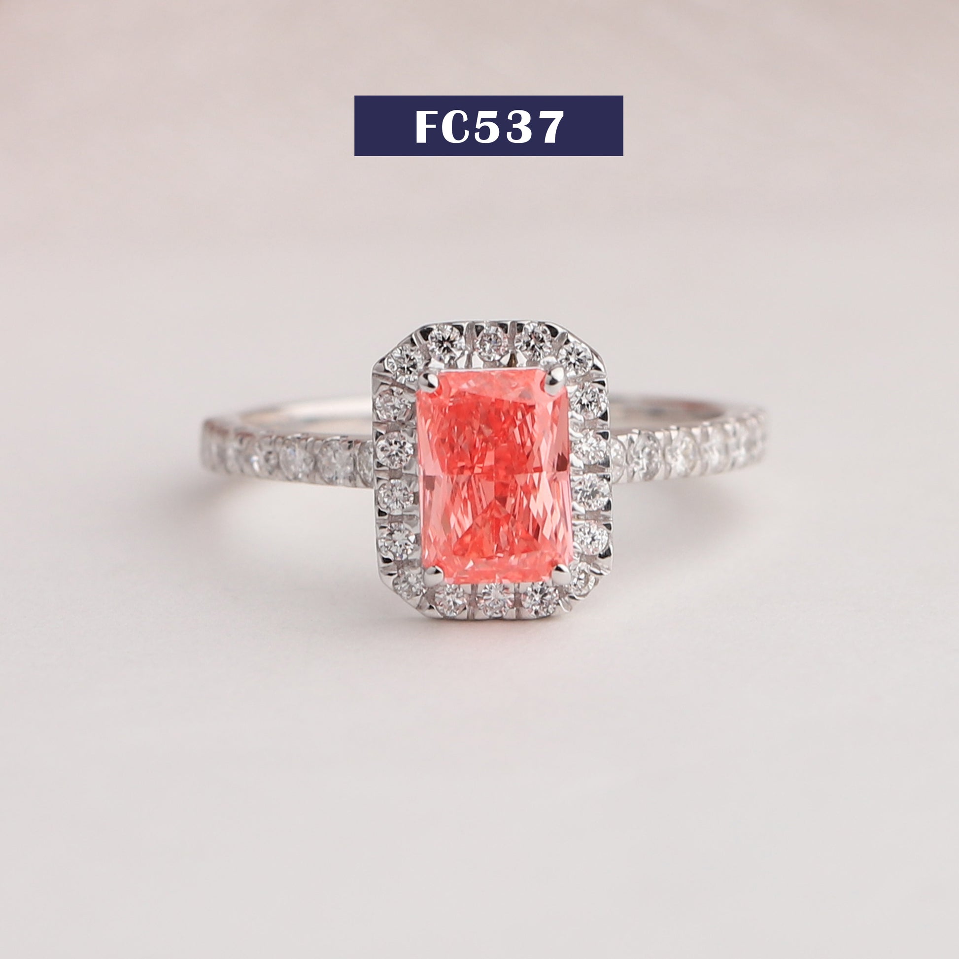 Pink Radiant Cut Halo With Accent Diamond Ring