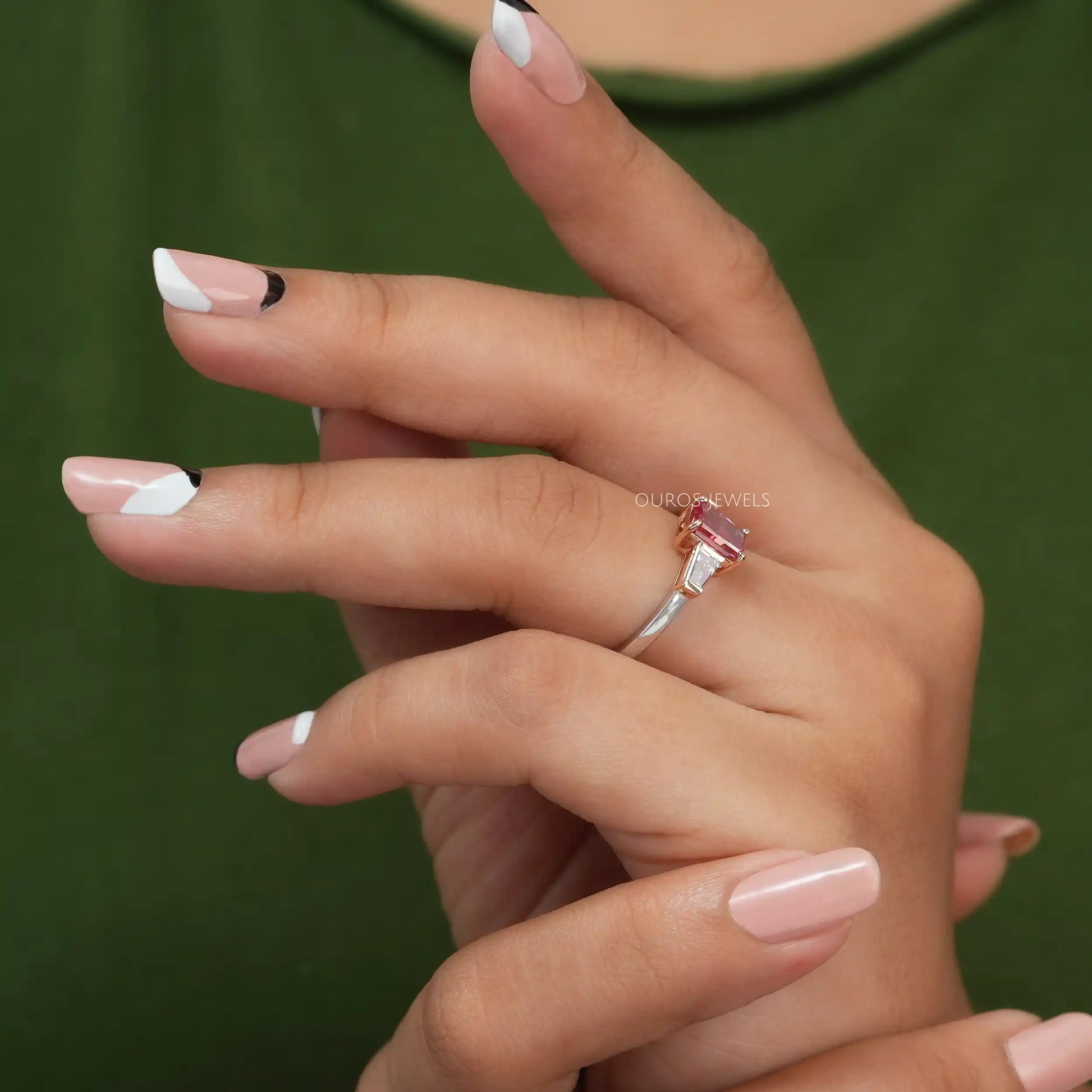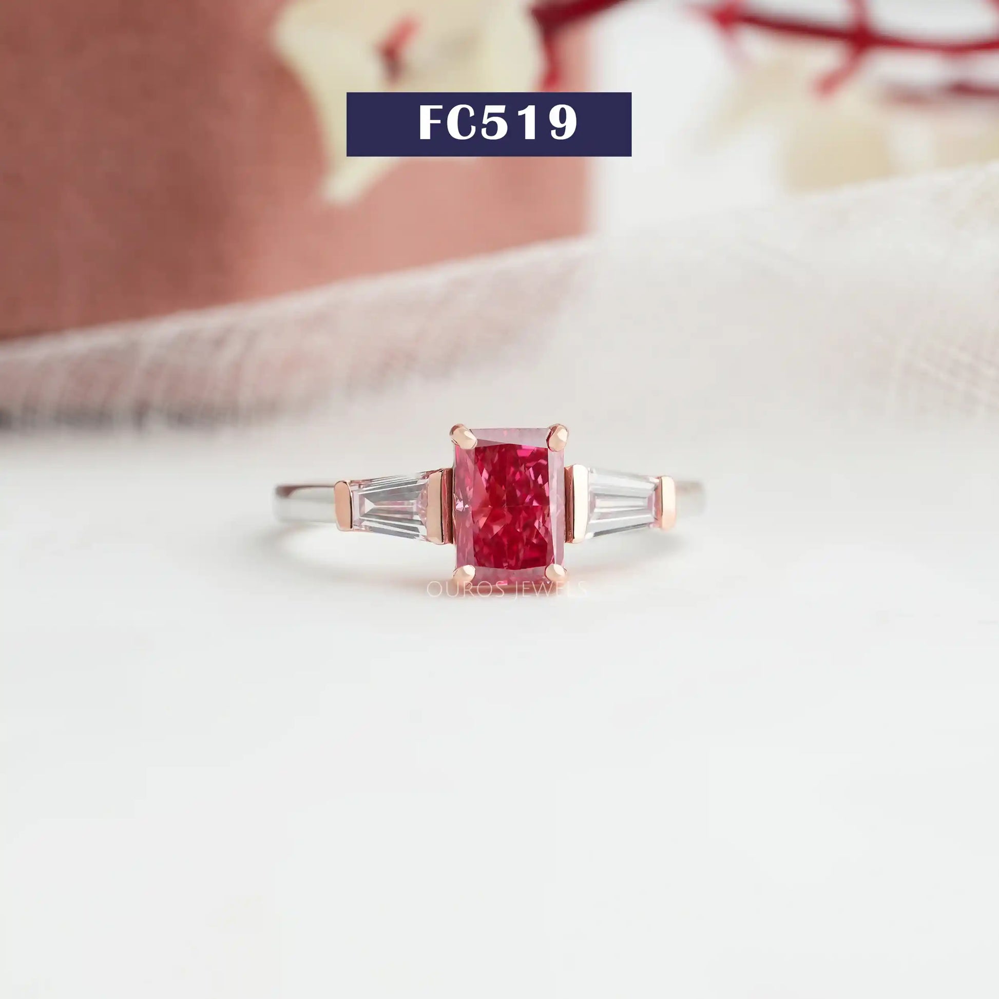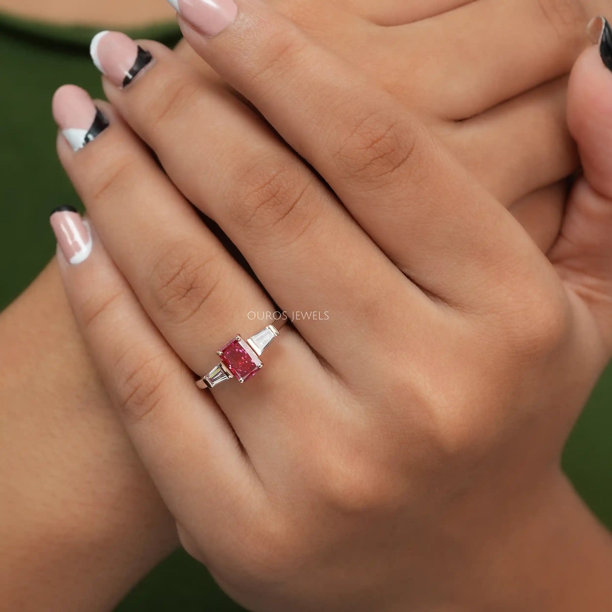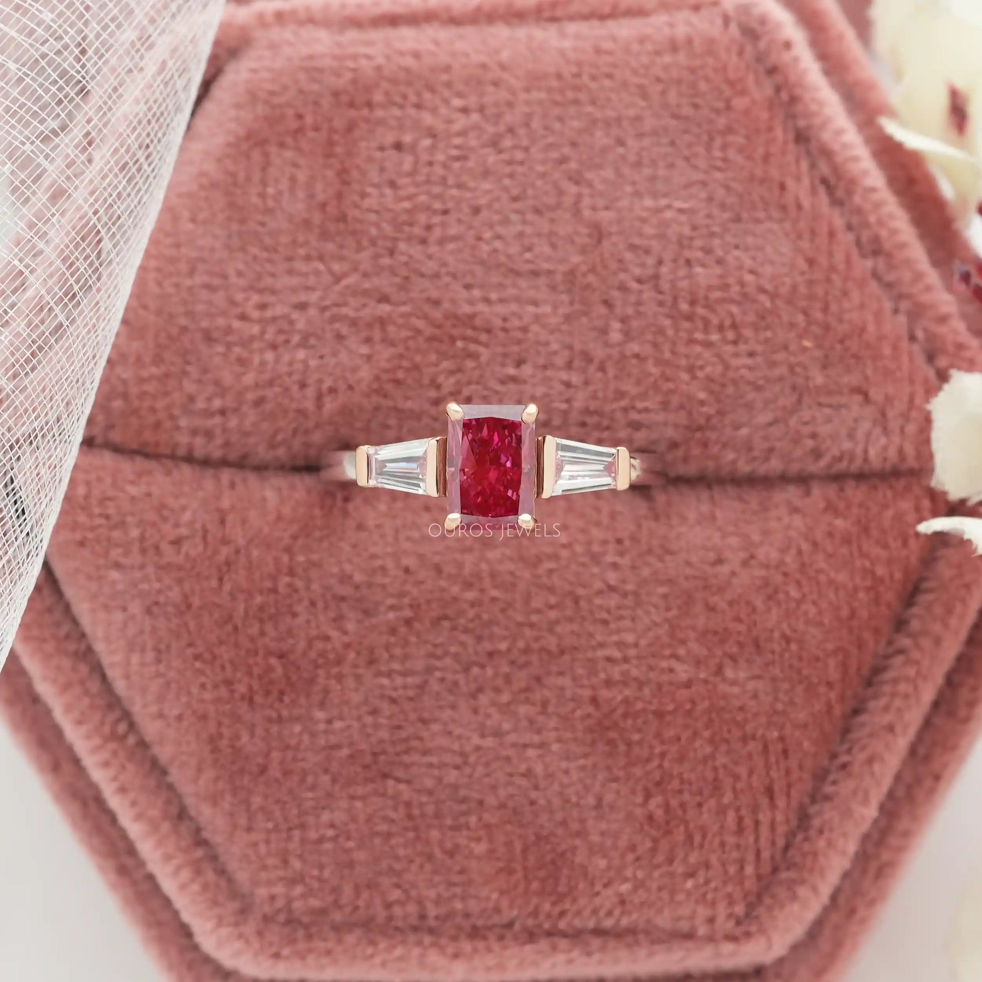Pink Radiant Cut Three Stone Ring