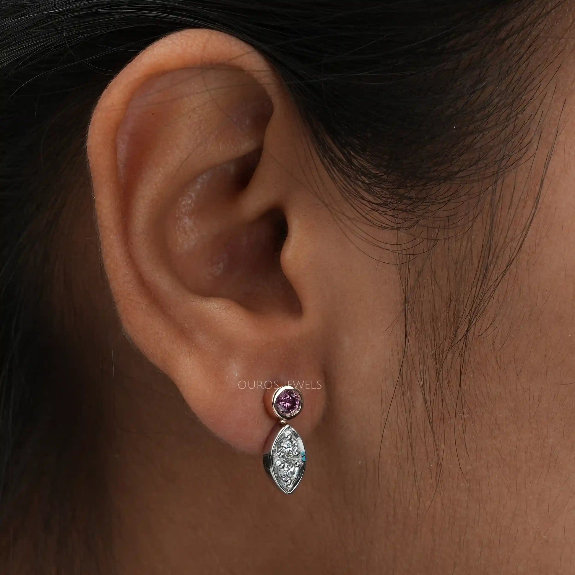 Round Cut Diamond Bezel Set Earrings