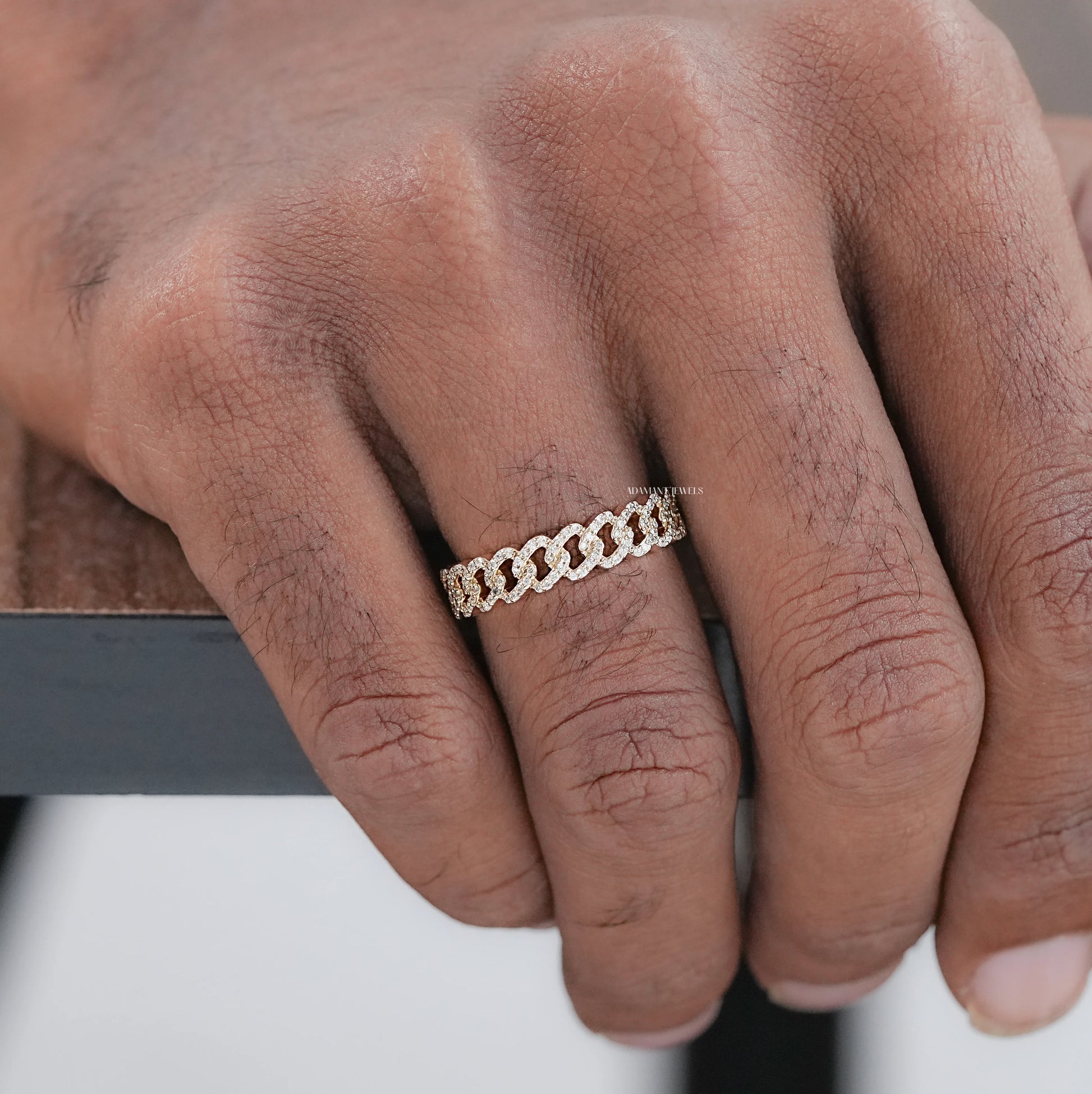 Round Diamond Pave Set Cuban Link Chain Men's Band