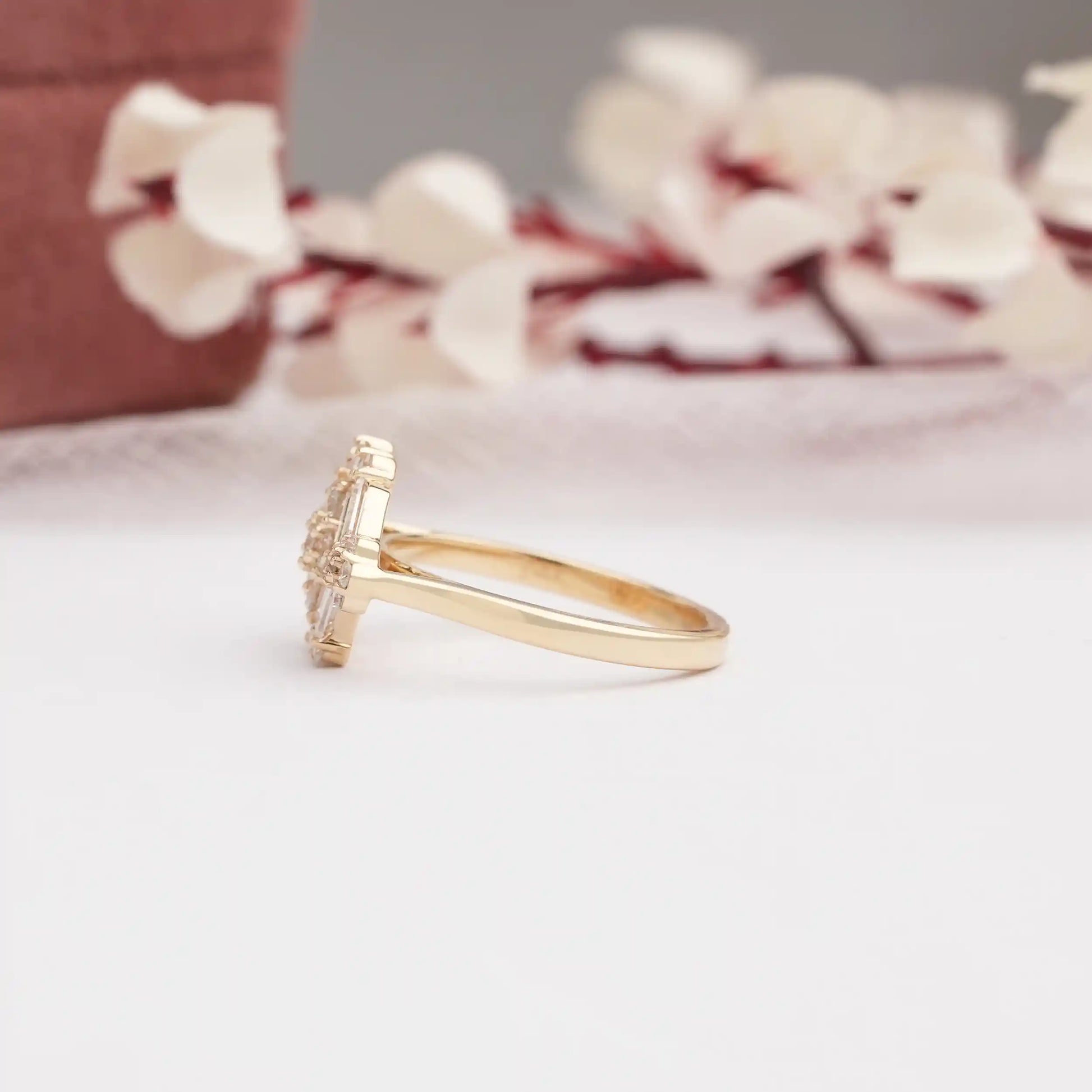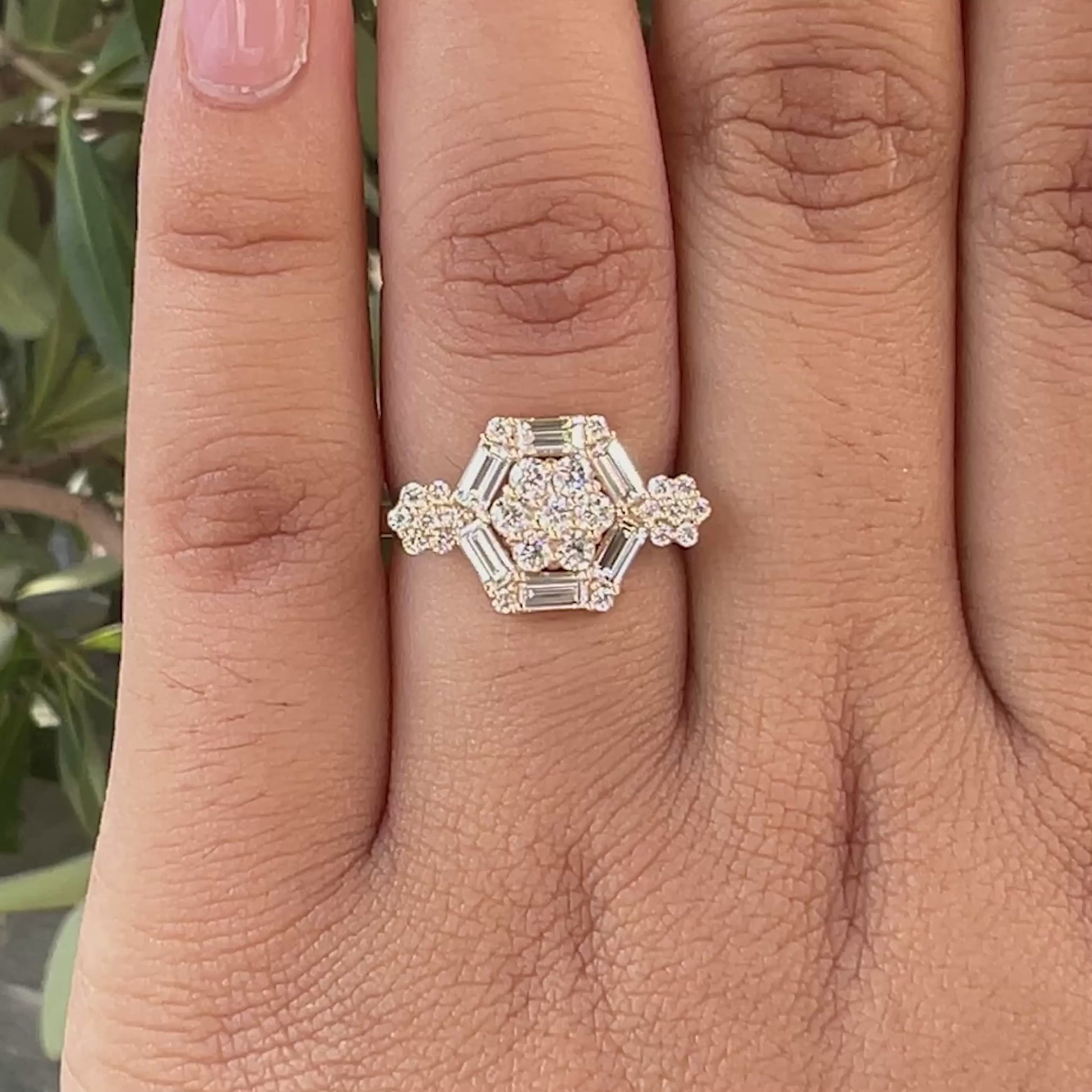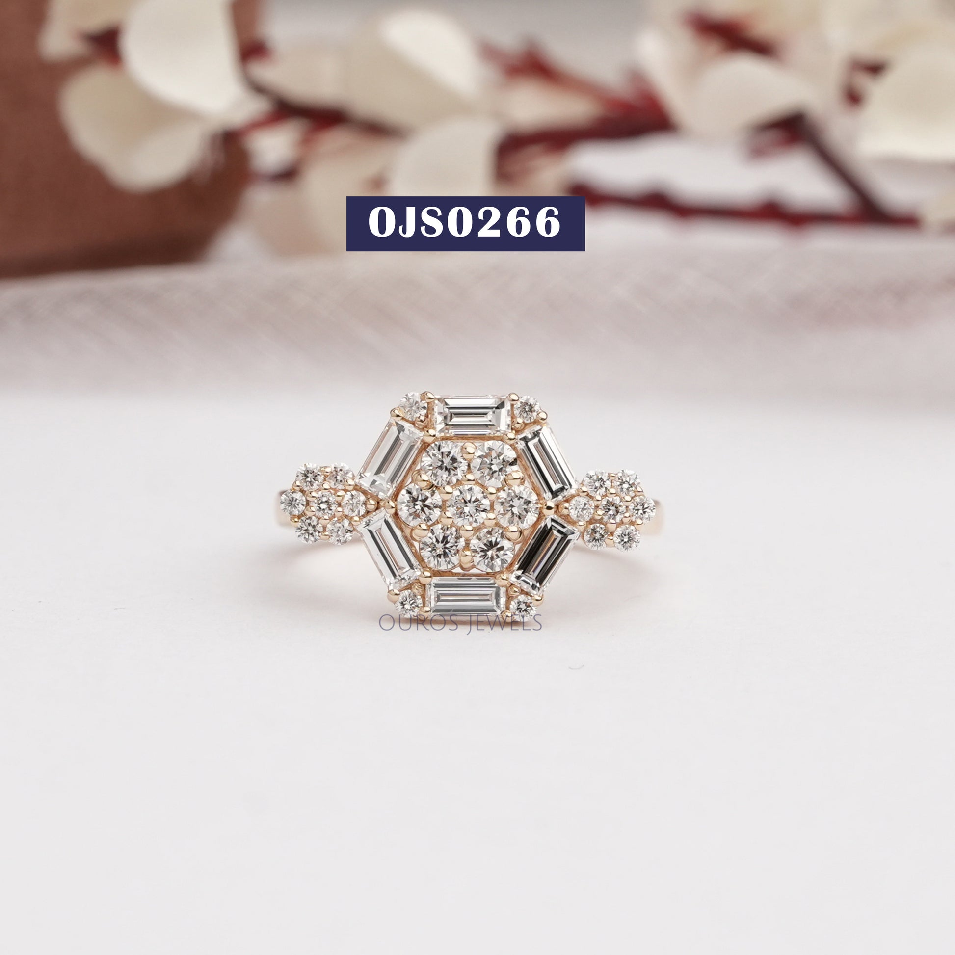 Round Flower Octagon Shape Baguette Cut Halo Lab Diamond Ring