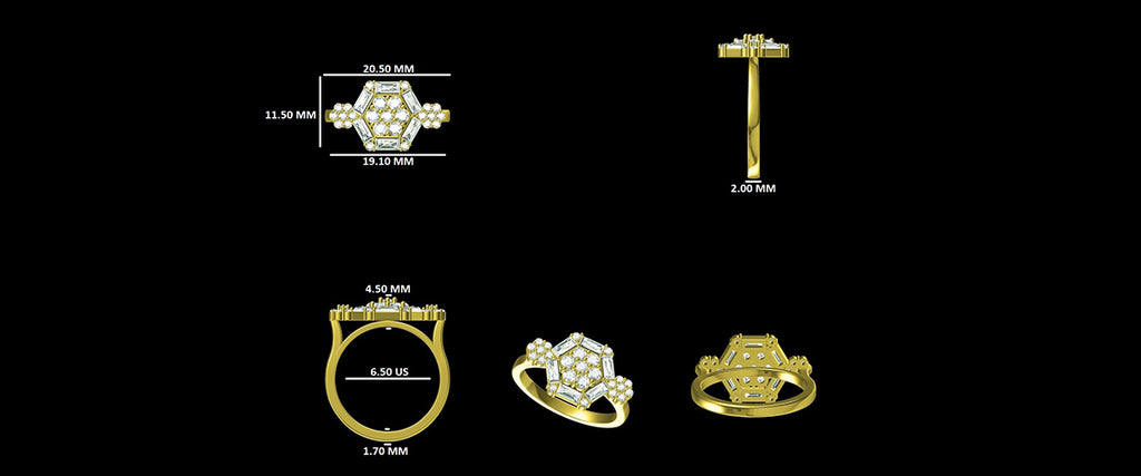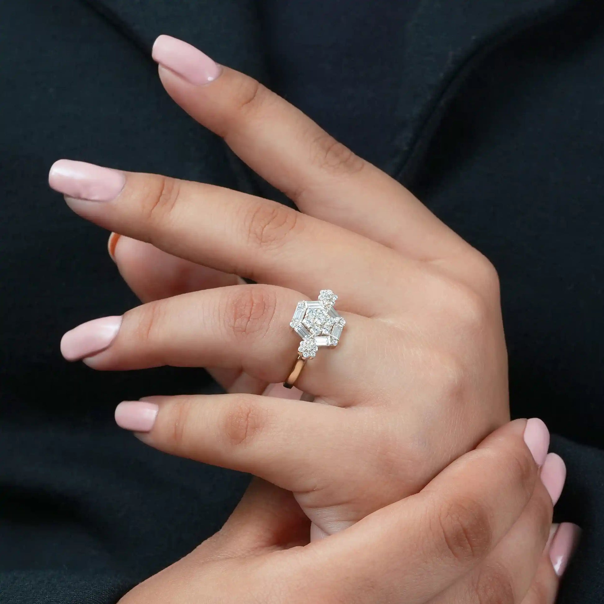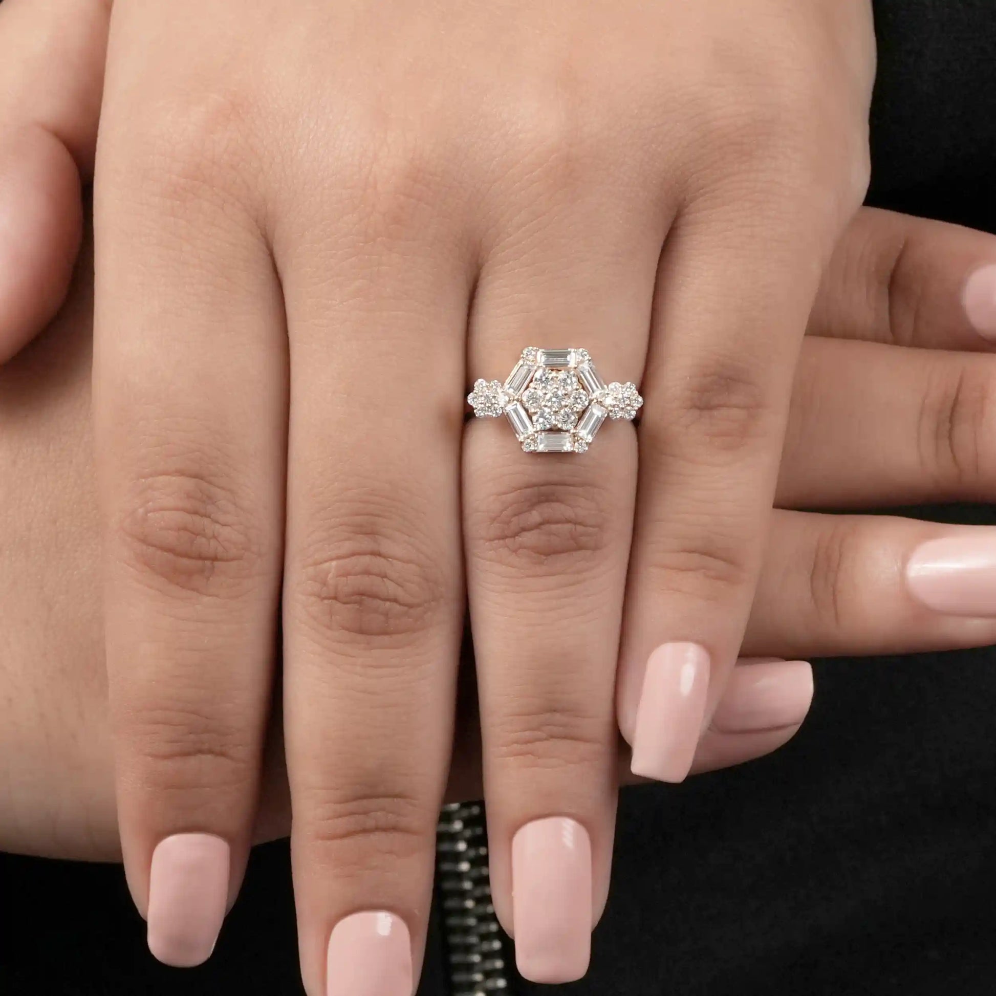 Round Flower Octagon Shape Baguette Cut Halo Lab Diamond Ring