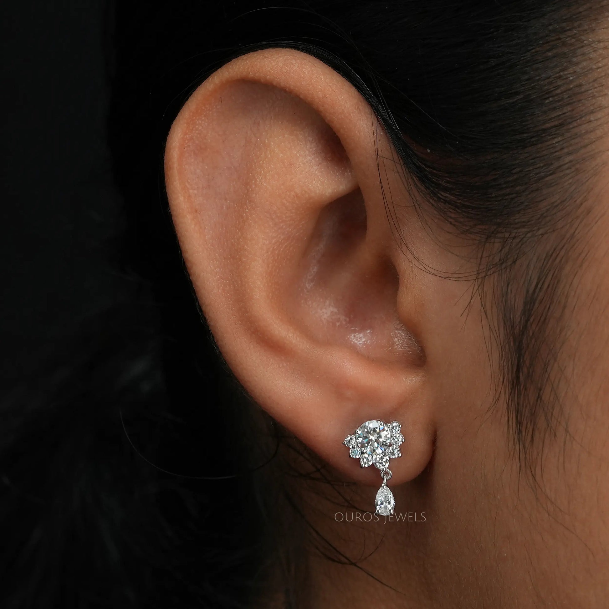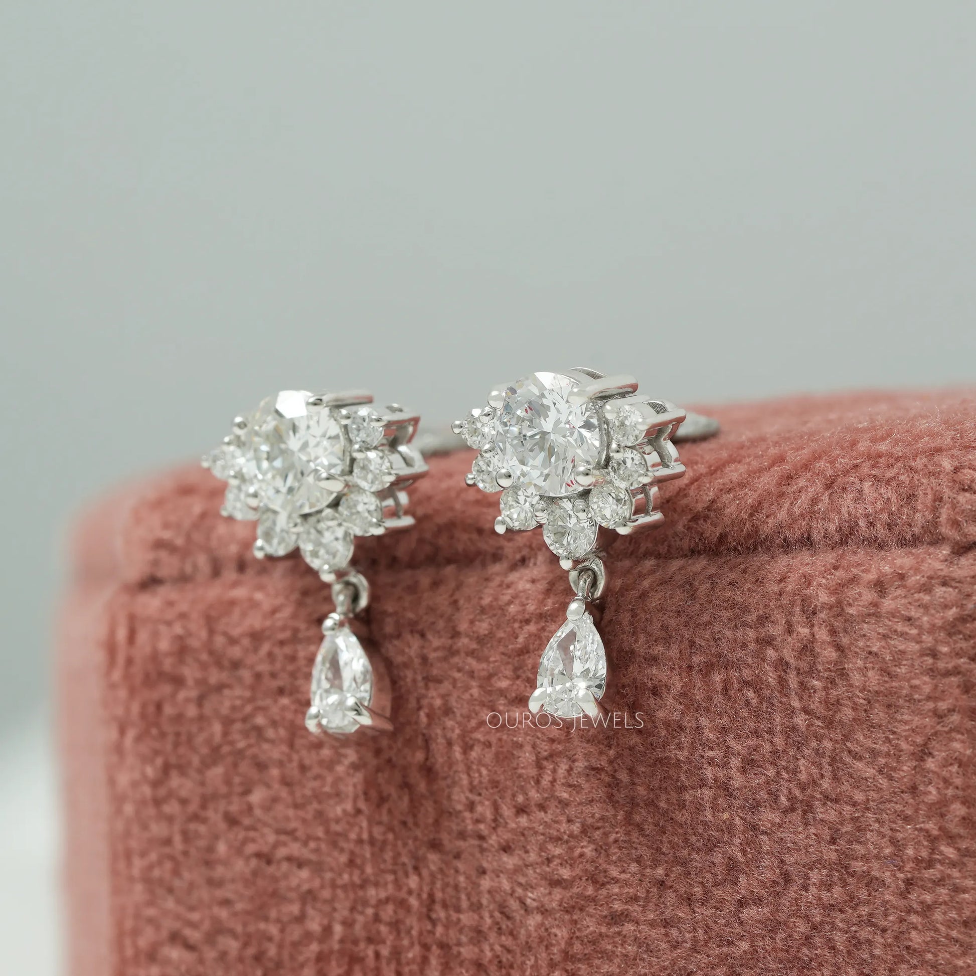 Round & Pear Diamond Drop Earrings