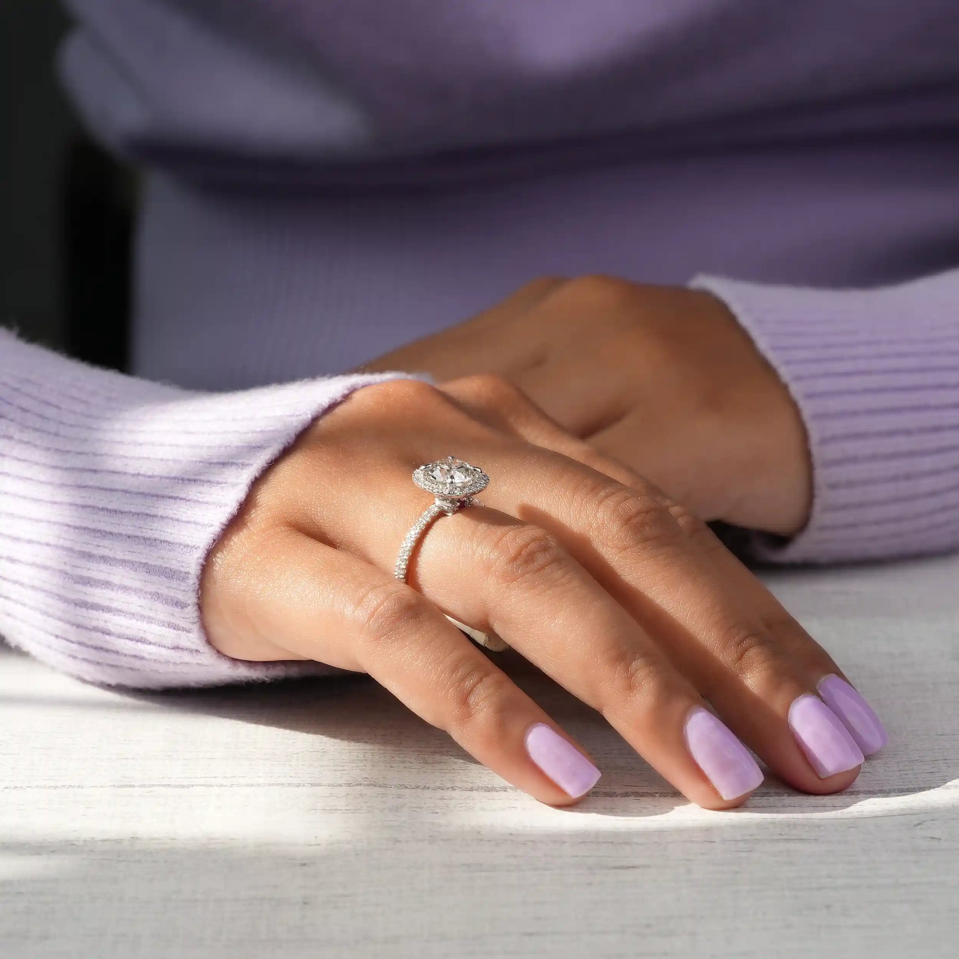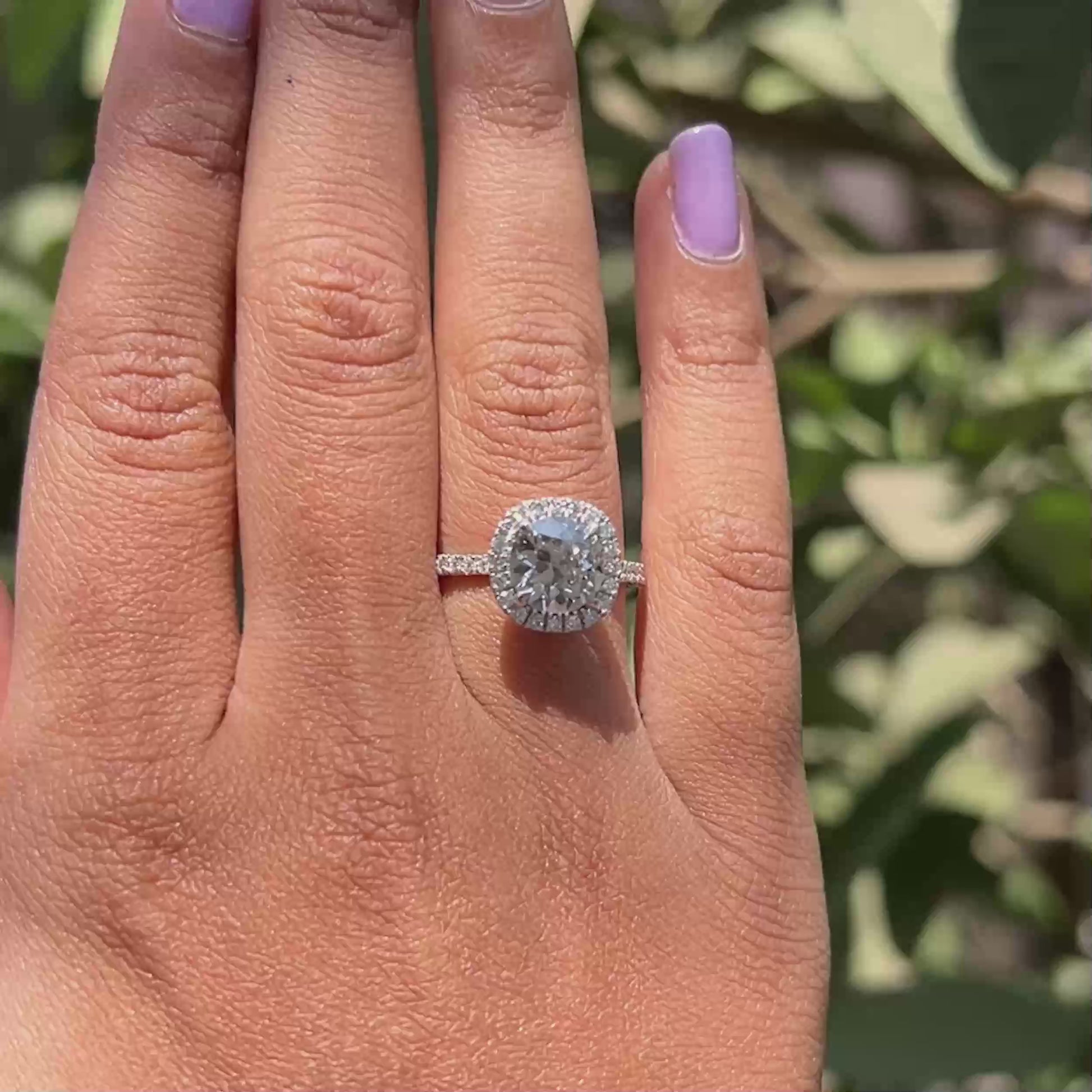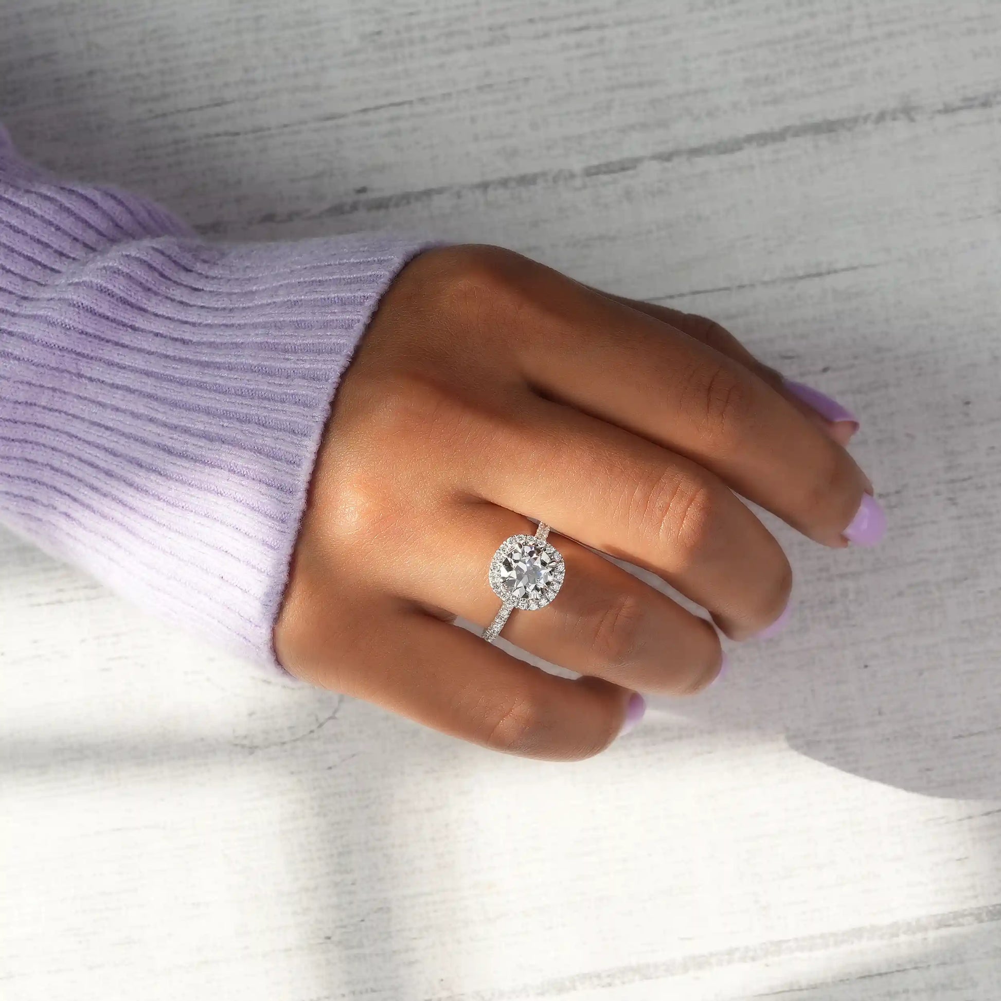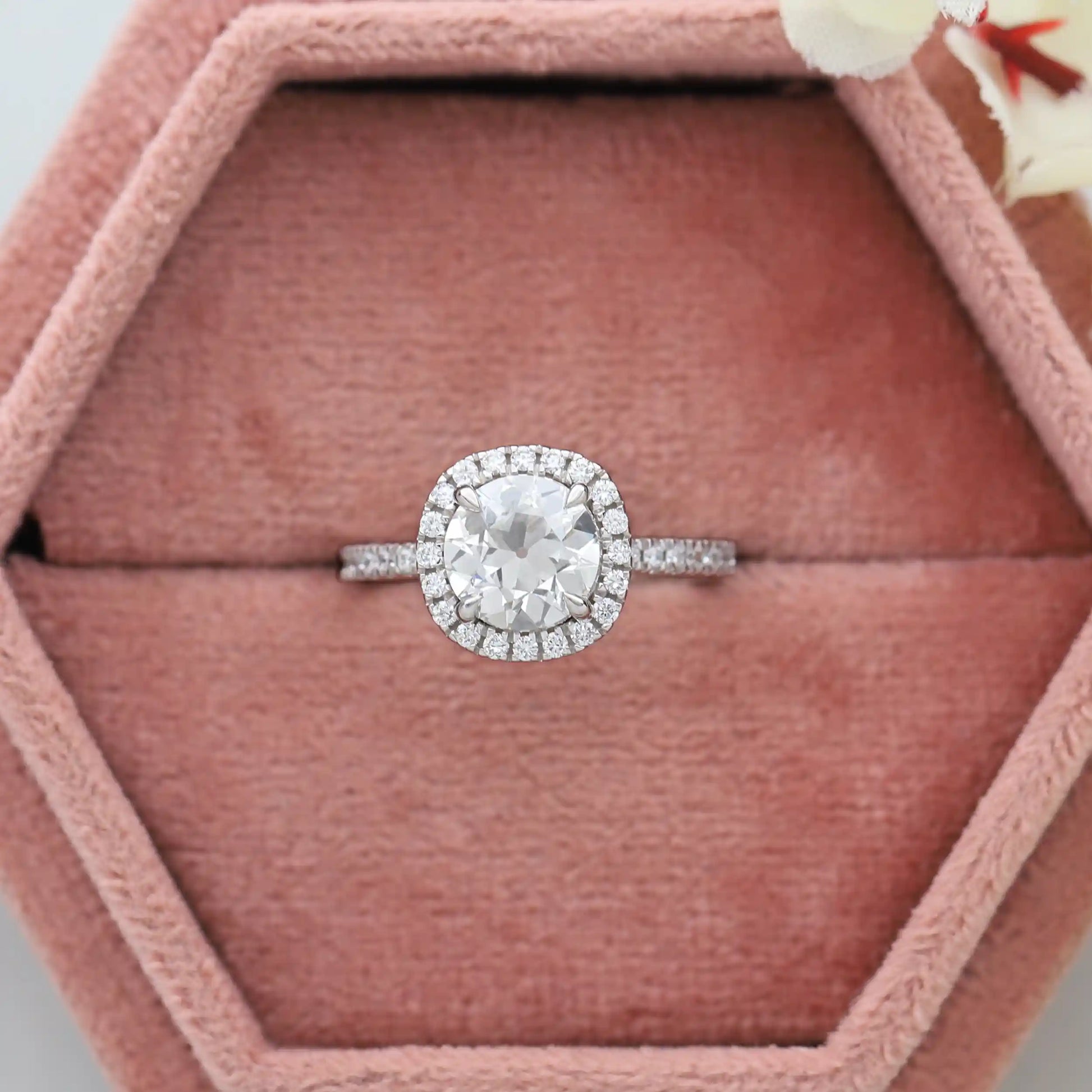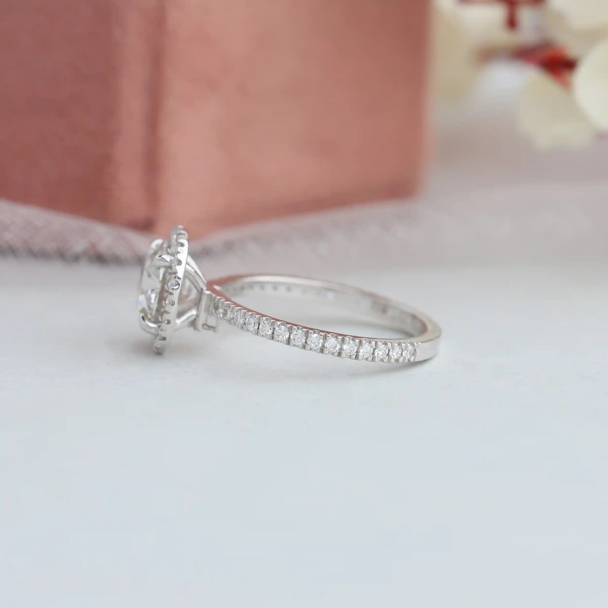 Solitaire OEC Round Cut Halo With Accent Lab Diamond Ring