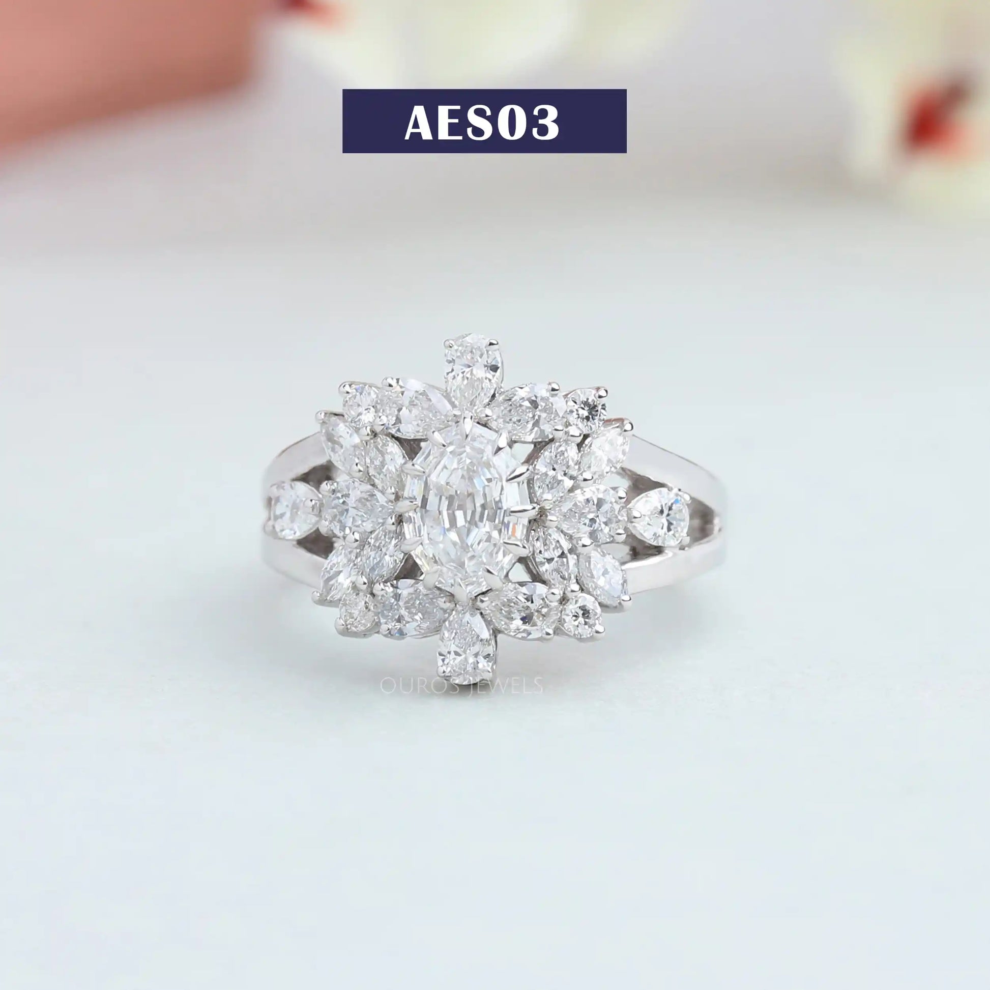 Step Cut Oval Diamond Cluster Ring