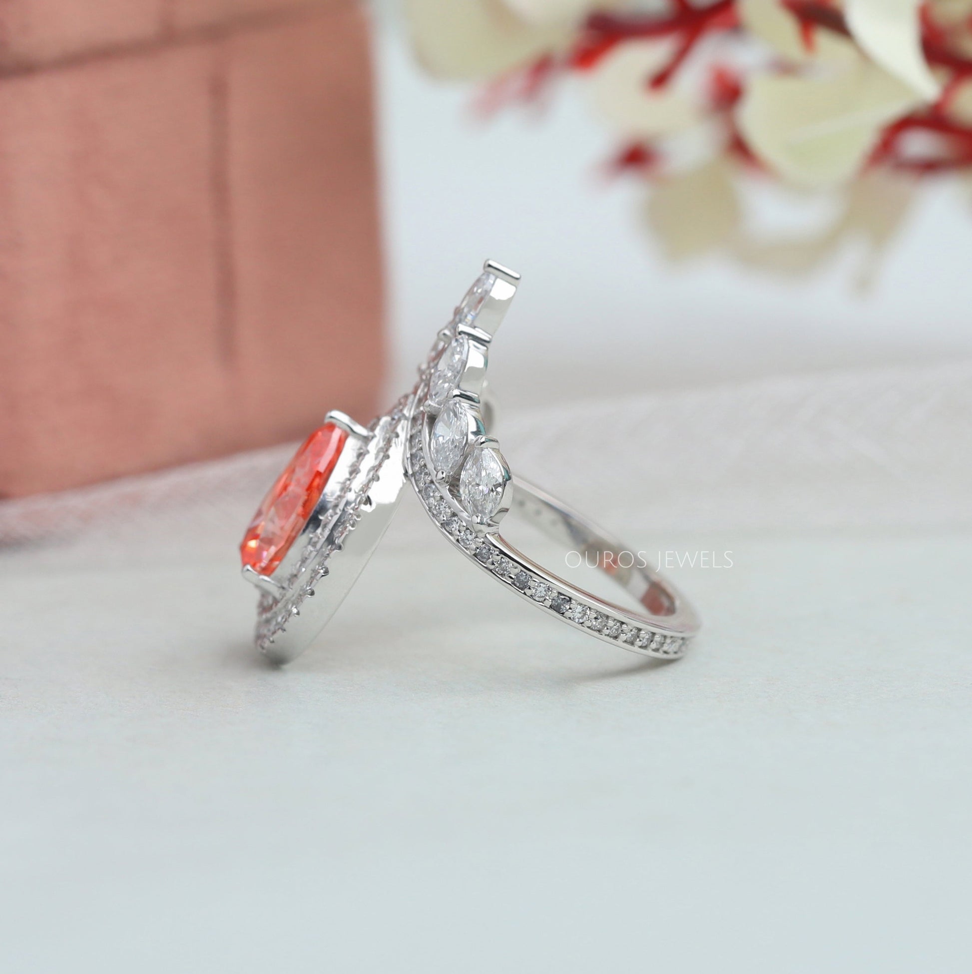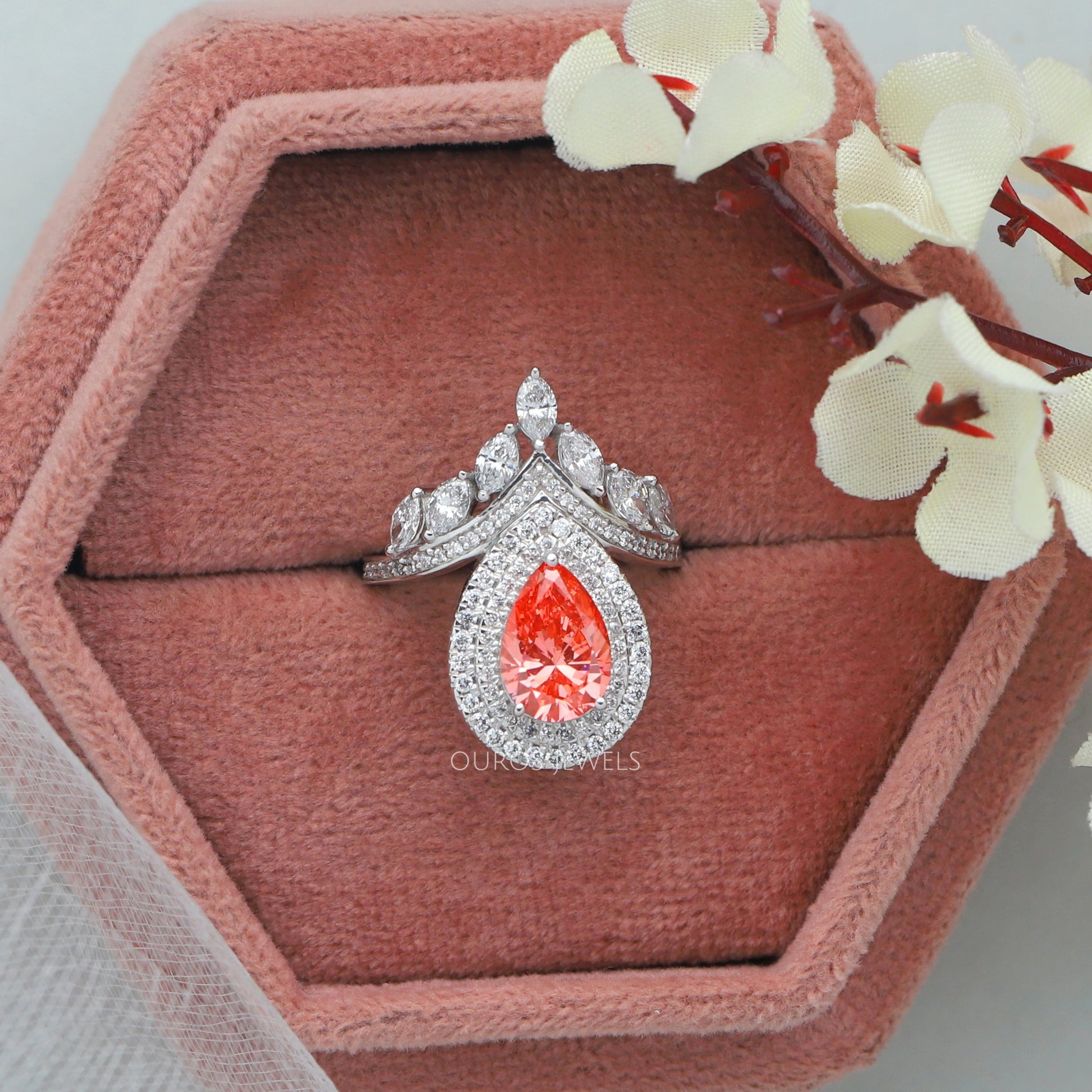 Pear Shaped Halo Bridal Engagement Ring