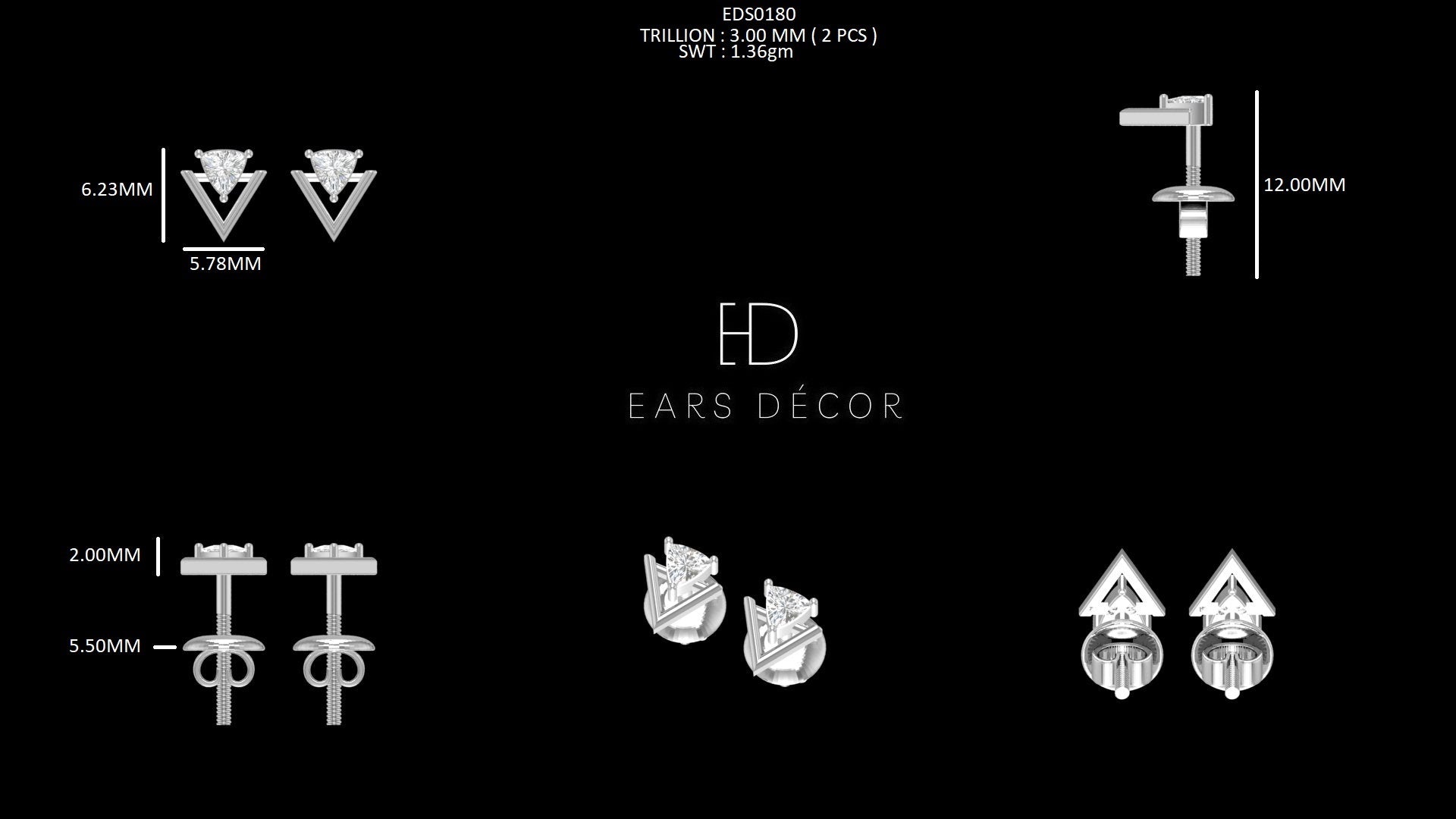 Trillion Cut Lab Diamond Dainty Stud Earrings