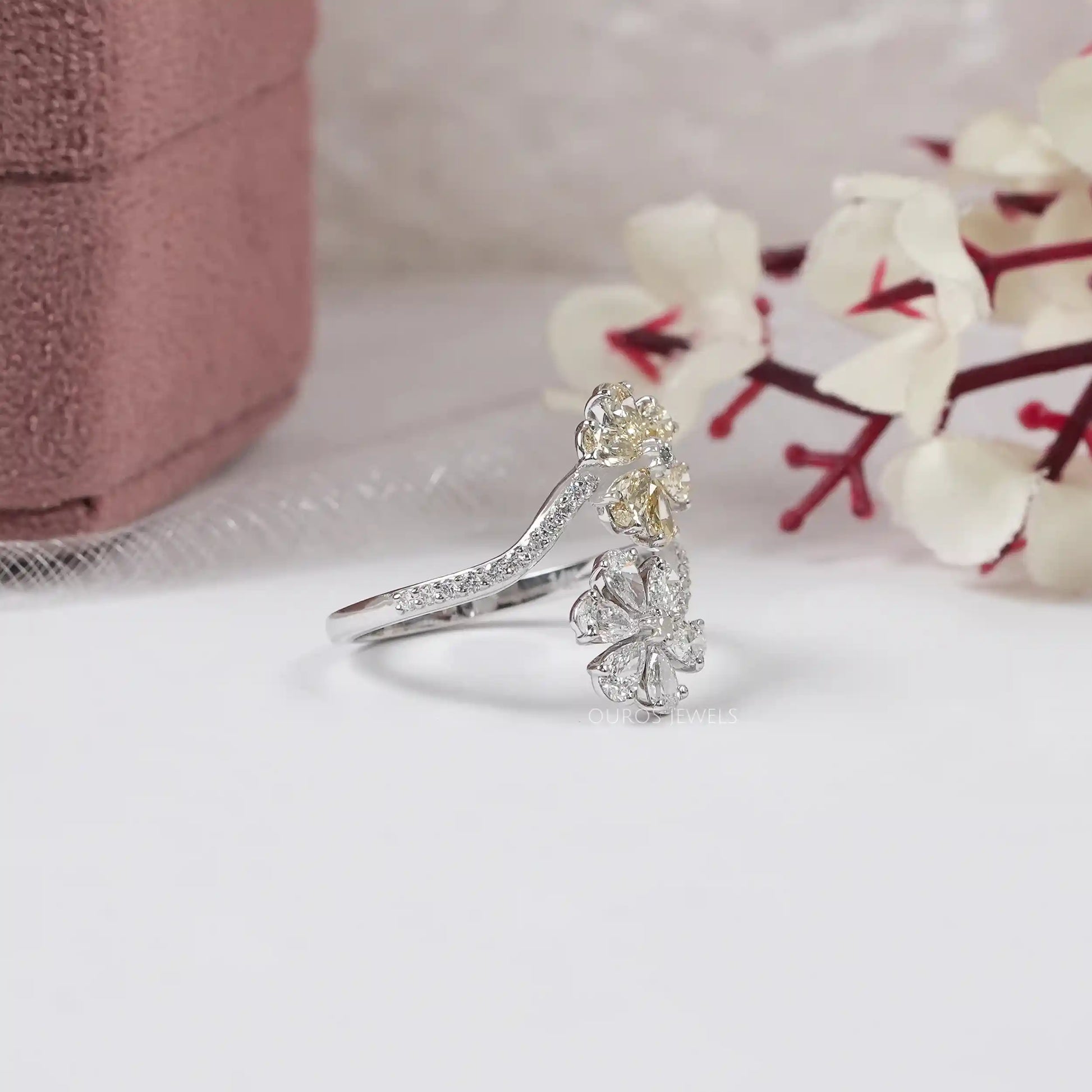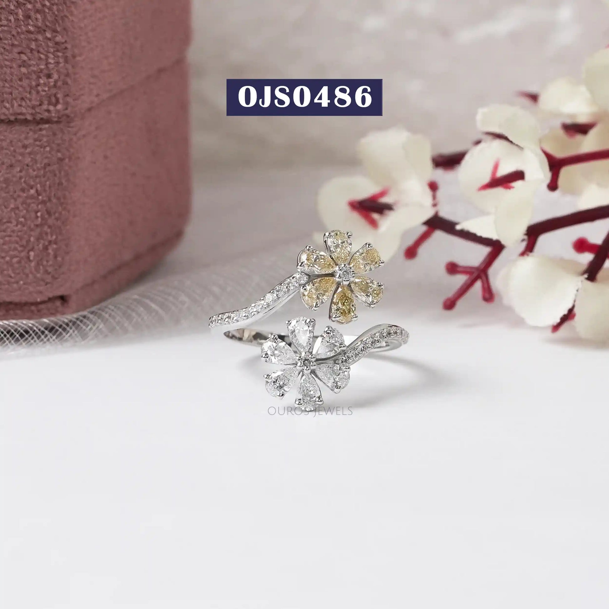Twin Pear Cut Flower Shape Lab Diamond Ring