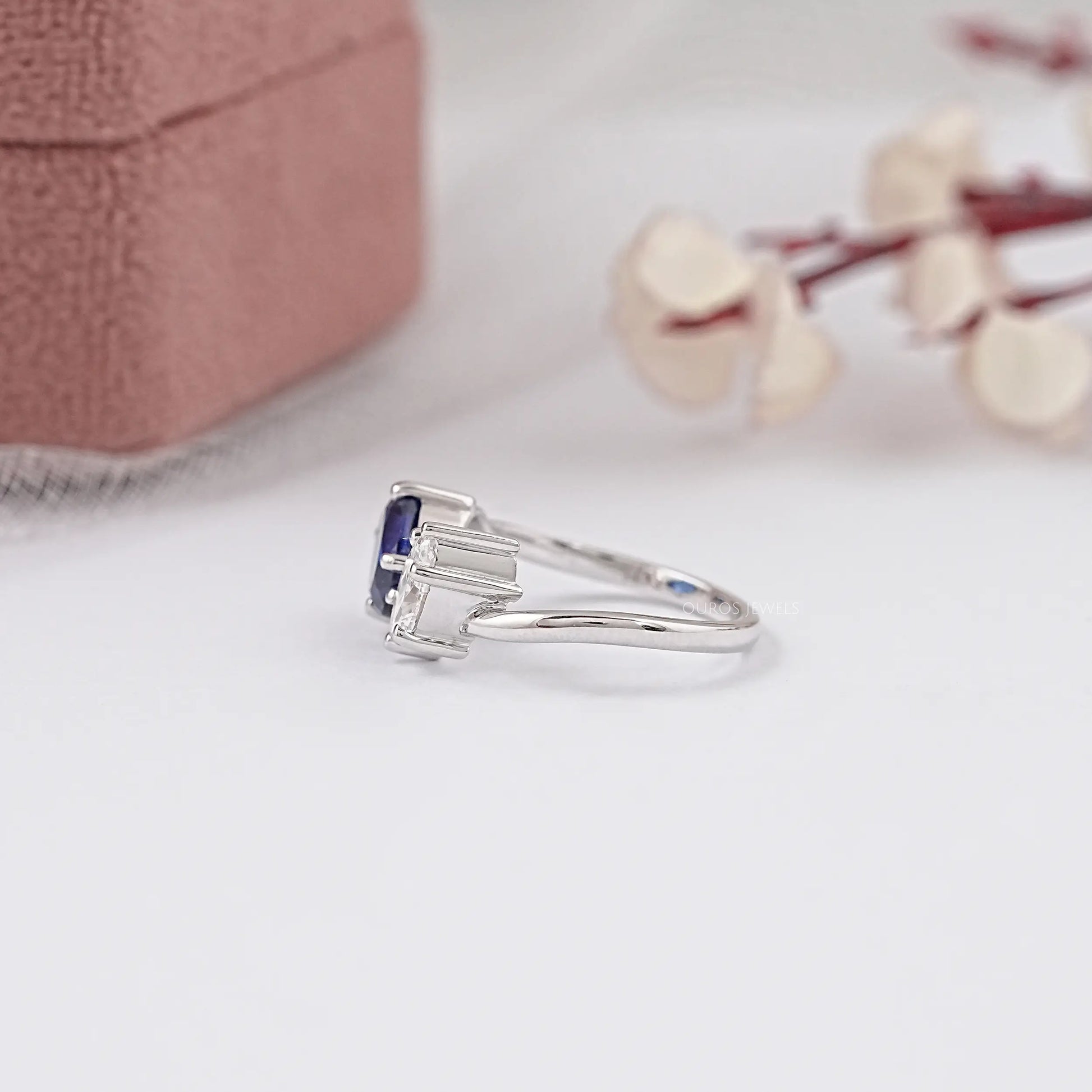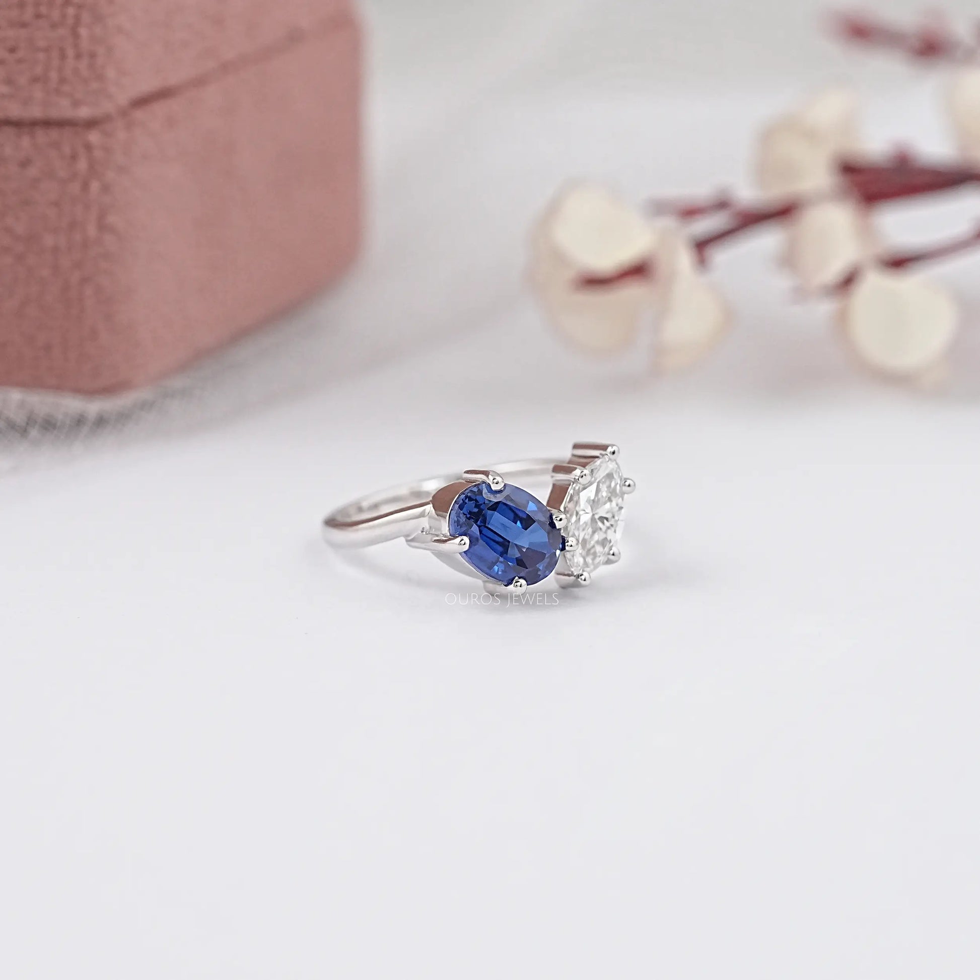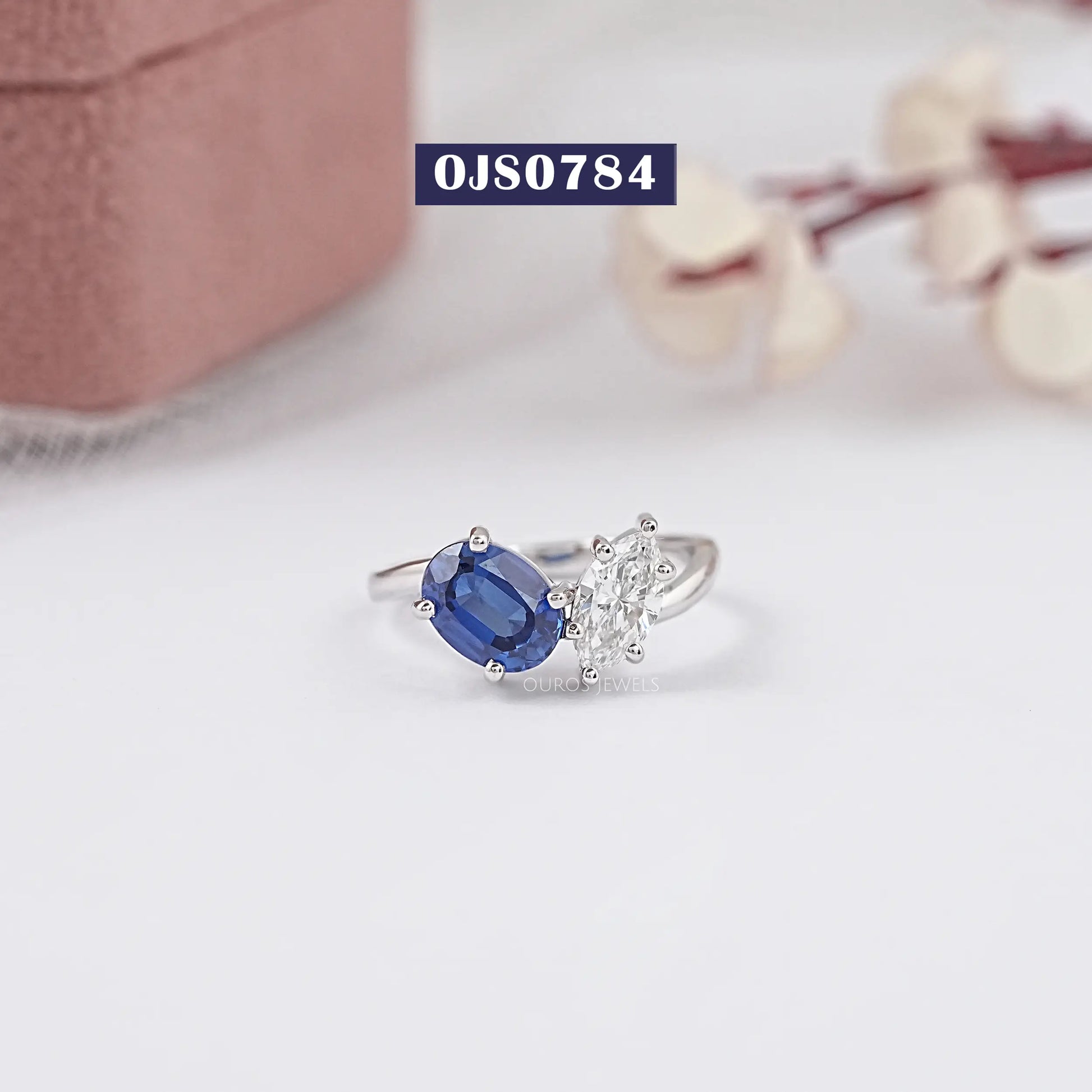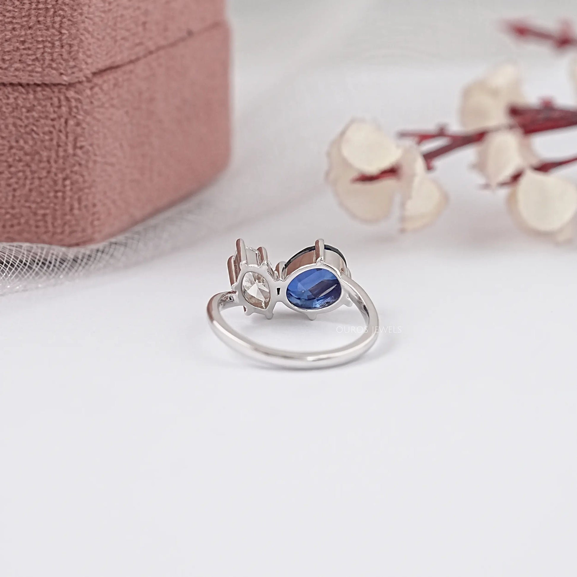 Two Stone Blue Oval Cut Lab Grown Diamond Ring