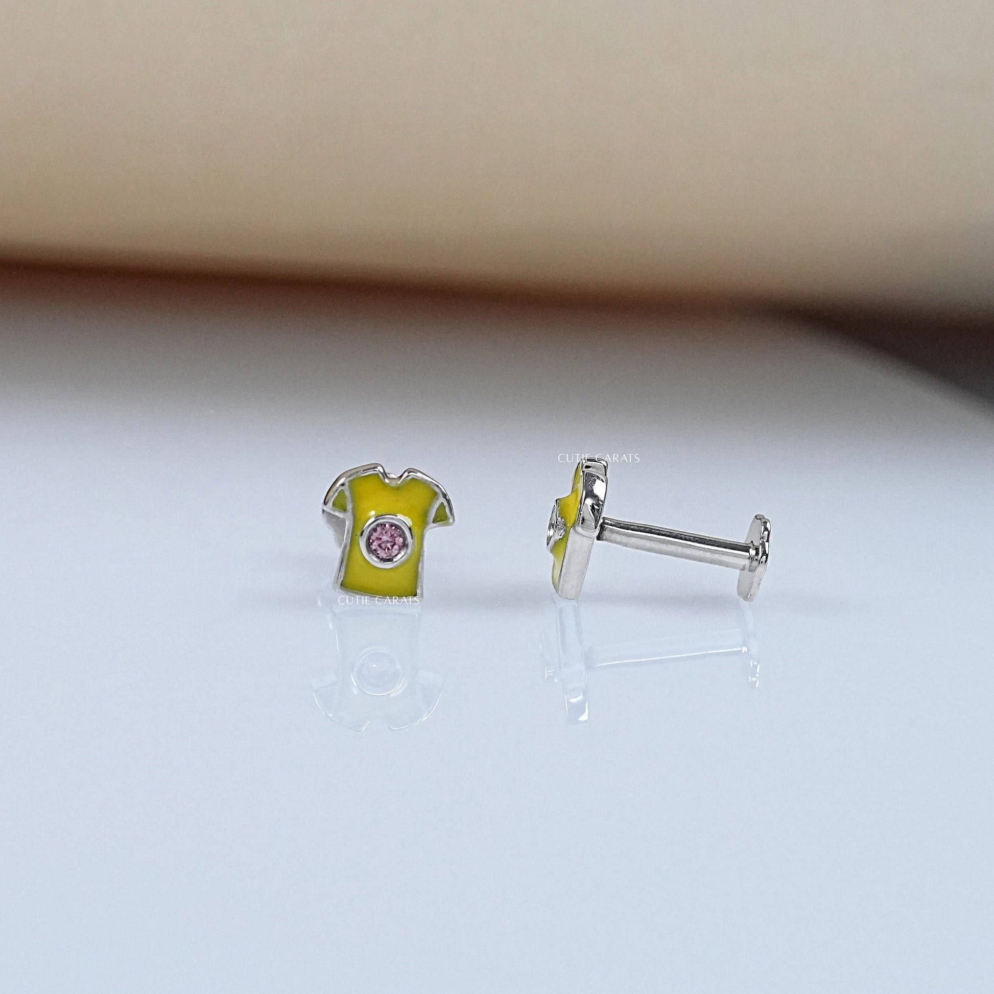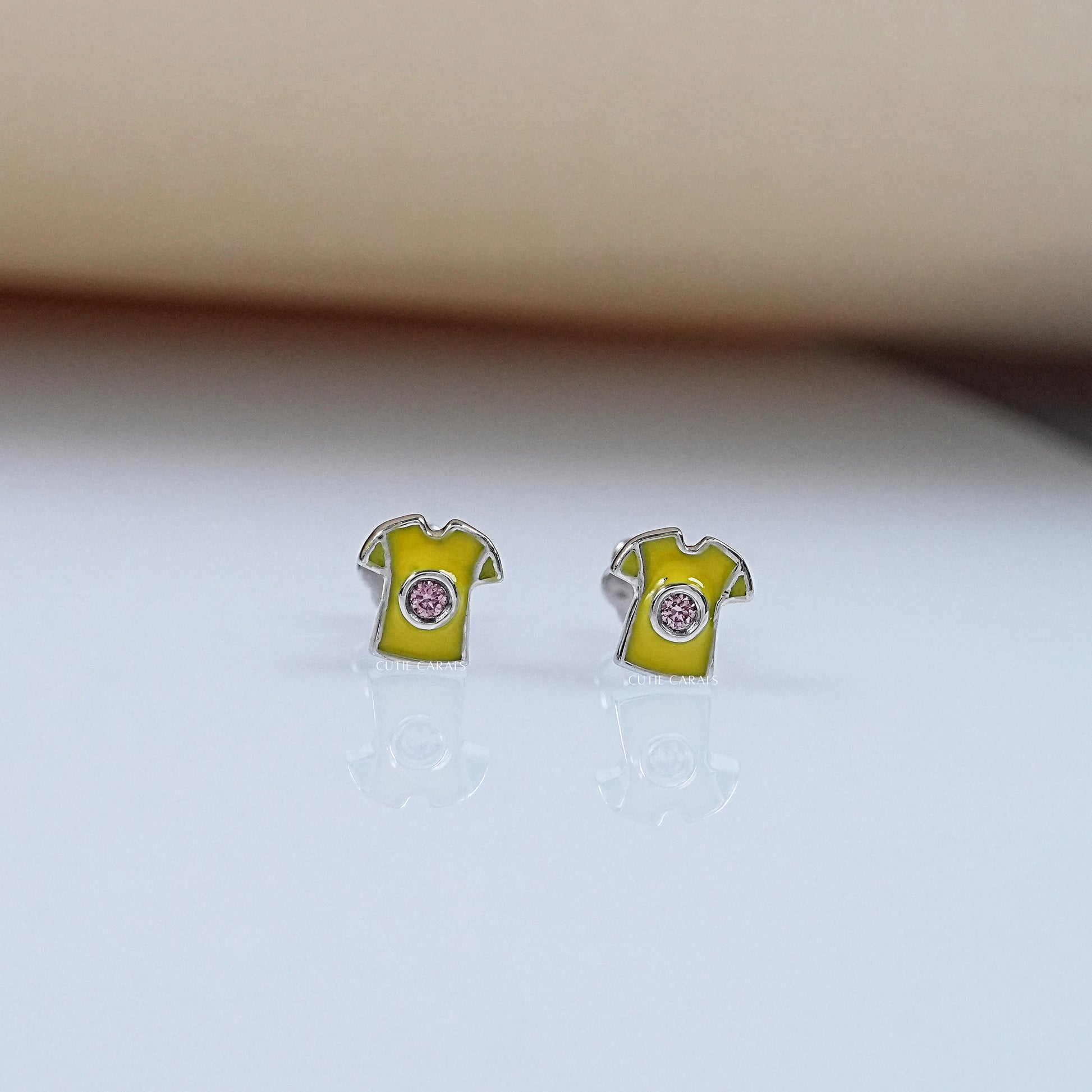 Yellow Enamel T Shirt Shape Stud Earrings For Kids