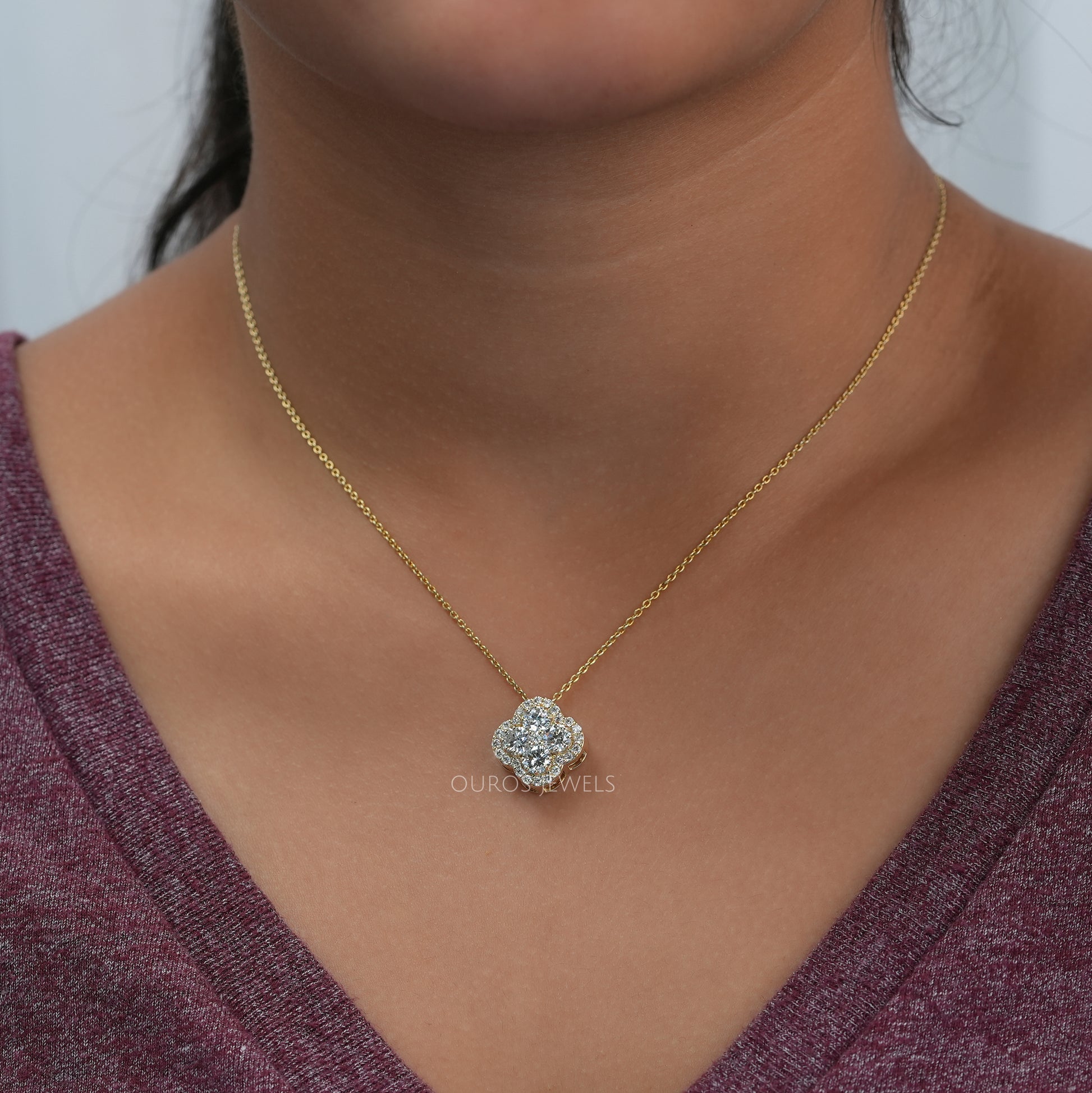 Yellow Gold Flower Round Cut Lab Diamond Pendant