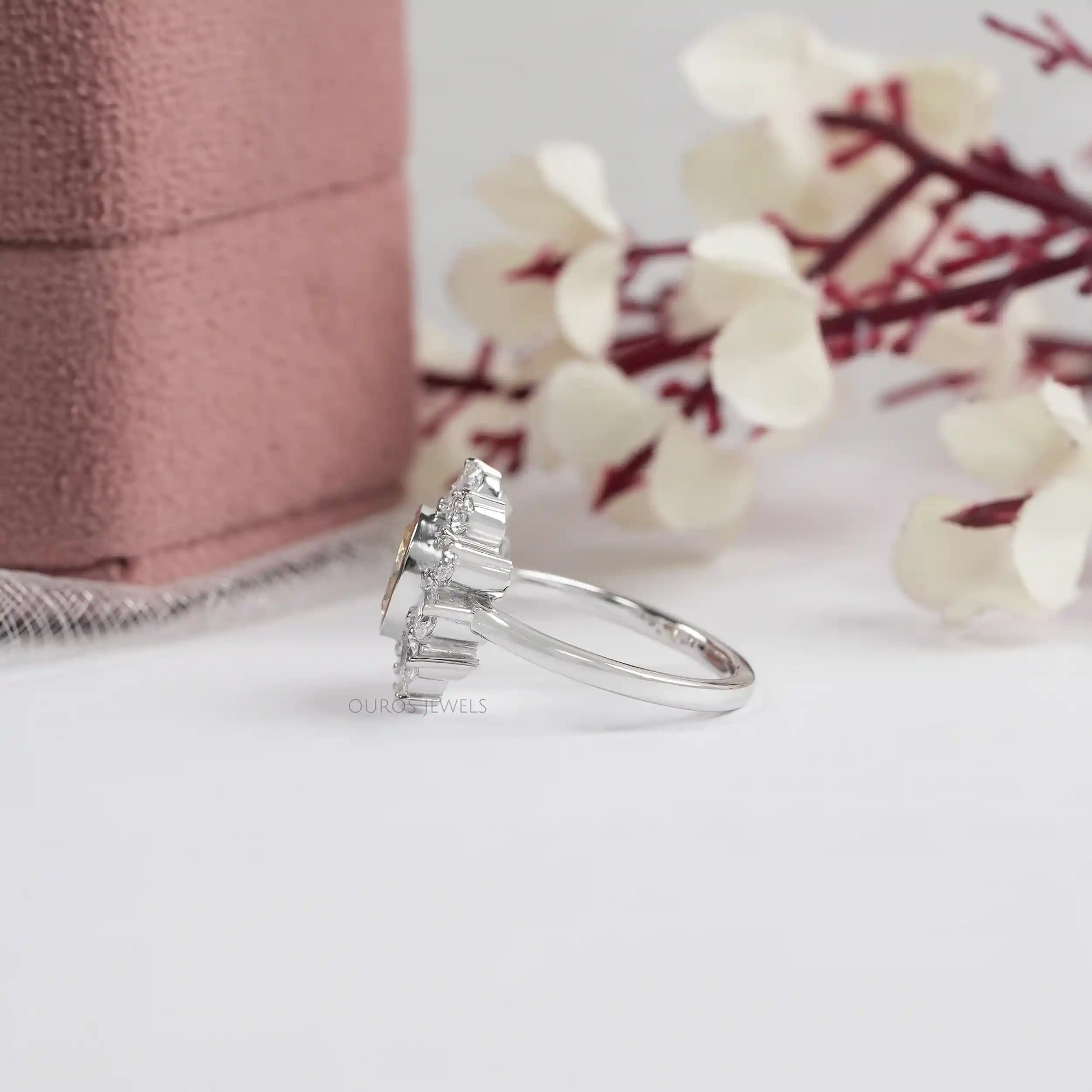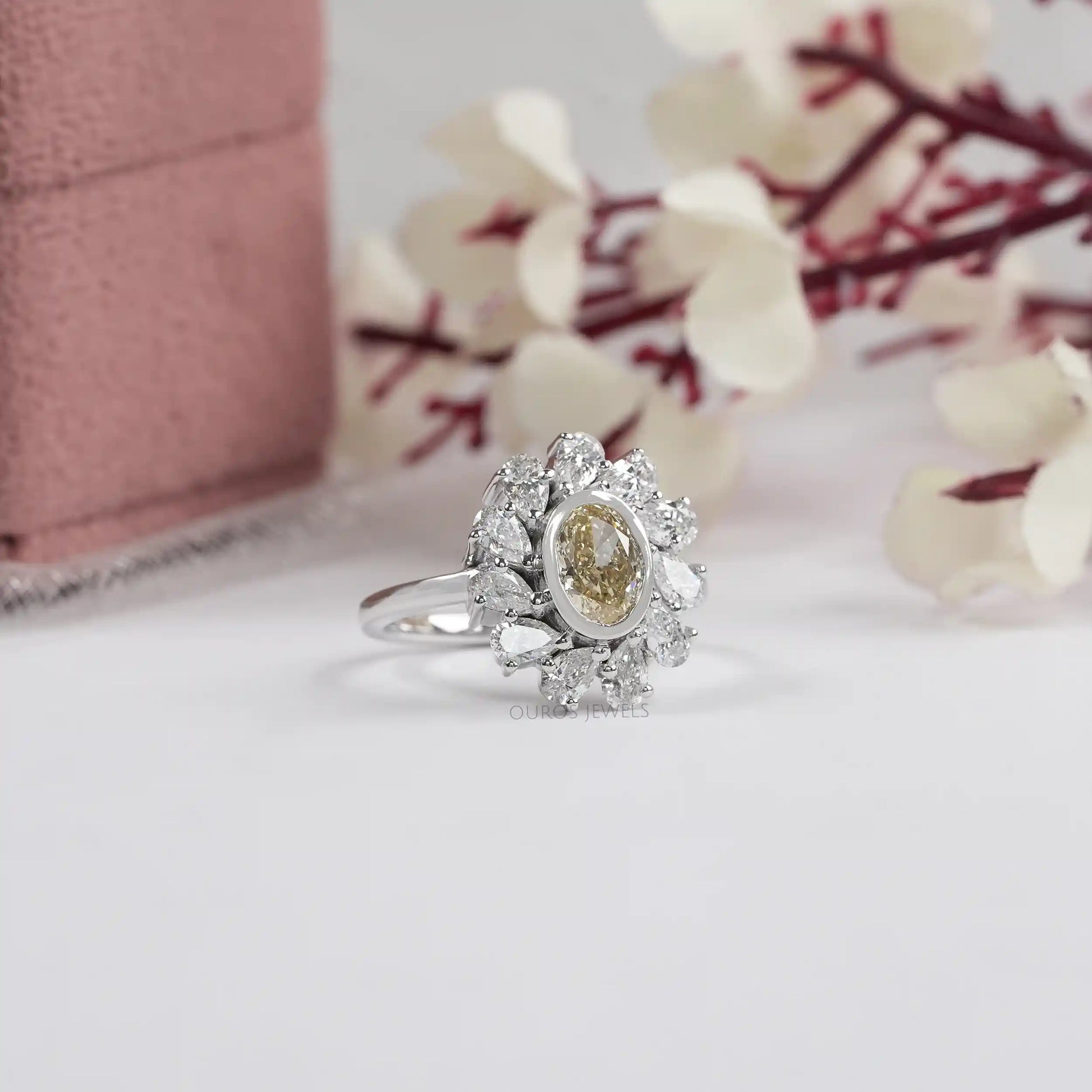 Yellow Oval Bezel Set Halo Pear Engagement Ring